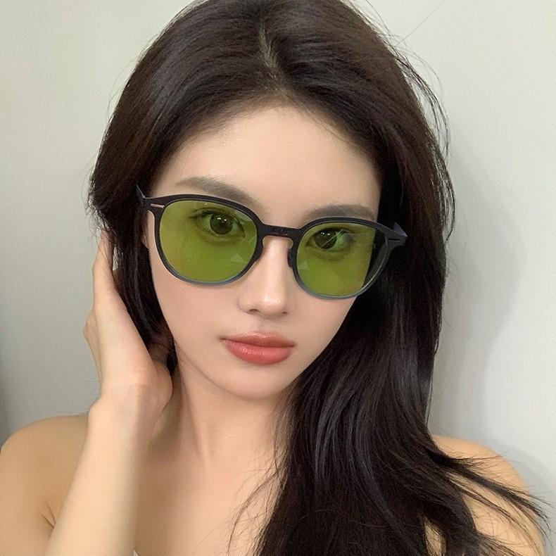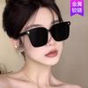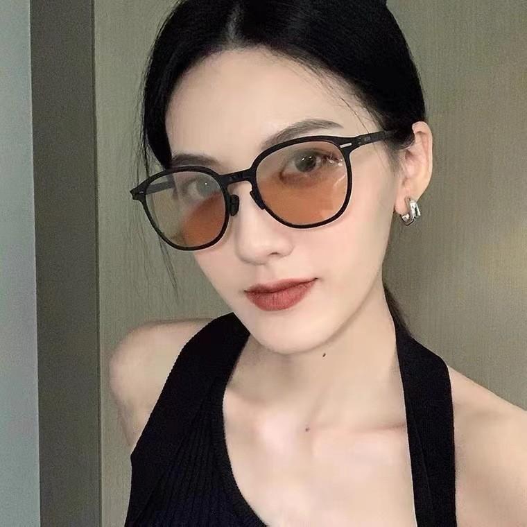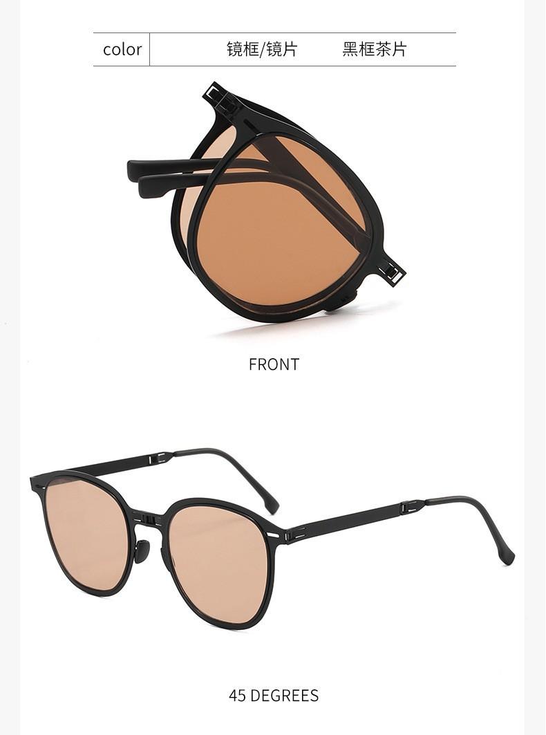 Gafas de sol plegables de moda para mujer, gafas marrones de alta calidad con protección solar, cara redonda, protección UV, gafas de sol con montura negra.