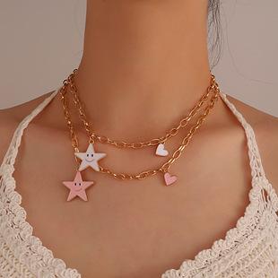 Moda europea y americana punk cadena doble capa pintura al óleo colgante de estrella collar simple lindo dulce estudiante cadena clavicular tendencia