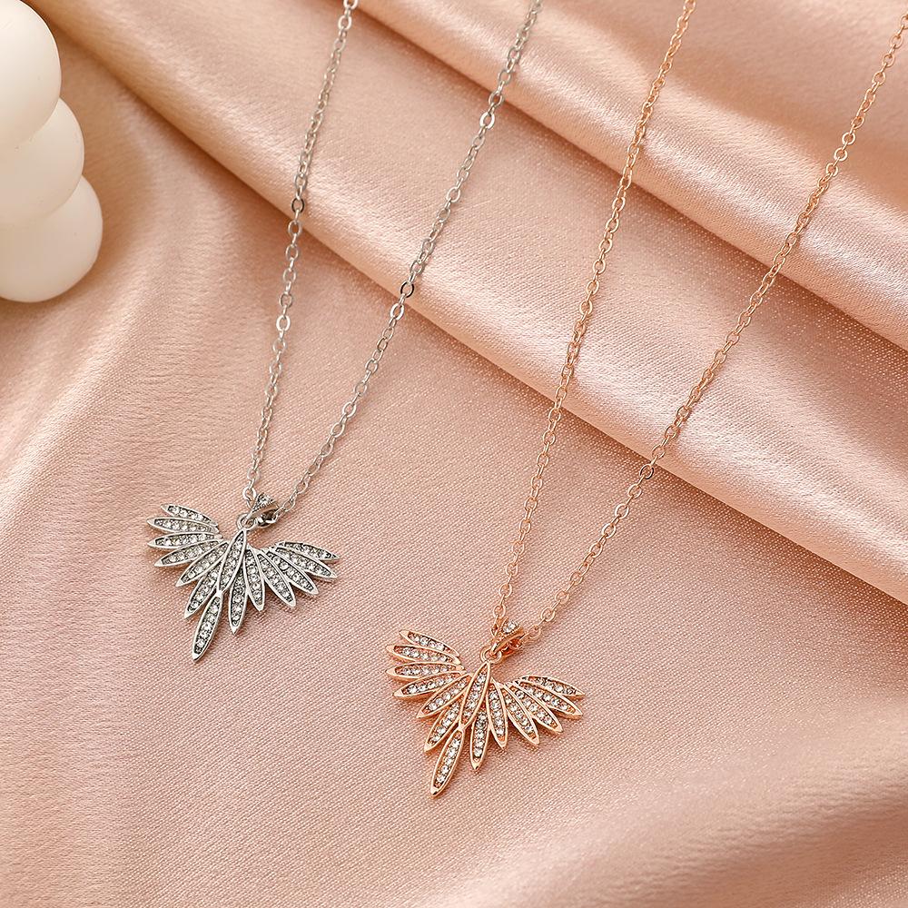Collar con colgante de alas de ángel con diamantes de moda europea y americana, cadena de clavícula de pájaro simple y creativa, cadena de cuello simple japonesa y coreana para mujer
