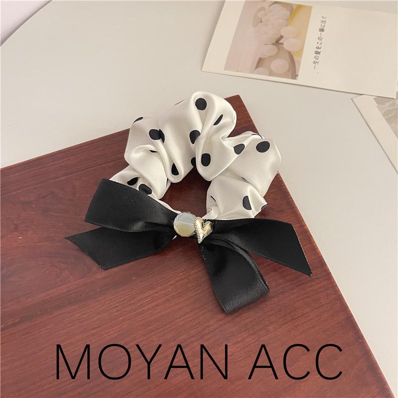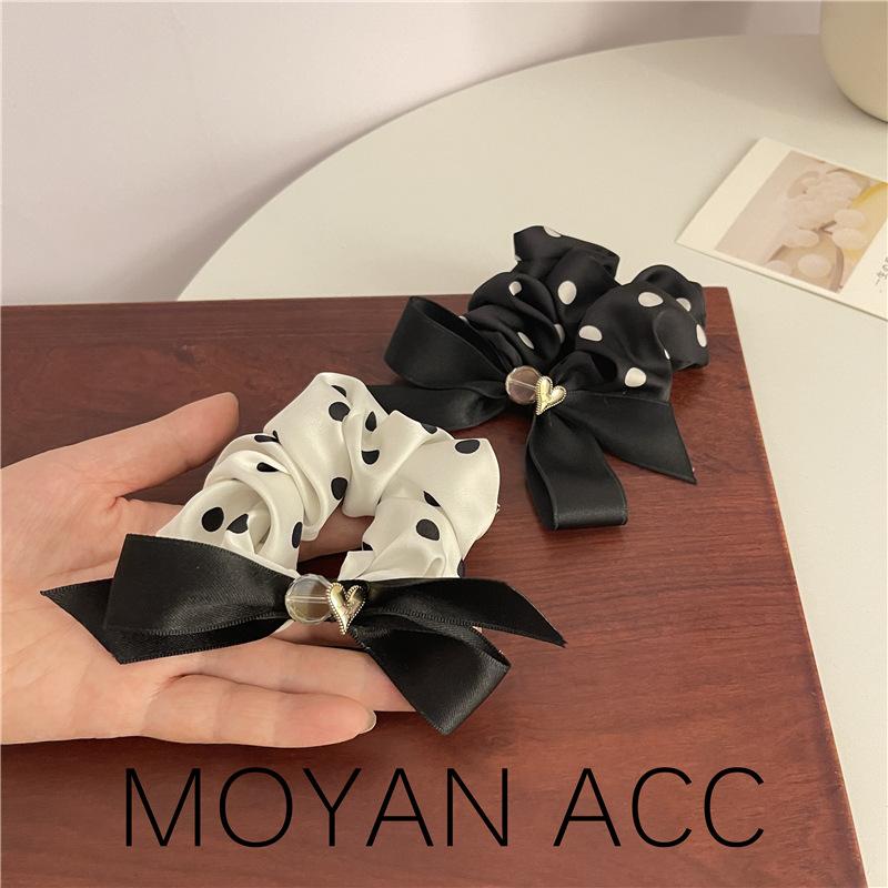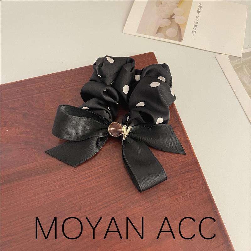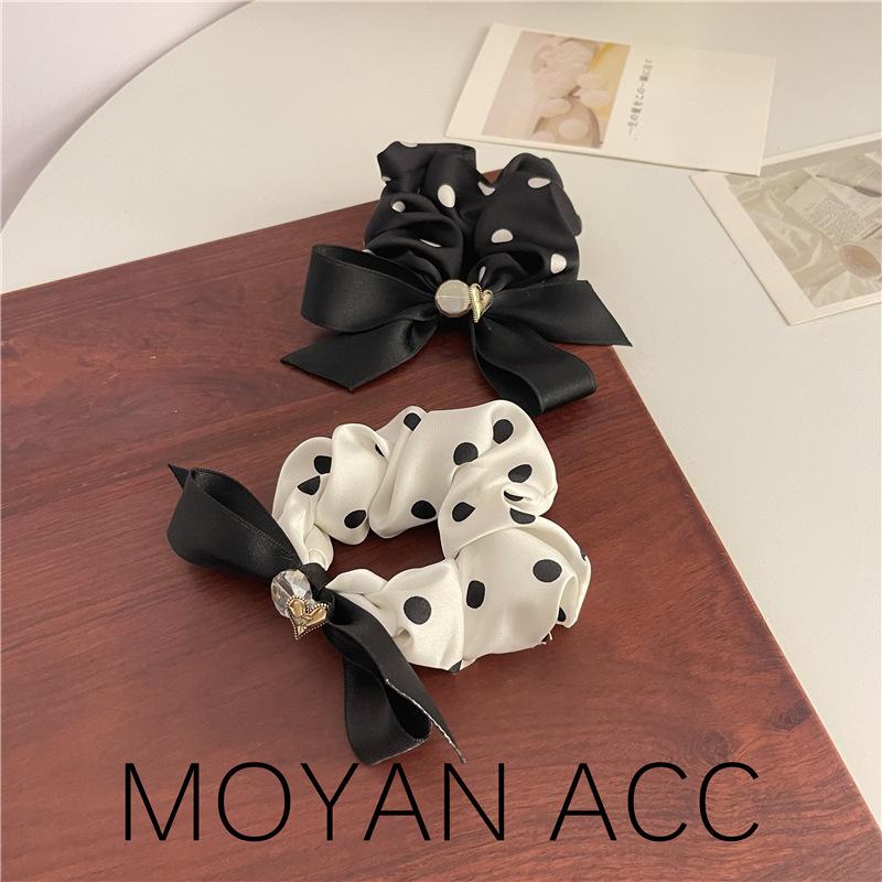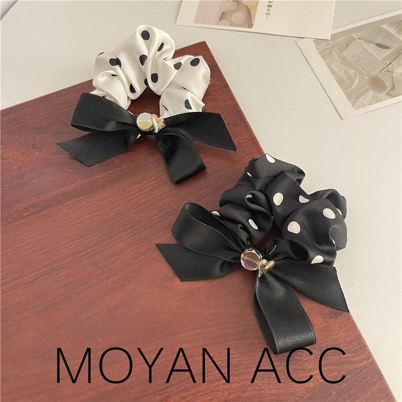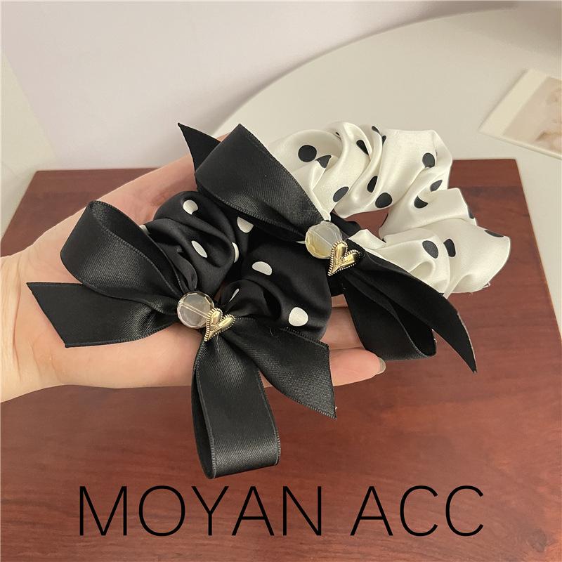 Industria pesada Intestino grueso banda para el cabello moda lazo de diamantes de imitación cuerda para el cabello temperamento de lunares blancos y negros franceses banda para el cabello tocado estilo Hepburn