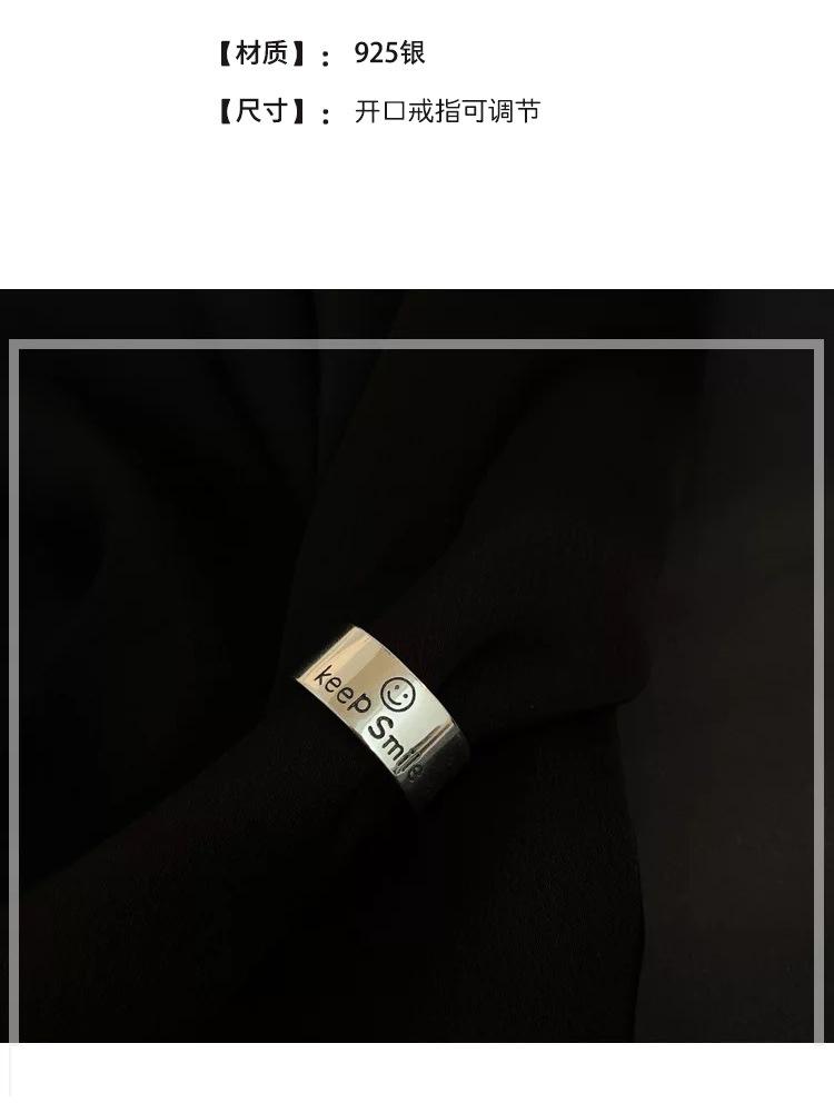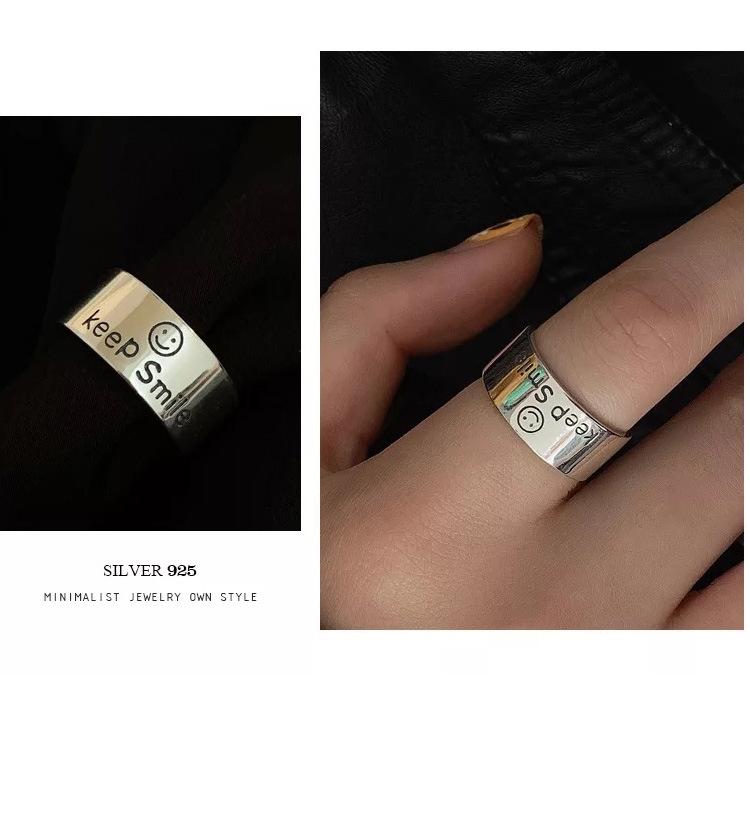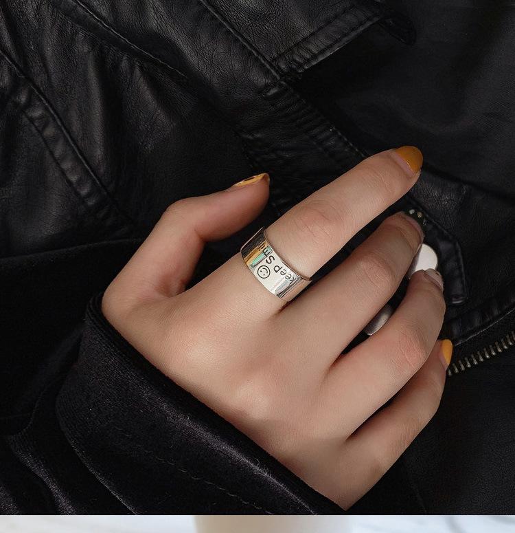 Estilo K de Anillo Elegante de Letra de Plata S925 Chapado para Mujer Hip-Hop Retro Moda Creativo Anillo Abierto Anillo para Dedo Índice Trendy