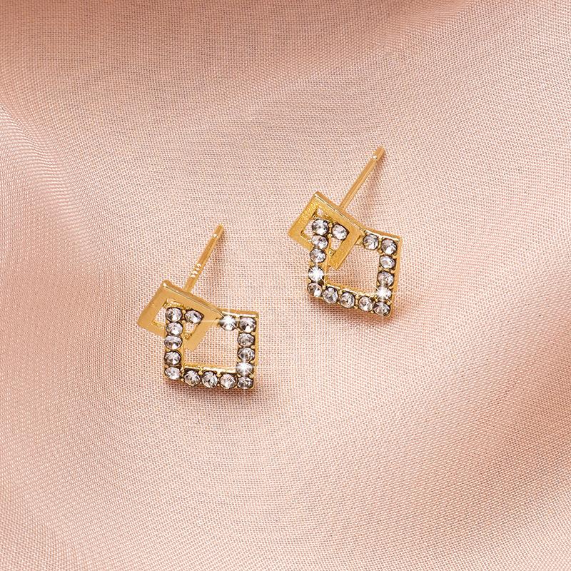 Pendientes de diamantes geométricos cuadrados de estilo coreano, sencillos y distintivos, de alta gama y combinables.