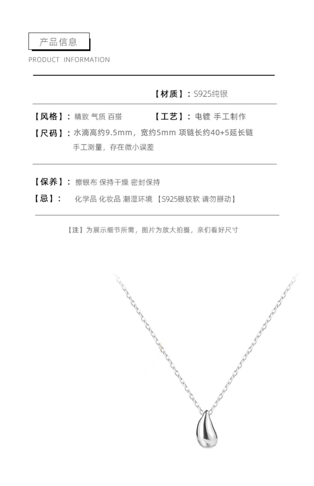 Collar con colgante de gota de agua de viento frío de plata esterlina S925 para mujer, estilo coreano, sencillo y moderno, cadena de clavícula de nicho para estudiantes, venta al por mayor