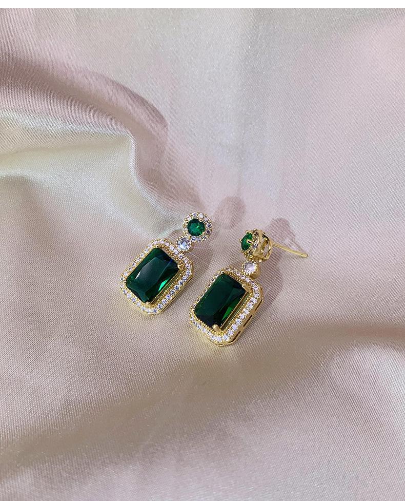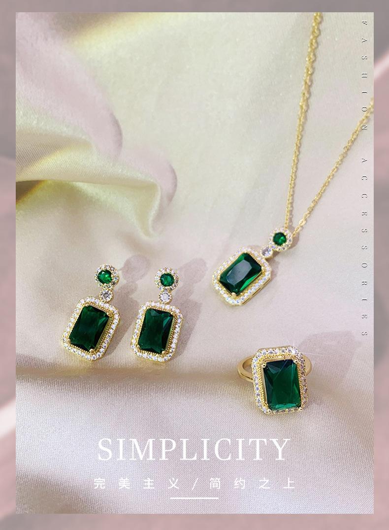 Anillo de Cobre Chapado en Oro con Incrustaciones de Esmeralda Moda Aretes Versátiles Oro Arena Vietnamita Vintage Lujo Ligero Colgante Colgante