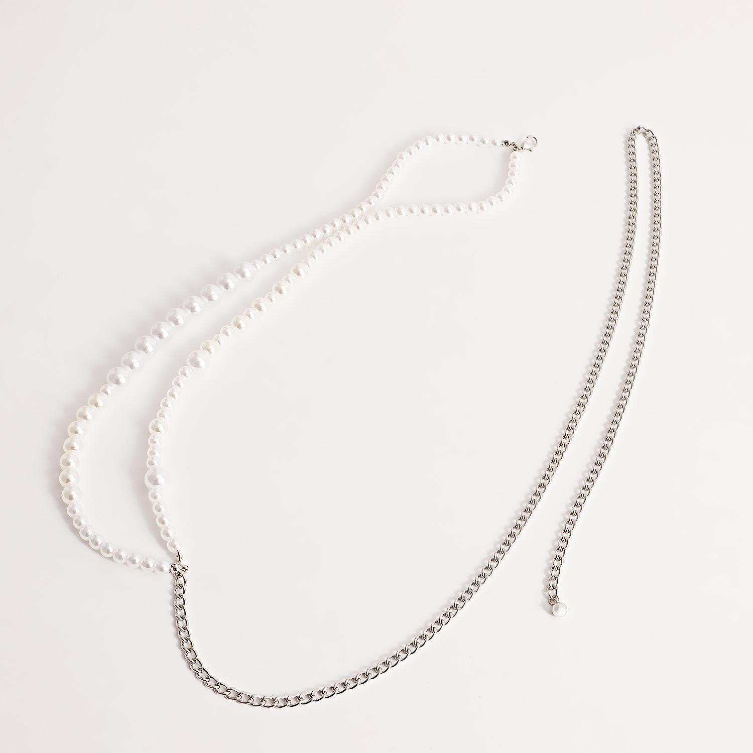 Cadena de cintura para chica atractiva, estilo cinturón de metal con perlas de imitación de doble capa, joyería transfronteriza europea y americana, venta al por mayor