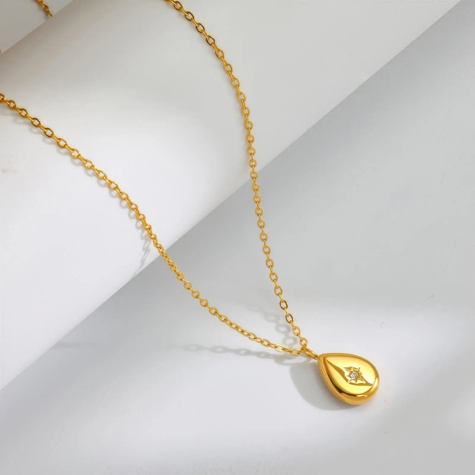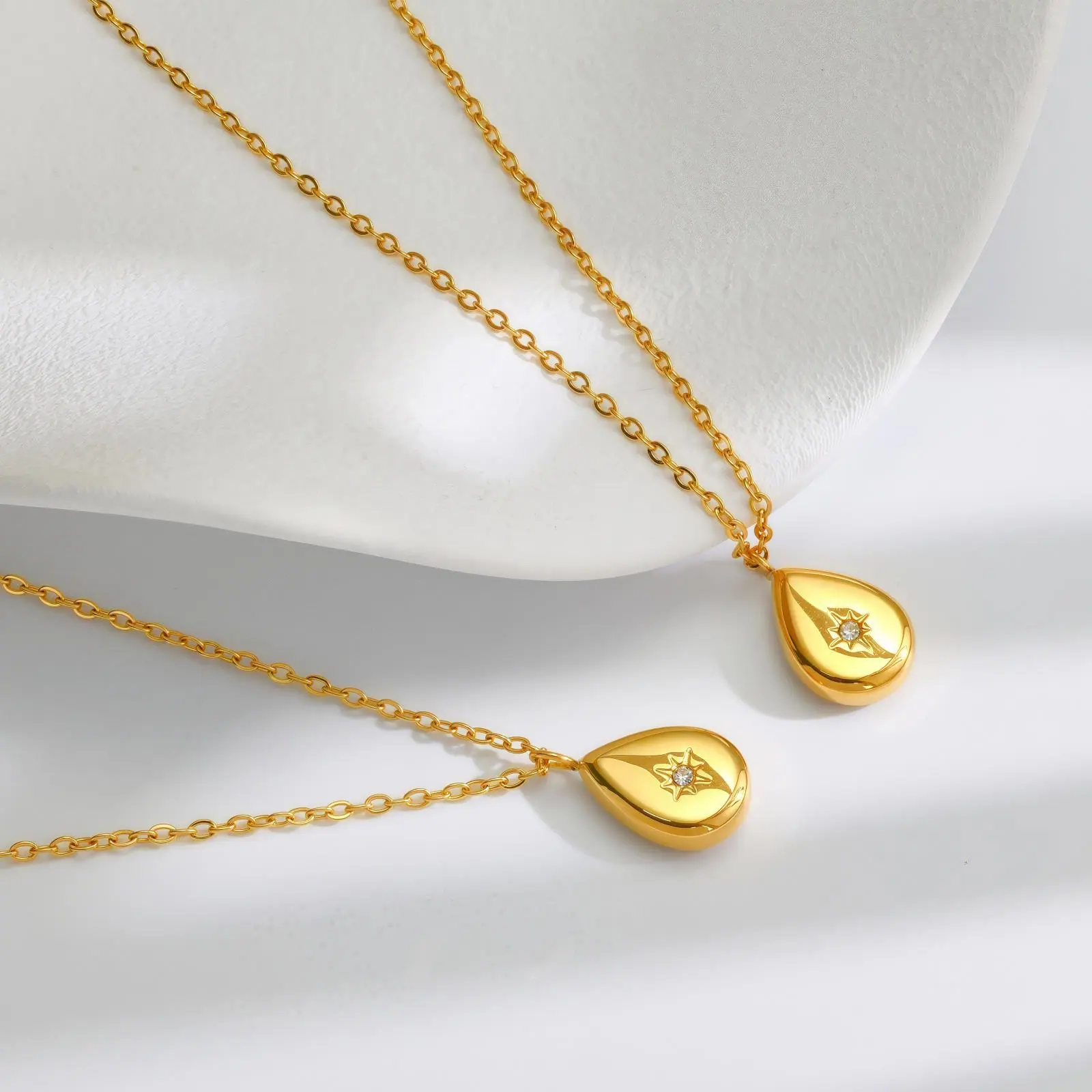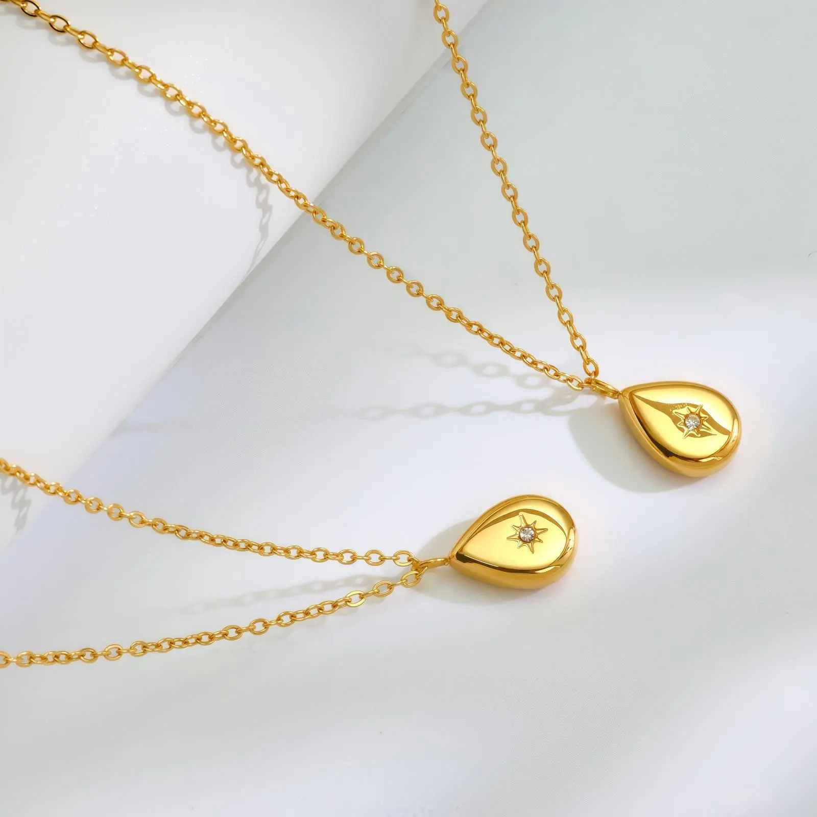Retro Francés tridimensional gota de agua gema estrella de ocho puntas colgante collar cadena clavícula acero titanio chapado en oro retención de color collar transfronterizo