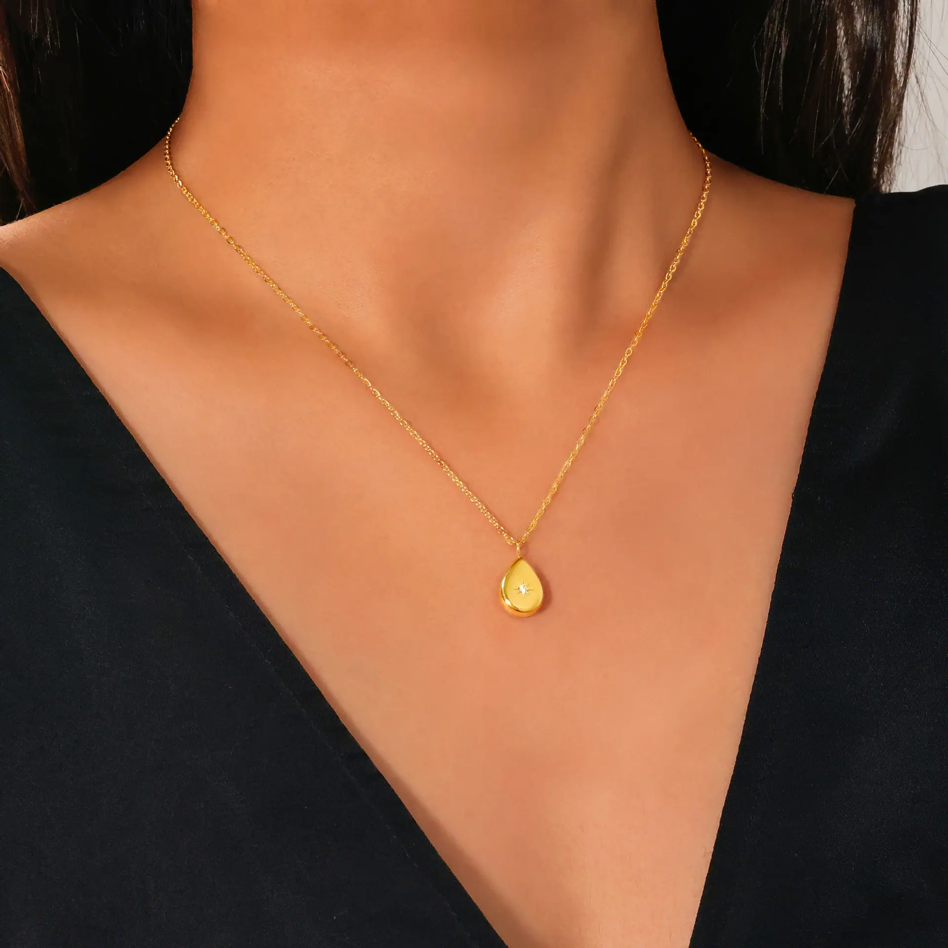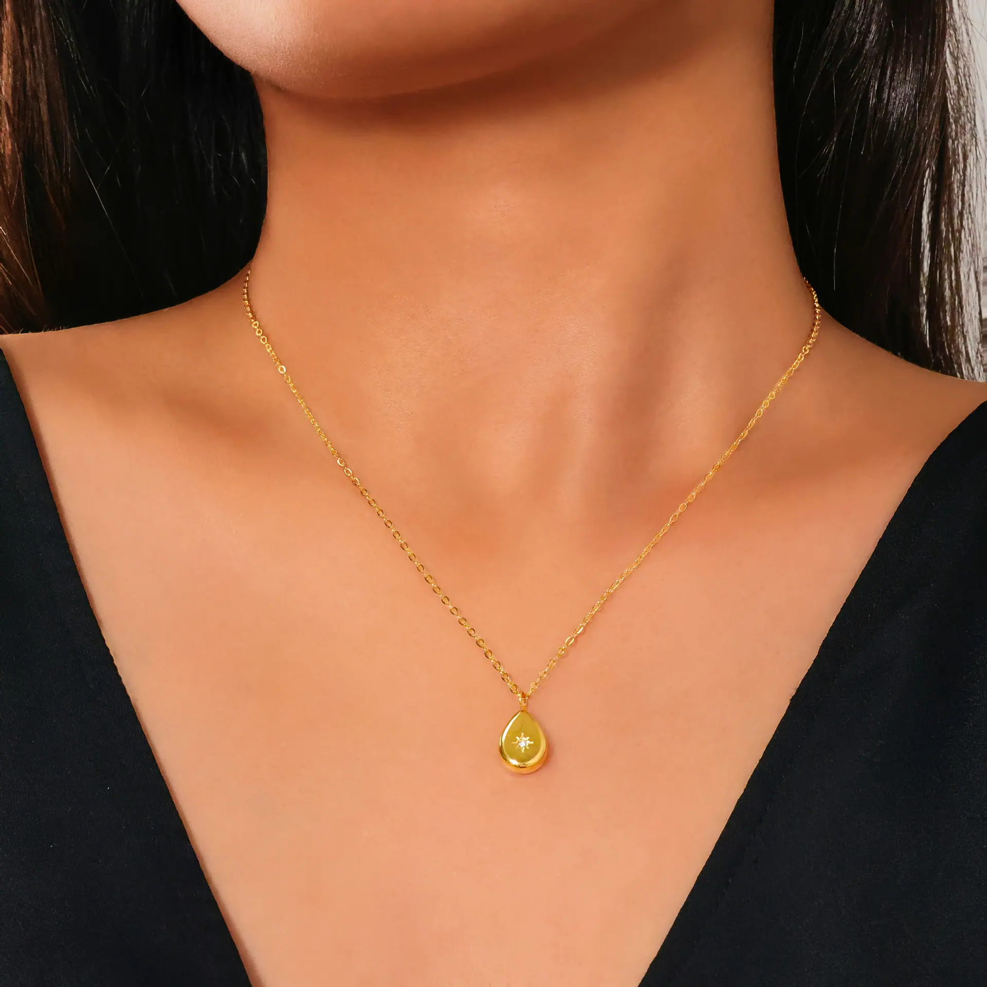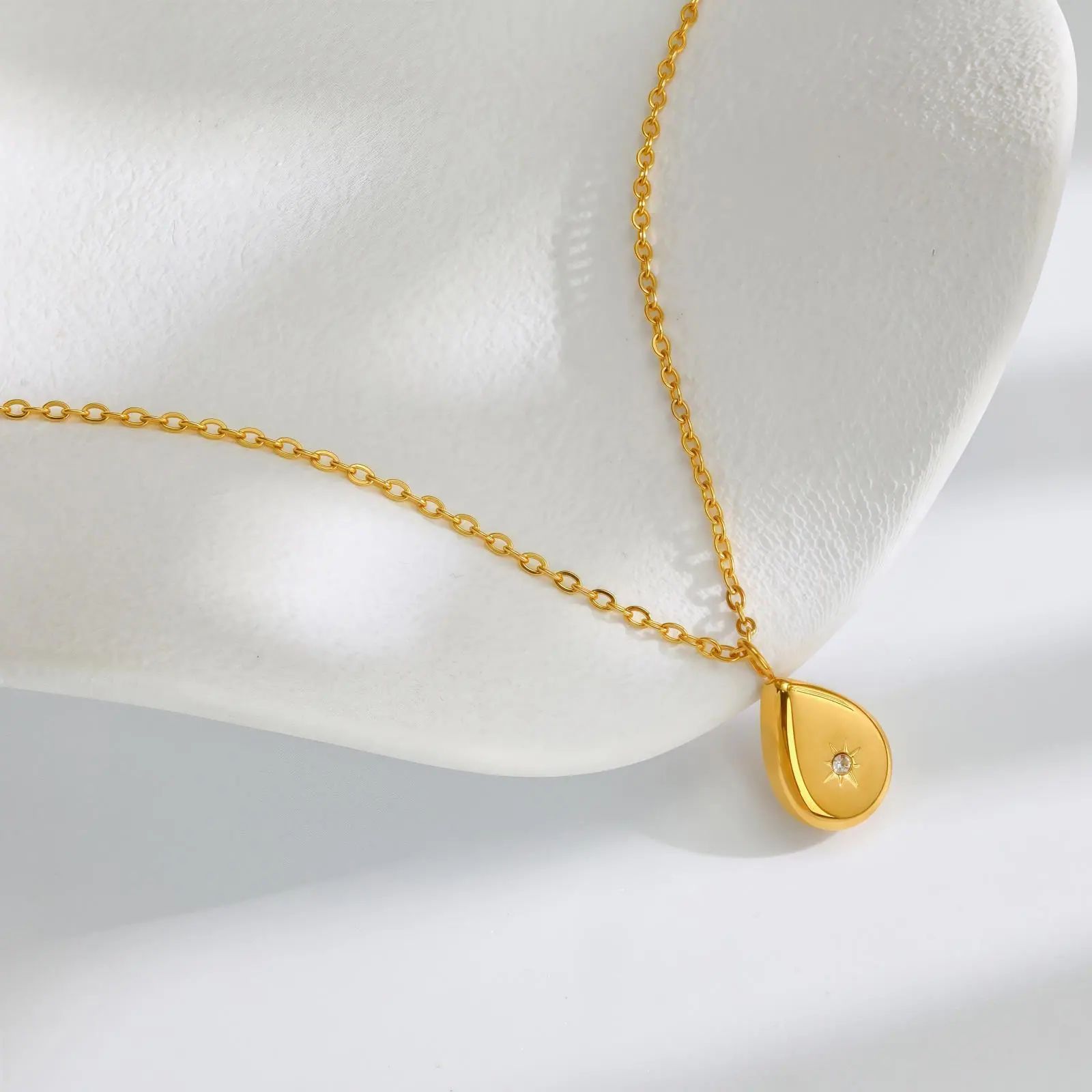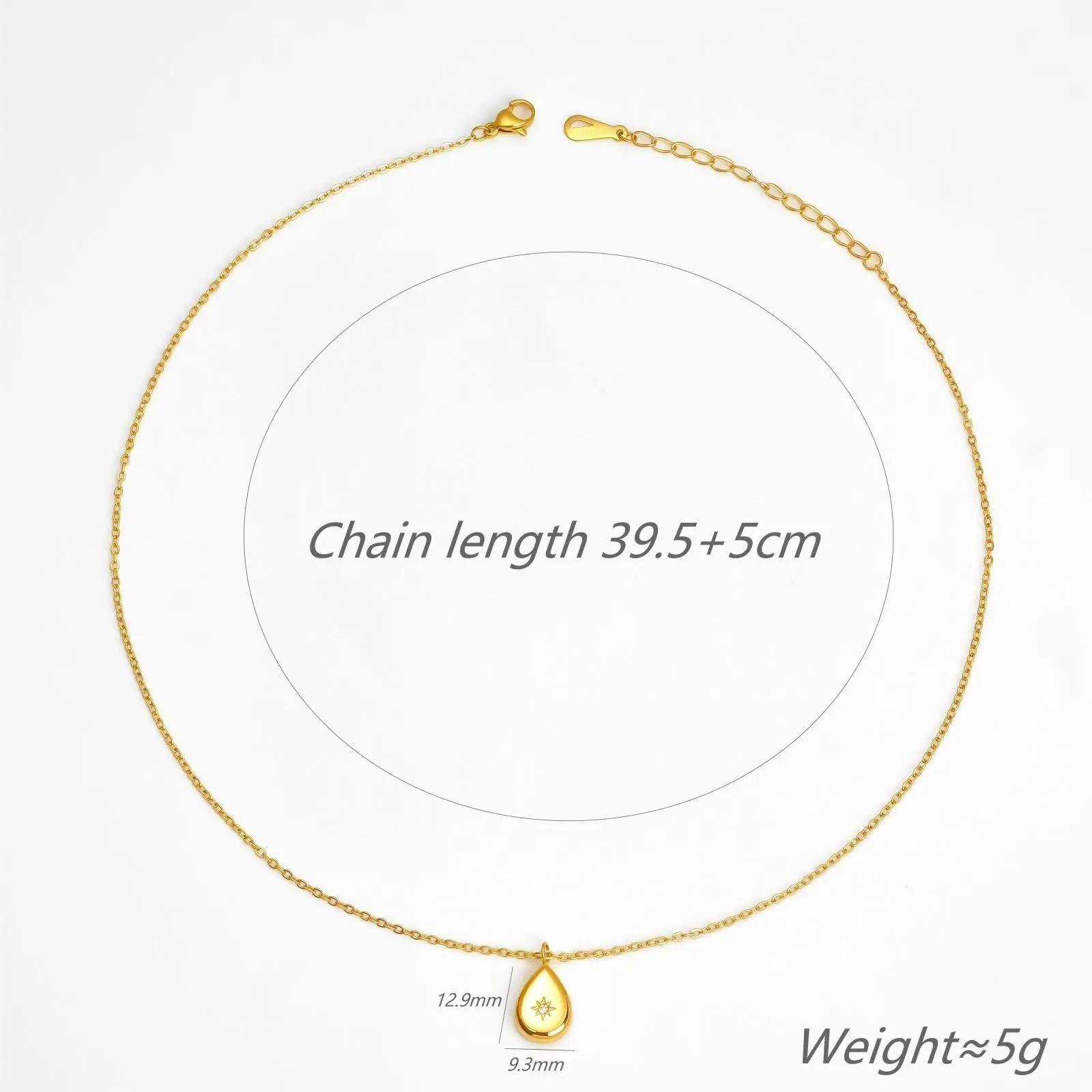 Retro Francés tridimensional gota de agua gema estrella de ocho puntas colgante collar cadena clavícula acero titanio chapado en oro retención de color collar transfronterizo
