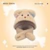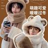 Conjunto de tres piezas de gorro, bufanda y guantes de una pieza de felpa cálida de estilo coreano para estudiantes de oso lindo para otoño e invierno.