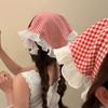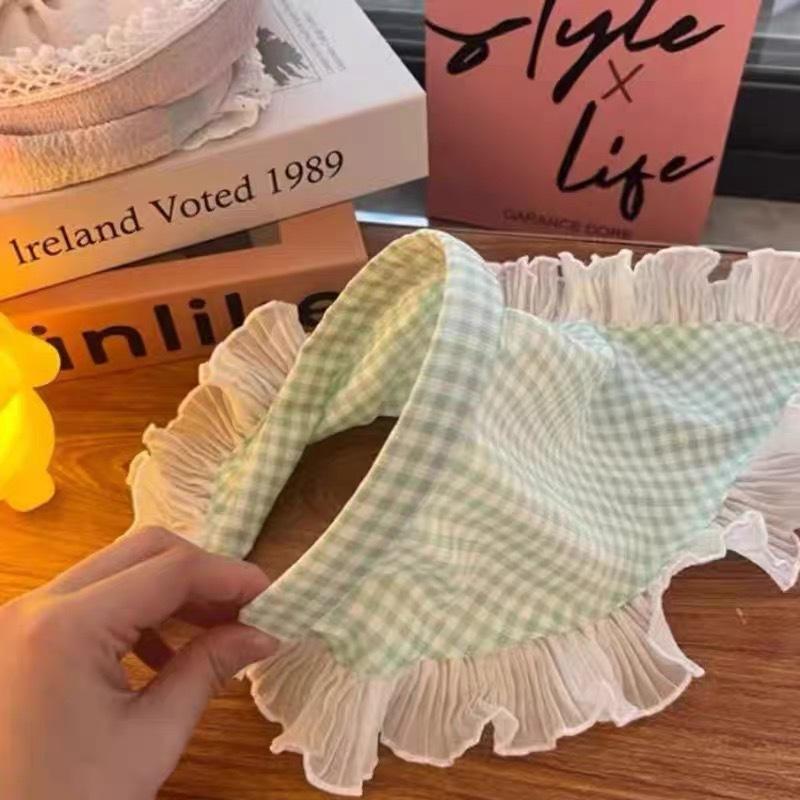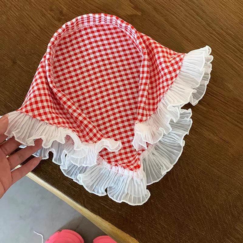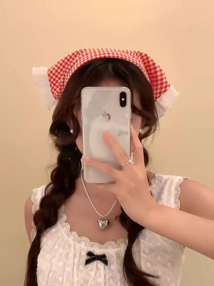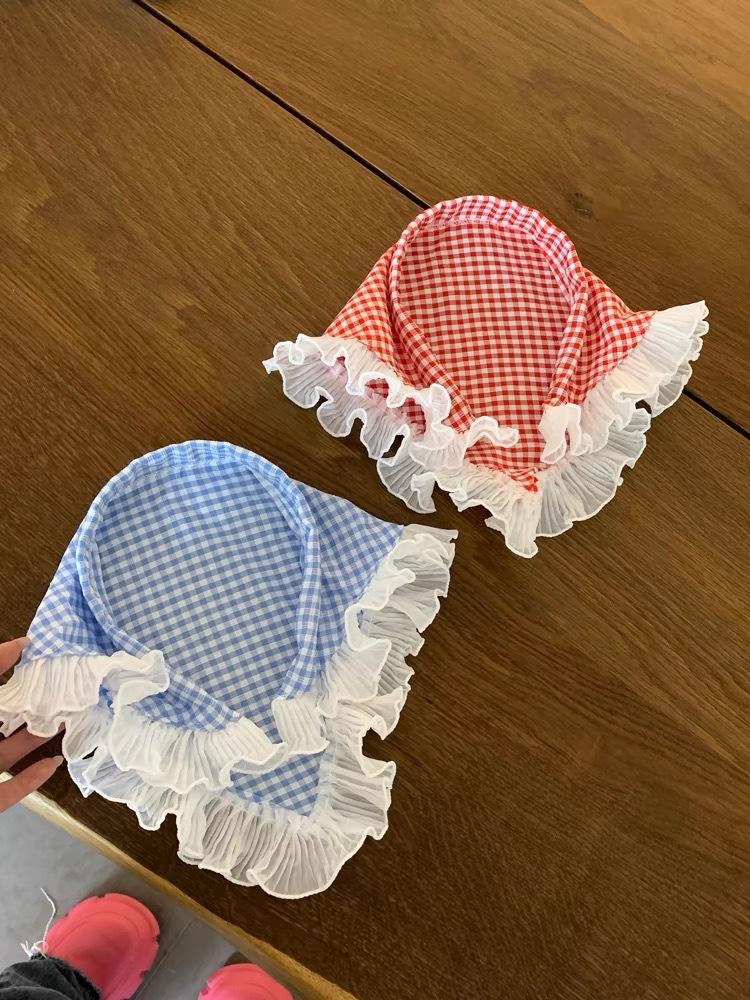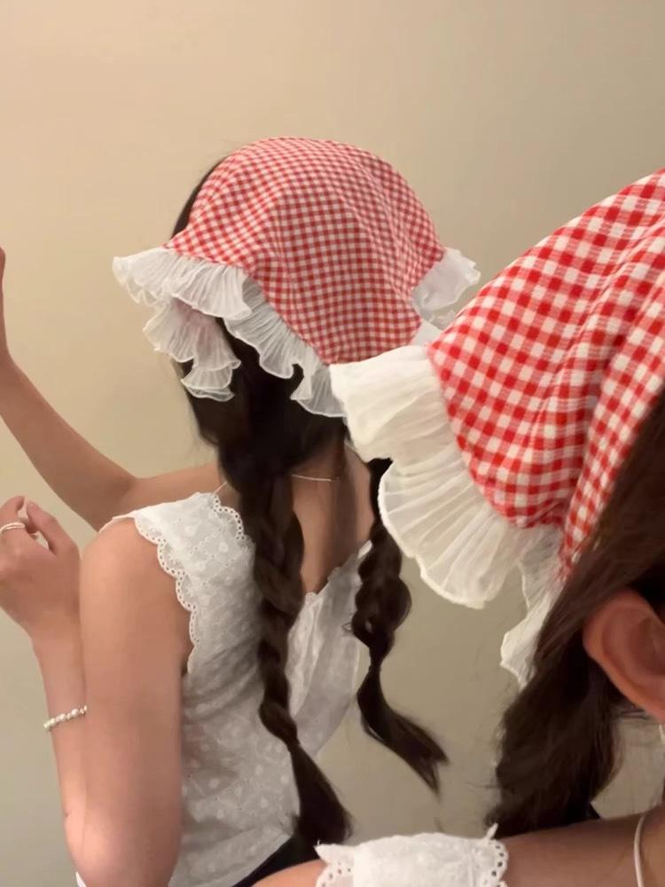 ¡Versión mejorada! Llevar bueno ~ diadema perezosa pañuelo para la cabeza estilo pastoral femenino cuadros rojos y azules dopamina toalla triangular