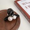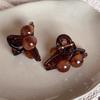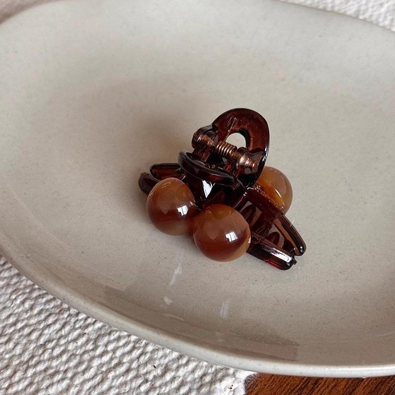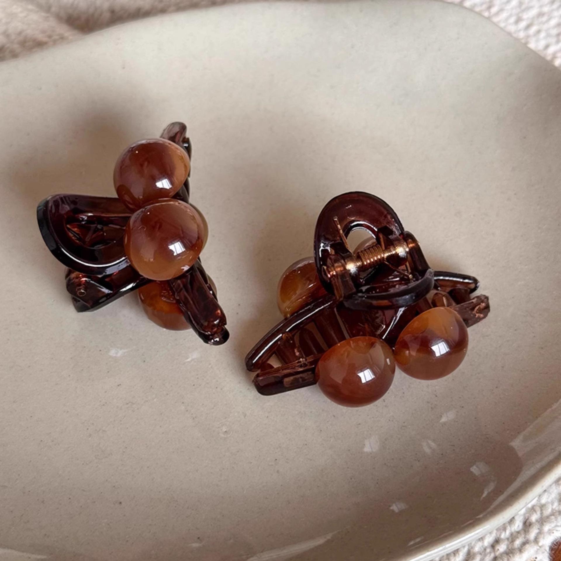 Maillard brown double pearl clip, Smudged coffee double bead tea gray small gripper, Smudged coffee double bea...
