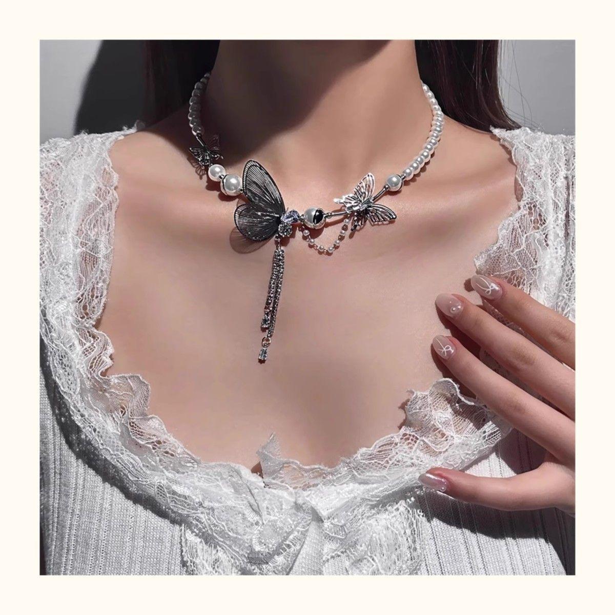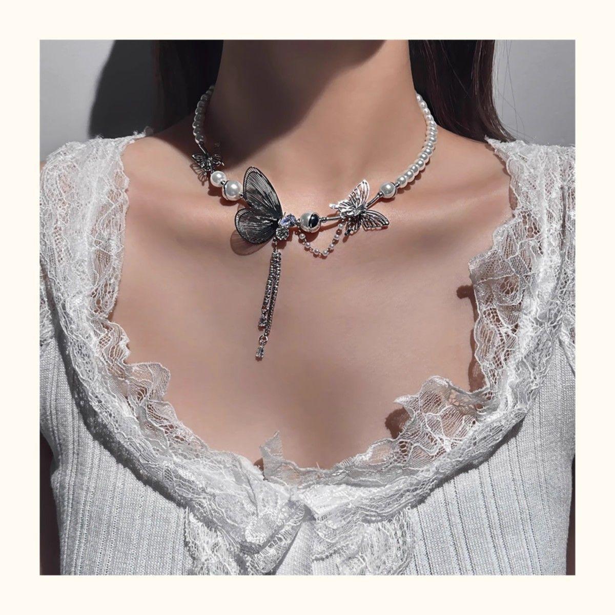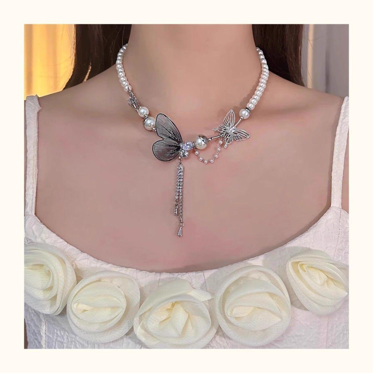 Collar de perlas de mariposa irregulares para mujer, cadena de clavícula de nicho de lujo ligero, accesorios Yabi de moda G