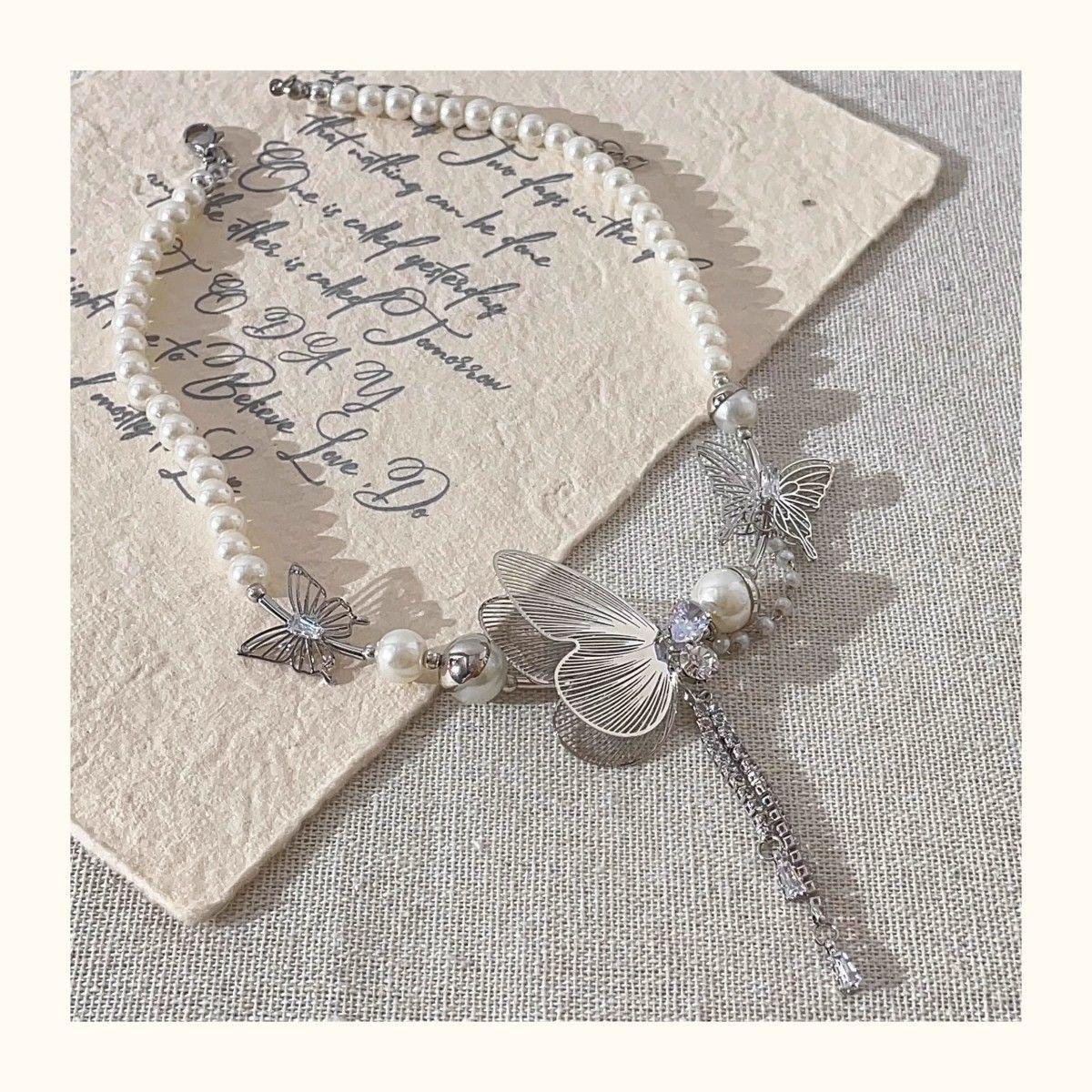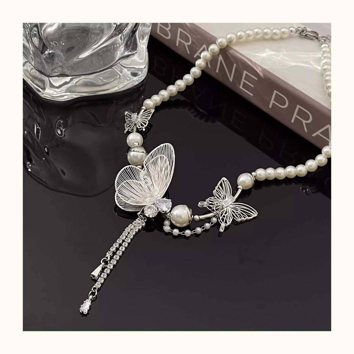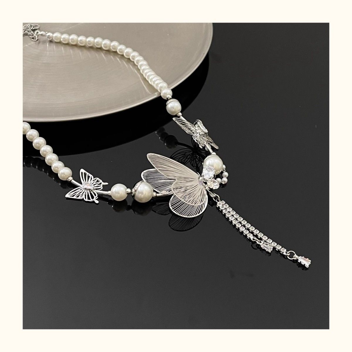 Collar de perlas de mariposa irregulares para mujer, cadena de clavícula de nicho de lujo ligero, accesorios Yabi de moda G