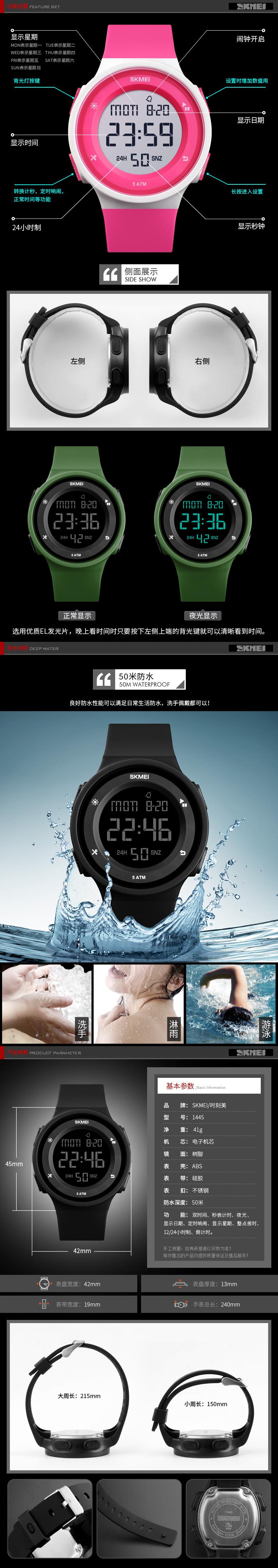 (4) Resistente al agua hasta 50 m (50M, TM, 5BAR): un reloj que lleva "50M" es un reloj resistente al agua hasta 50 m, lo que los consumidores consideran como resistente al agua hasta 50 m.