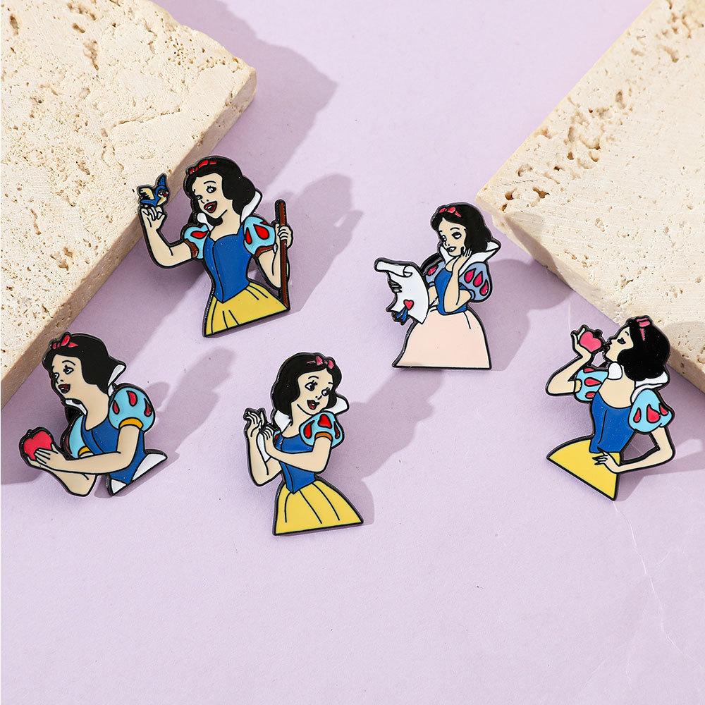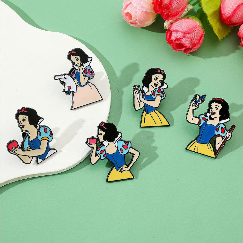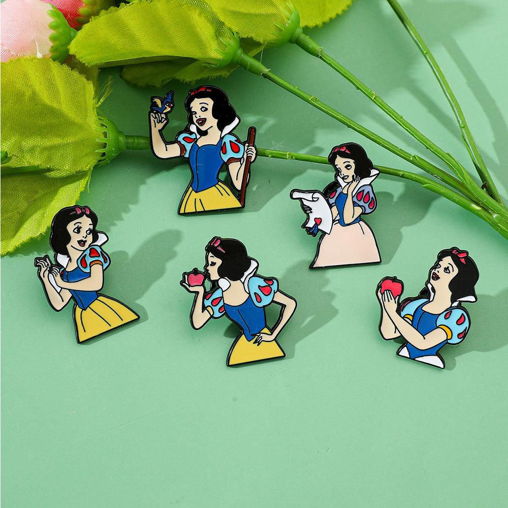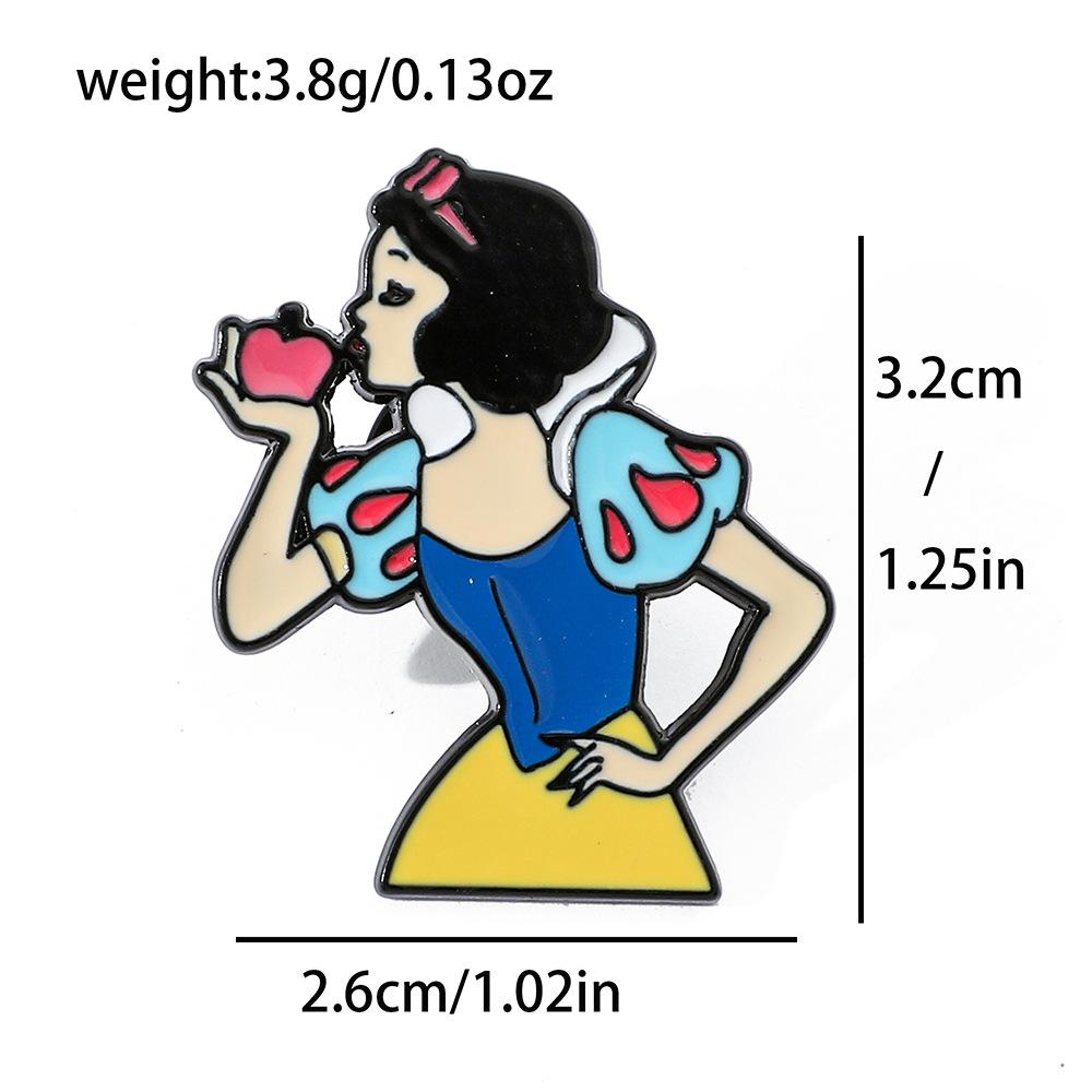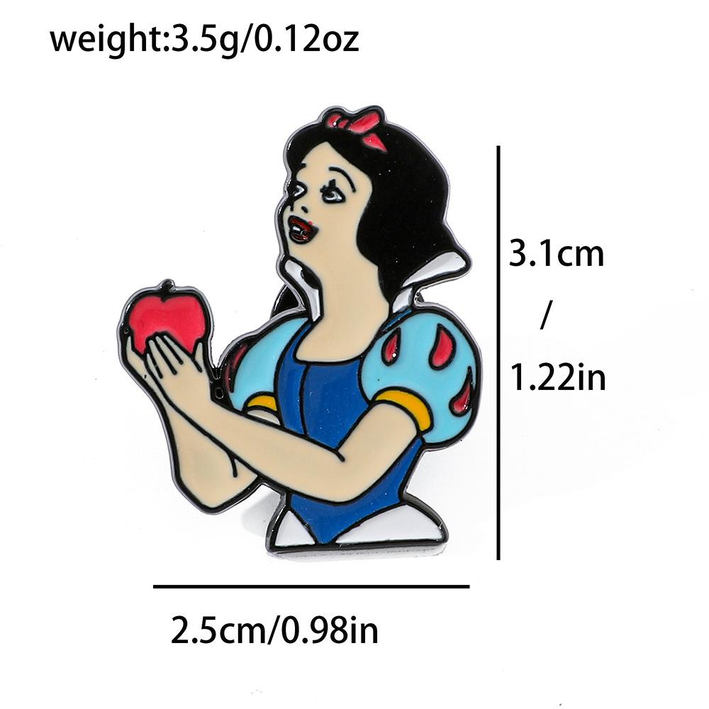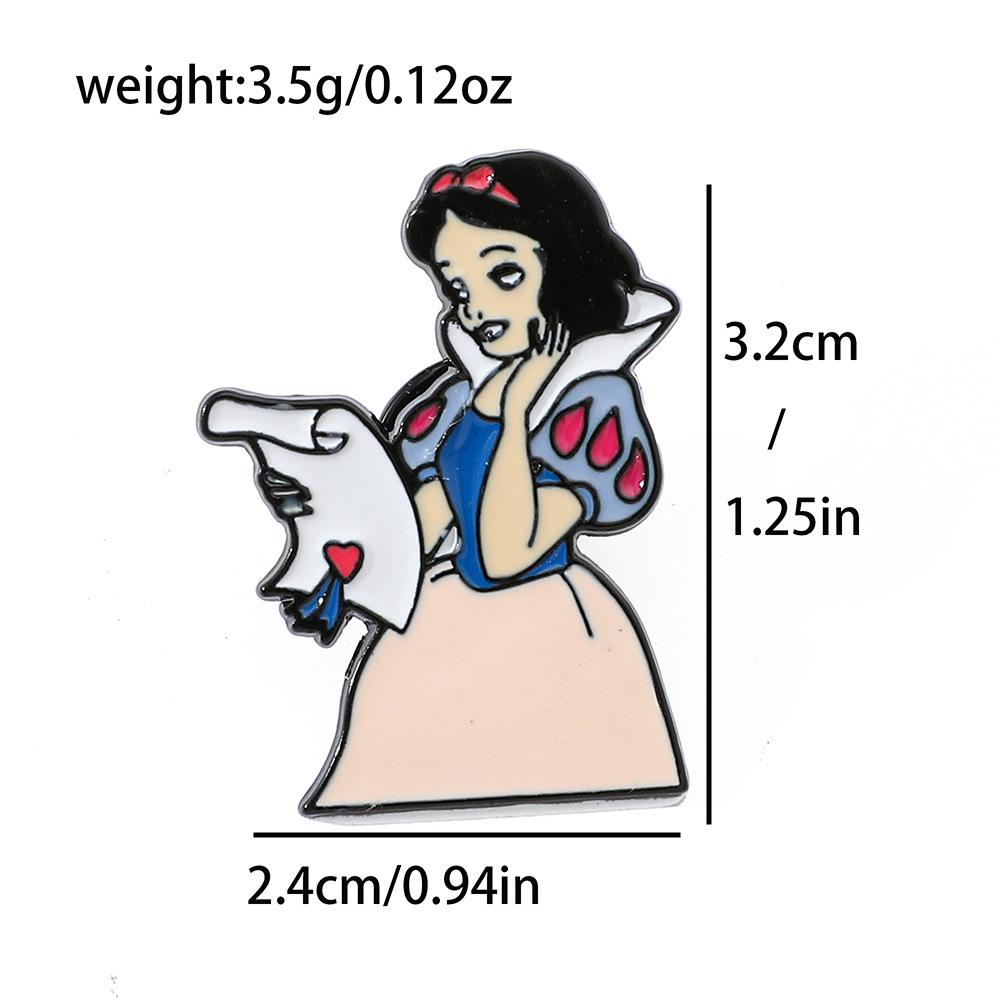 Broche de metal con diseño de dibujos animados de Blancanieves, bonito, decorativo, con historia creativa, con gotas de aceite, de aleación, accesorios