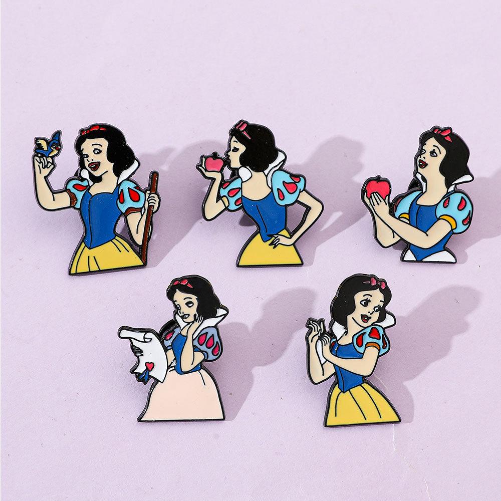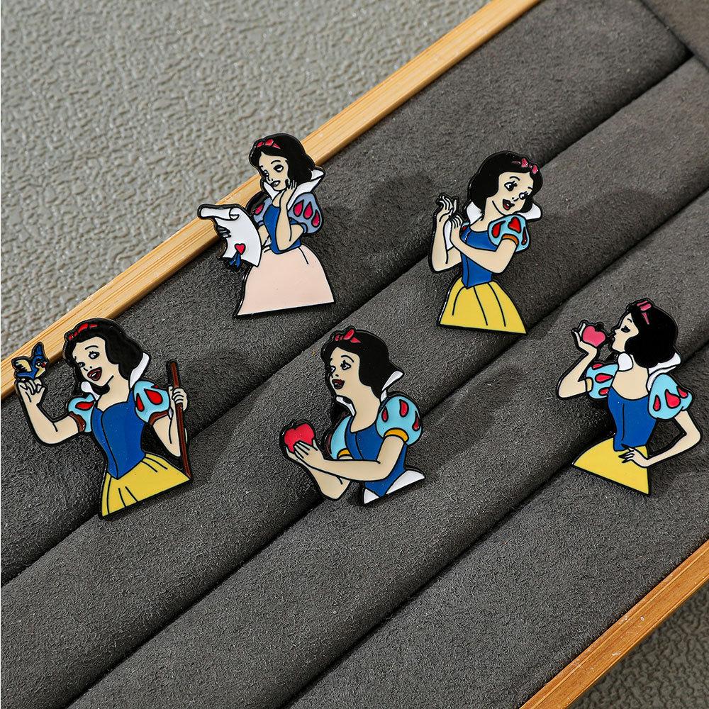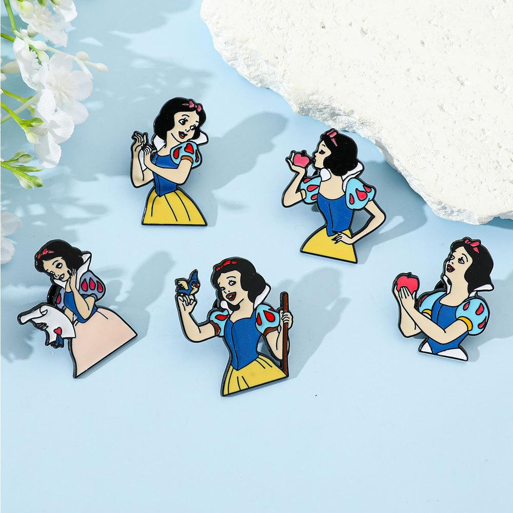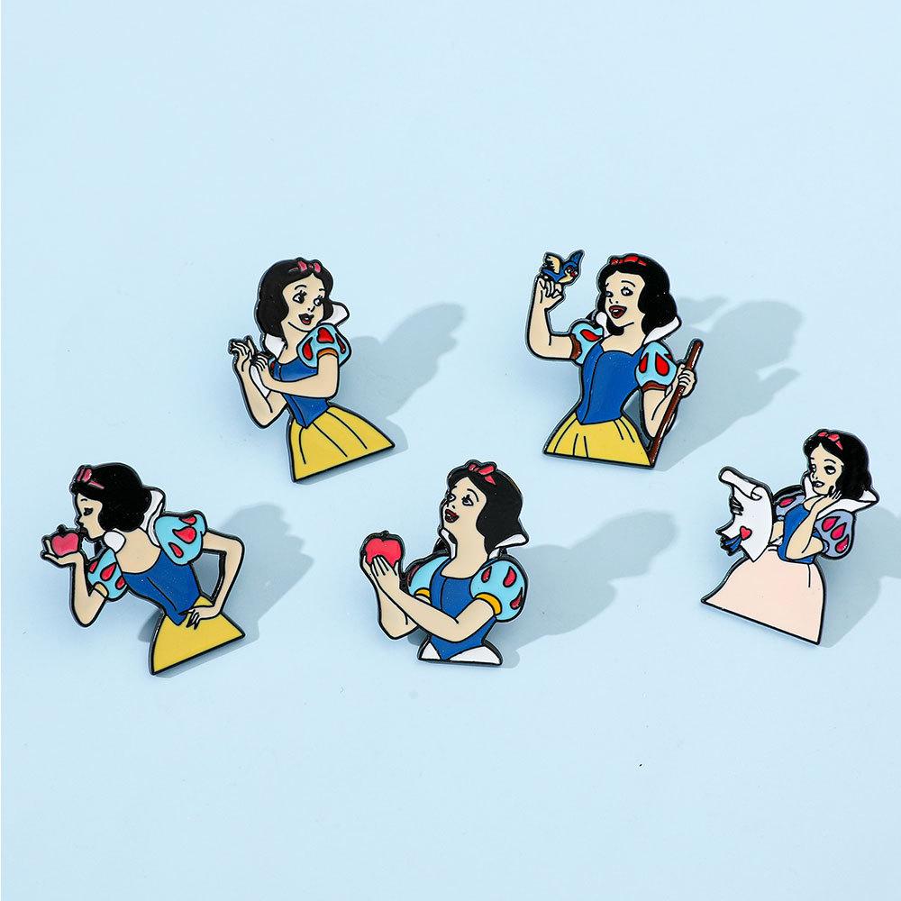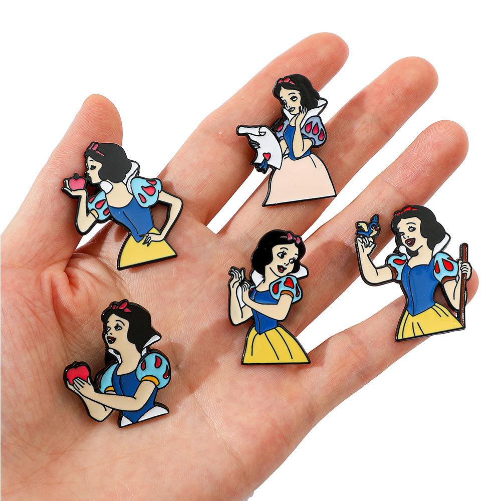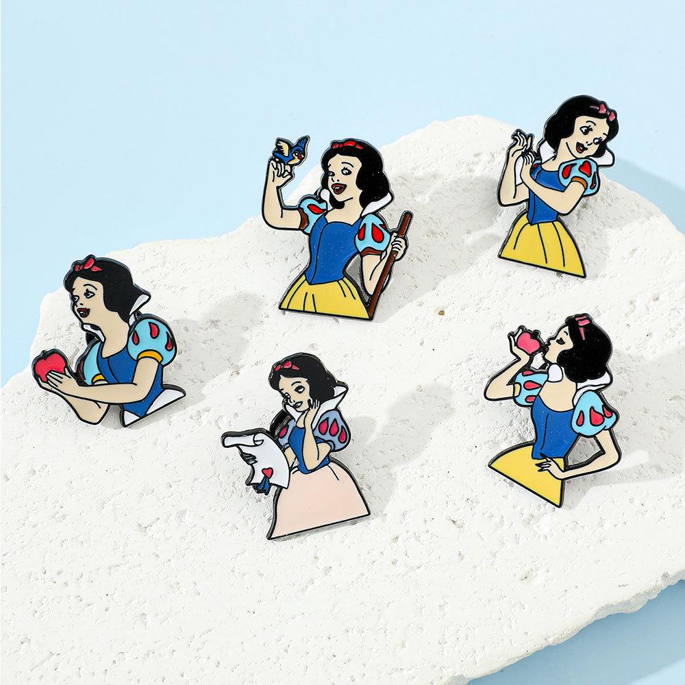 Broche de metal con diseño de dibujos animados de Blancanieves, bonito, decorativo, con historia creativa, con gotas de aceite, de aleación, accesorios