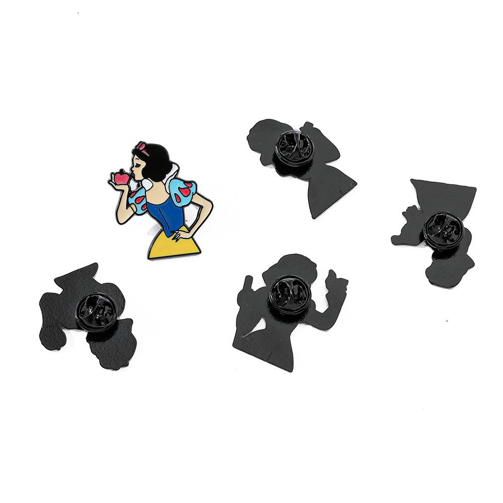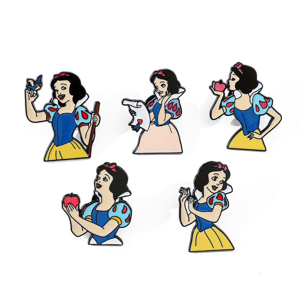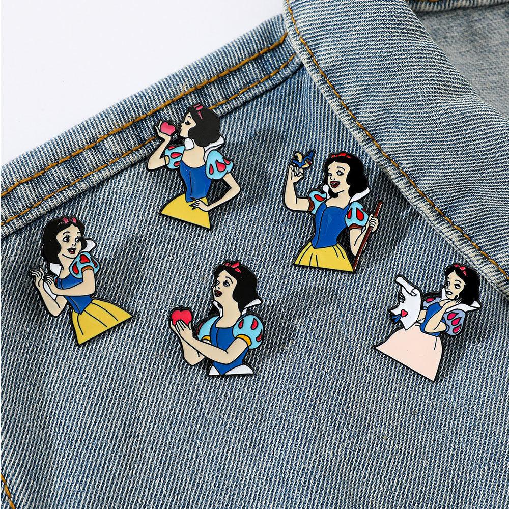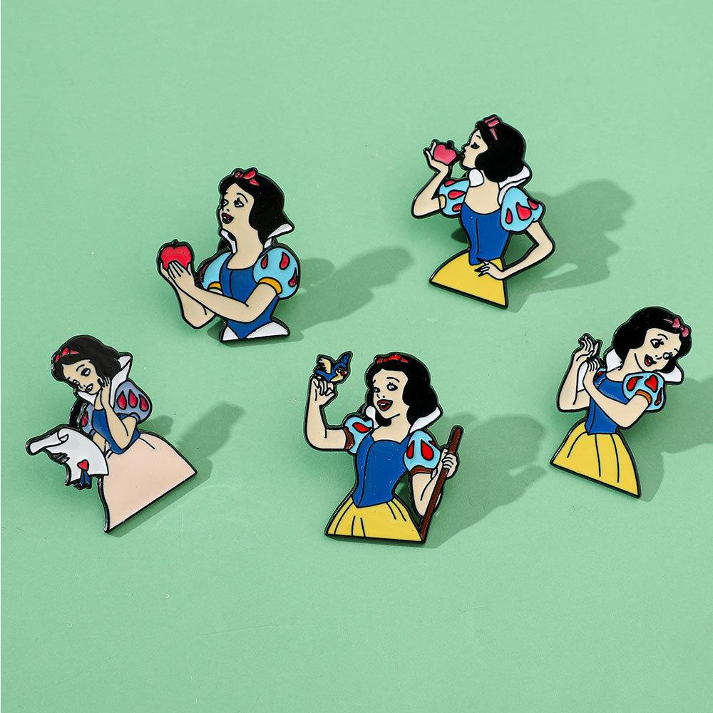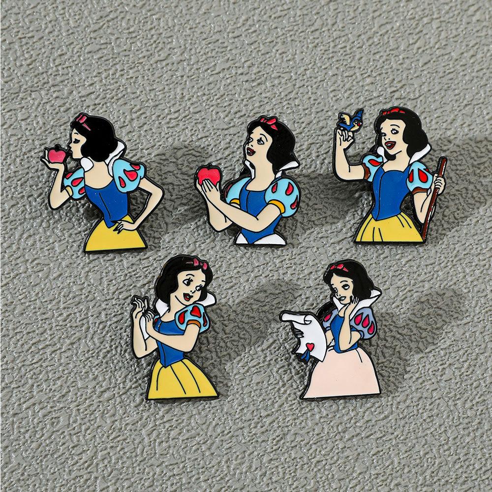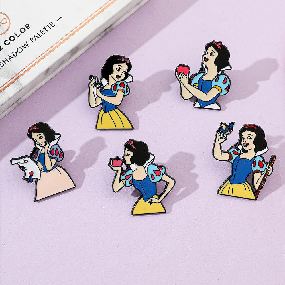 Broche de metal con diseño de dibujos animados de Blancanieves, bonito, decorativo, con historia creativa, con gotas de aceite, de aleación, accesorios