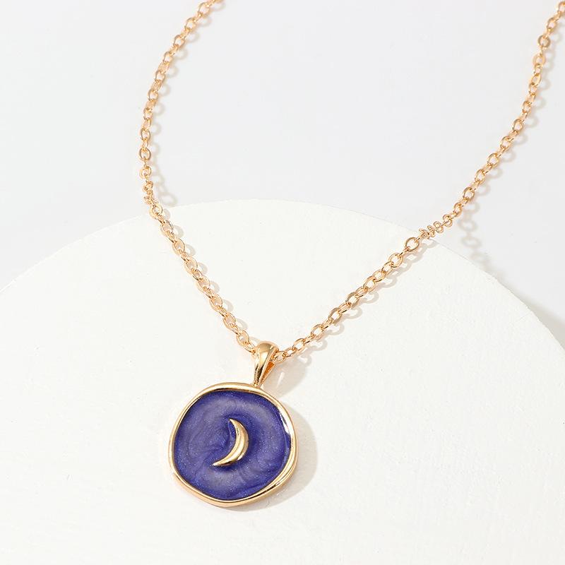 Collar con colgante doble de estrella y luna con aceite de aleación de exquisita moda transfronteriza europea y americana