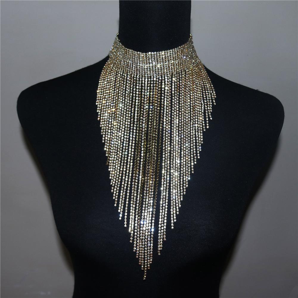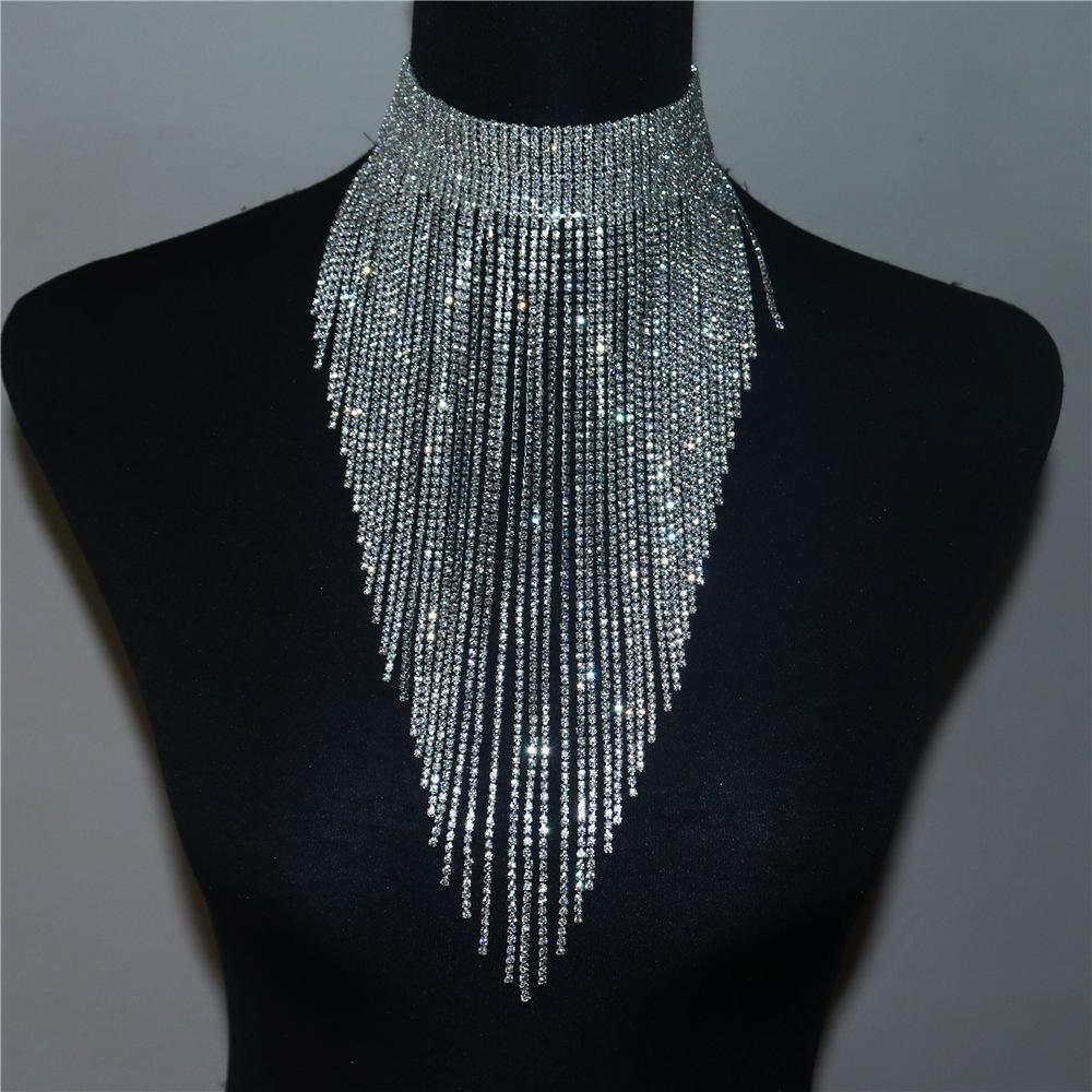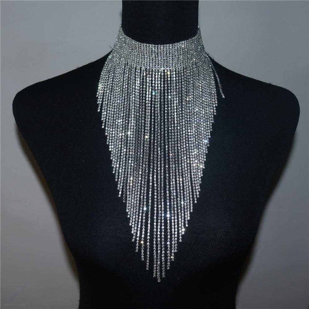 Collar de diamantes súper brillante y popular de moda europea y americana, collar largo con borlas y diamantes de imitación para clavícula, collar femenino al por mayor