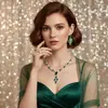Conjunto de dos piezas de collar y pendientes largos con cadena de clavícula y circonitas de cobre estilo vintage clásico europeo y americano