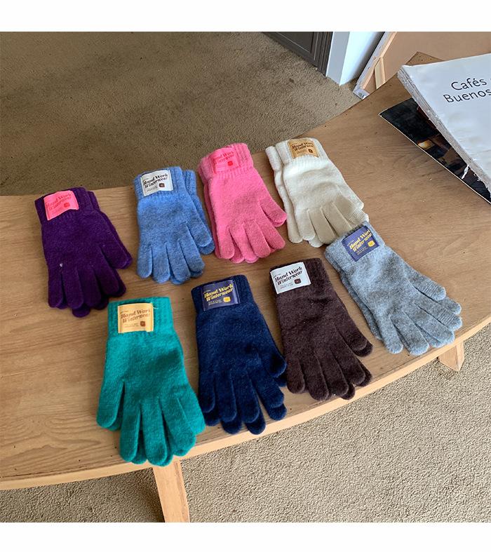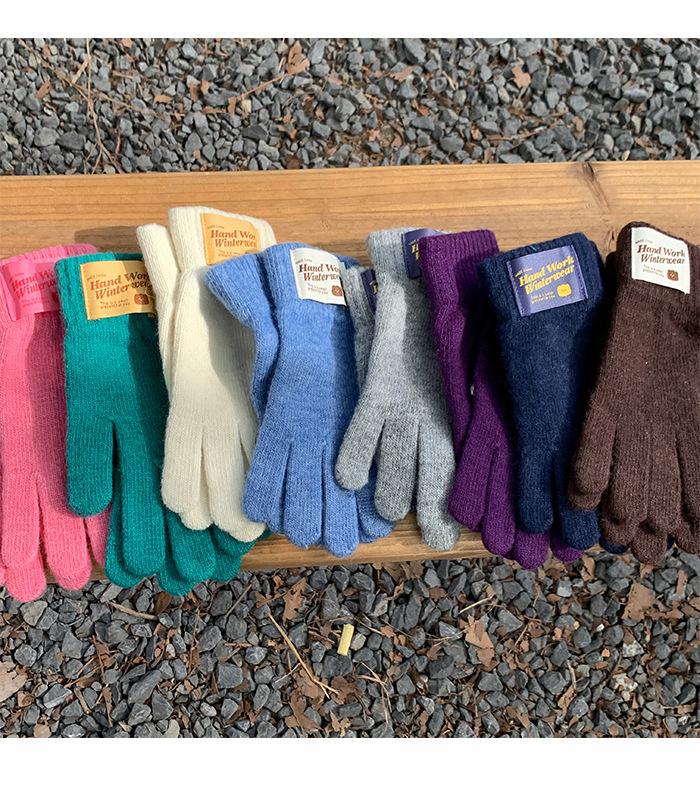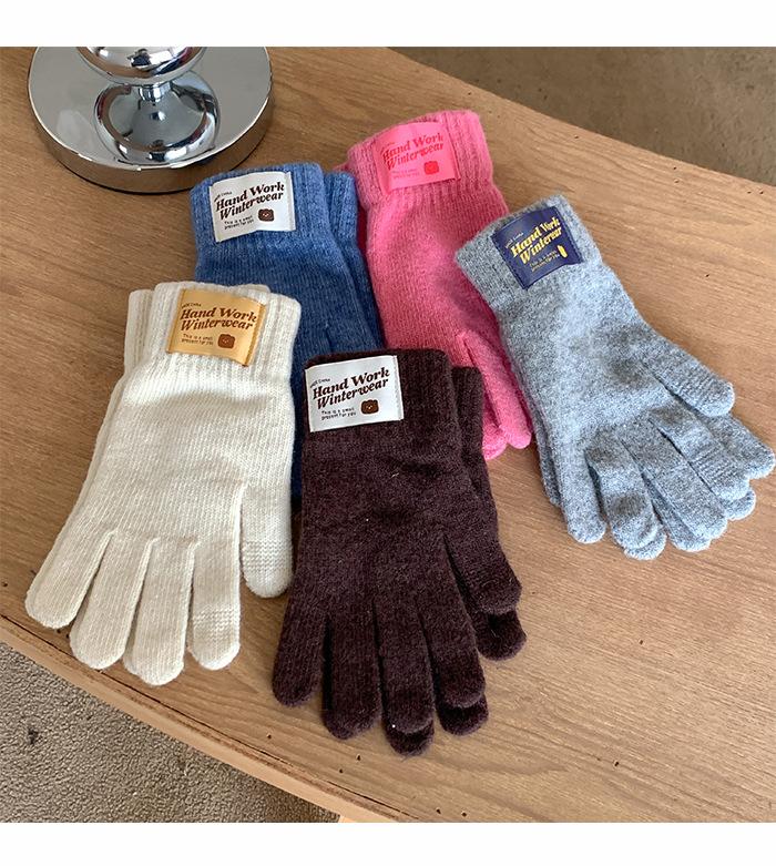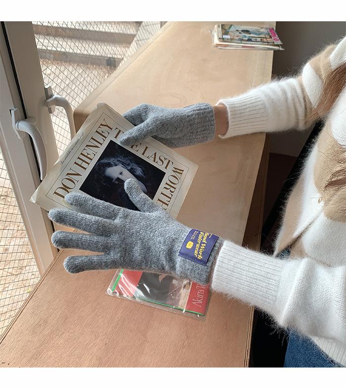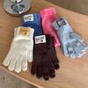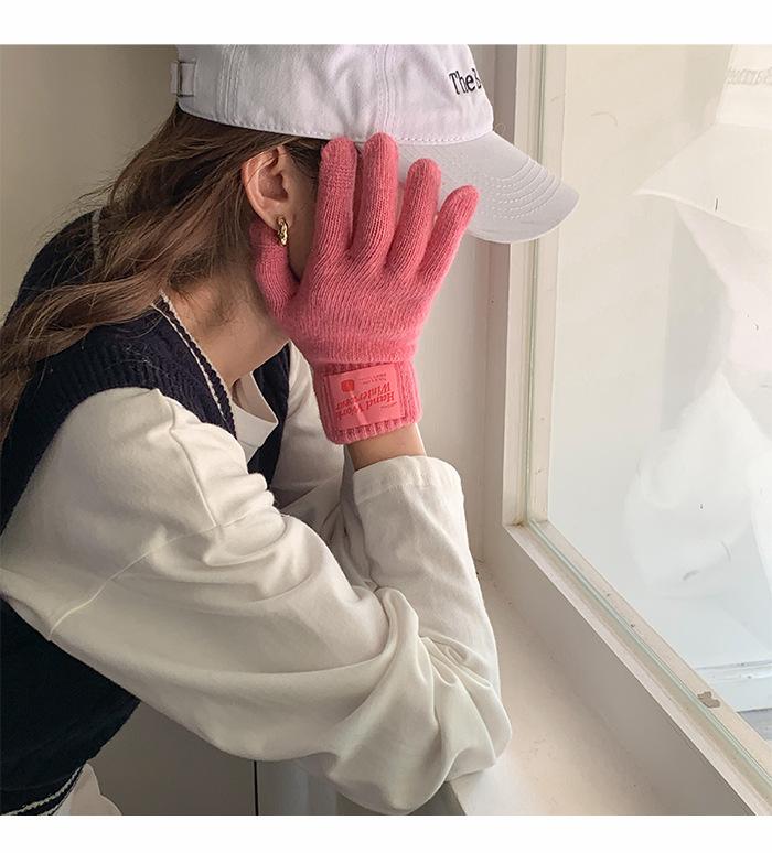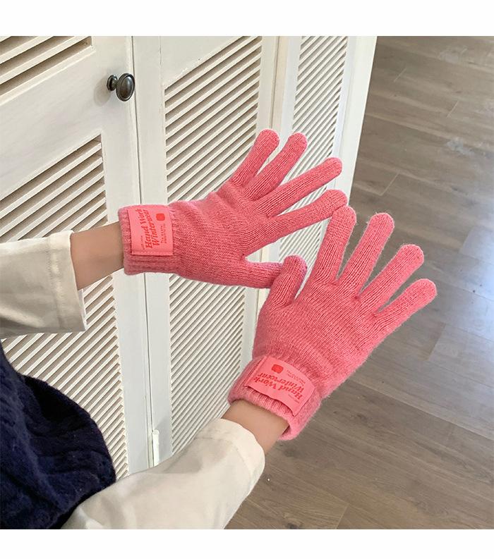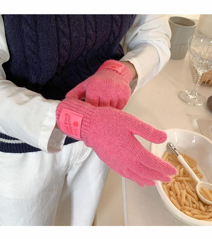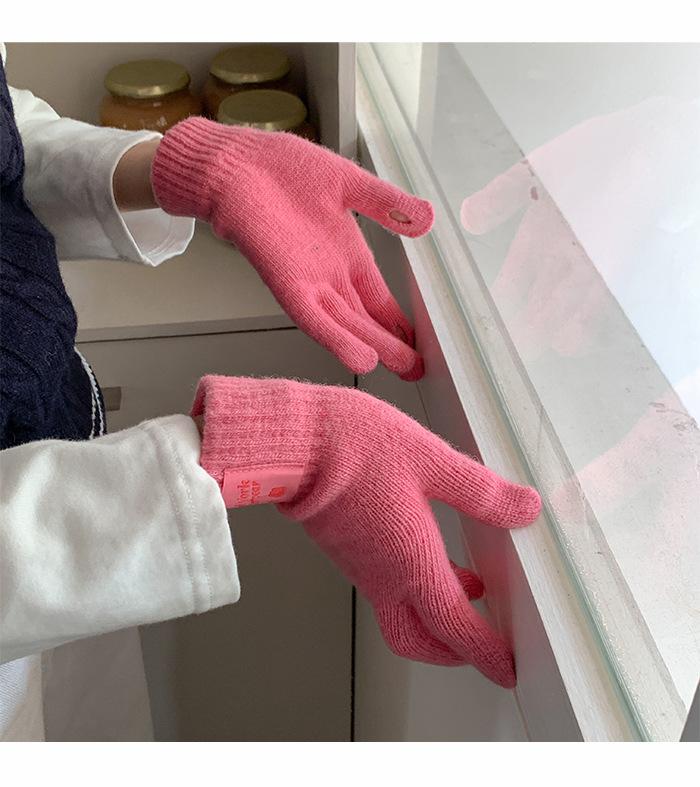 Guantes Largos de Lana Tejida Rosa para Mujer Coreanos Invierno Cortavientos de Cinco Dedos Cálidos para Ciclismo Estilo Preppy Ins