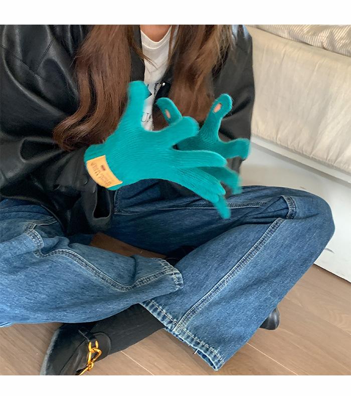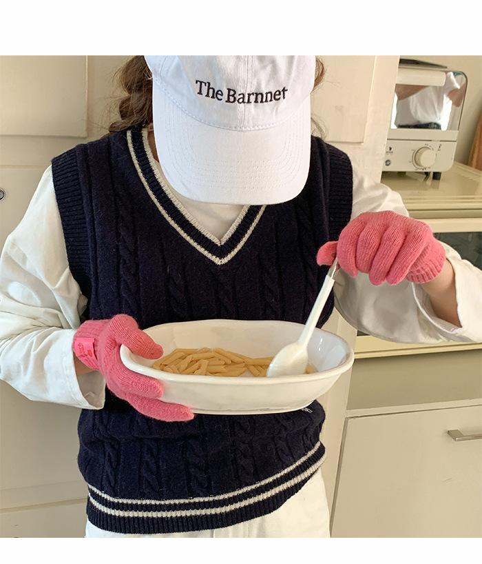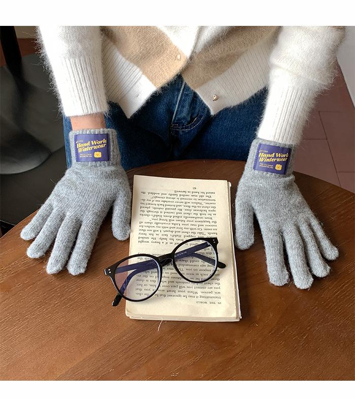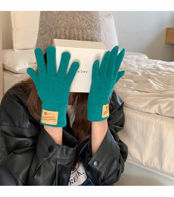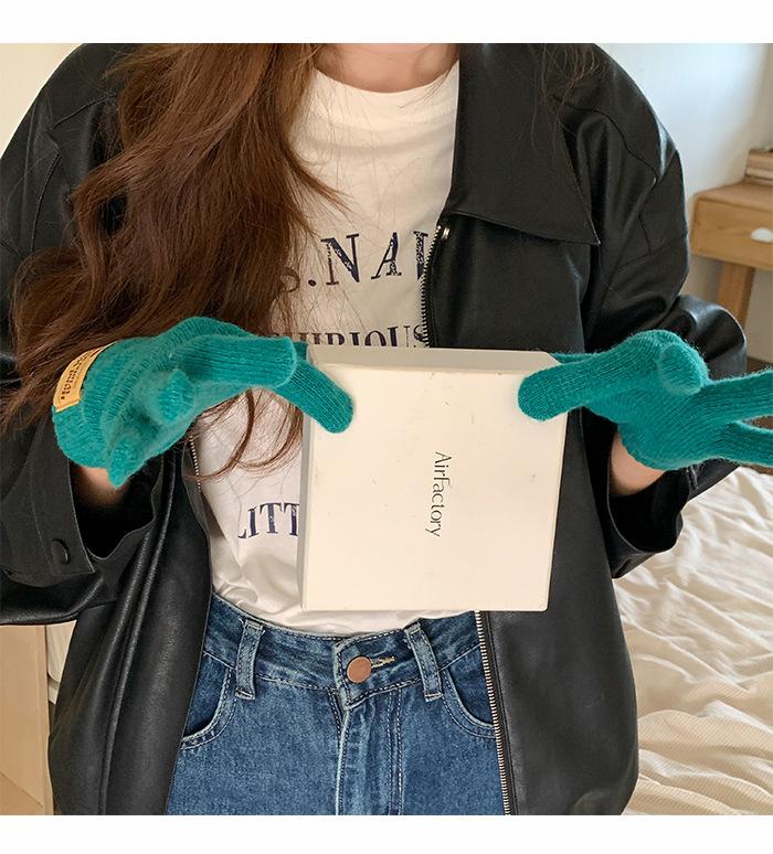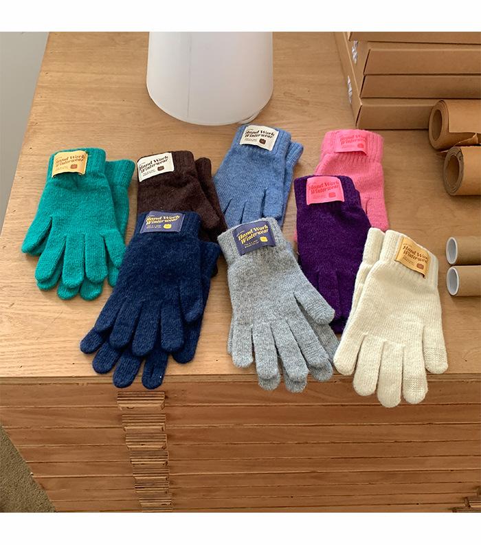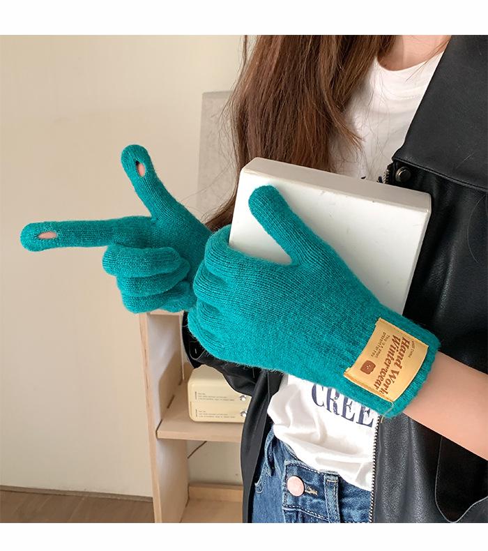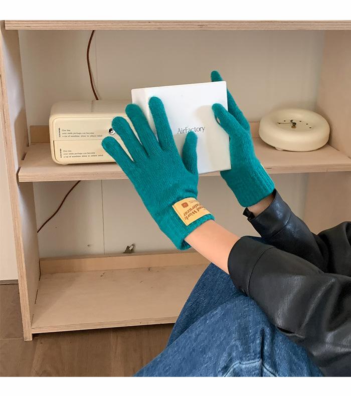 Guantes Largos de Lana Tejida Rosa para Mujer Coreanos Invierno Cortavientos de Cinco Dedos Cálidos para Ciclismo Estilo Preppy Ins