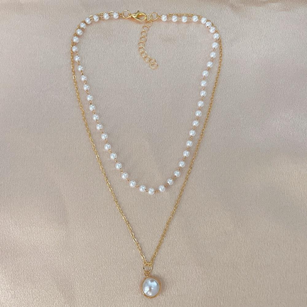 Collar Coreano Ins de Doble Capa con Colgante de Perla para Mujer, Cadena de Cuello Choker Simple y Elegante, Cadena para Clavícula con Nácar