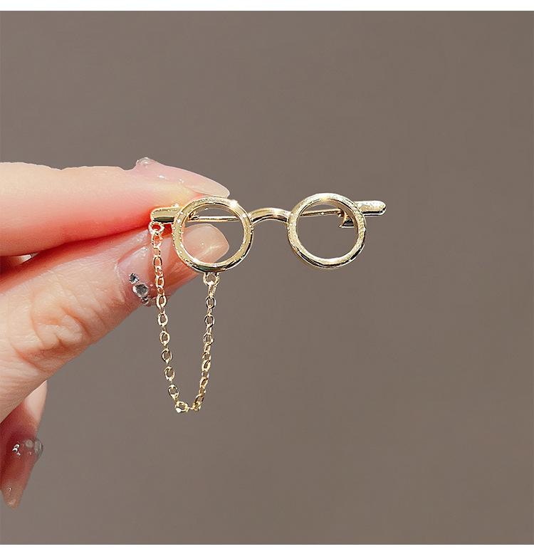 Broche de gafas lindas de dibujos animados para mujer, pin de solapa personalizado simple de alta calidad para combinar con todo, accesorios para traje con hebilla anti-exposición