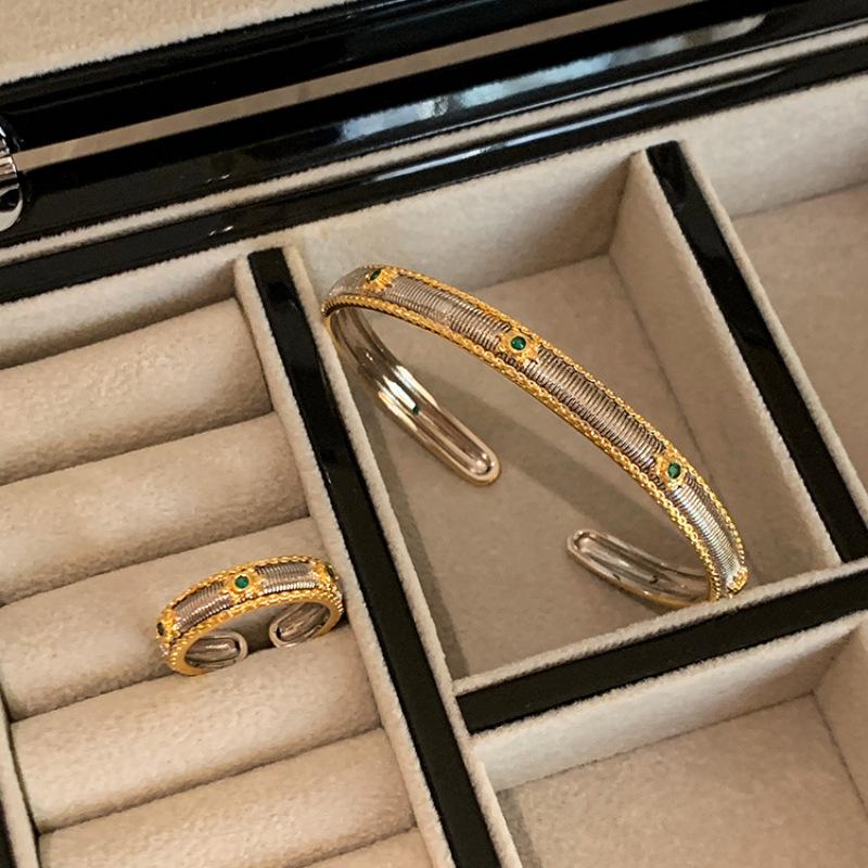 Pulsera de Circonia Esmeralda Europea y Americana para Mujer Pulsera Nicho de Lujo Ligero Fina de Alta Calidad Pulsera Vintage de Industria Pesada