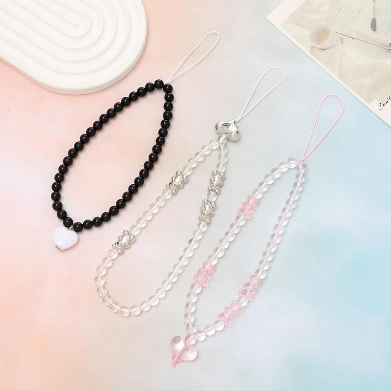 Nueva cadena para teléfono móvil con cuentas de cristal y forma de oso, cordón para la muñeca, colgante de amor, resistente a caídas y antipérdida, venta al por mayor para mujer