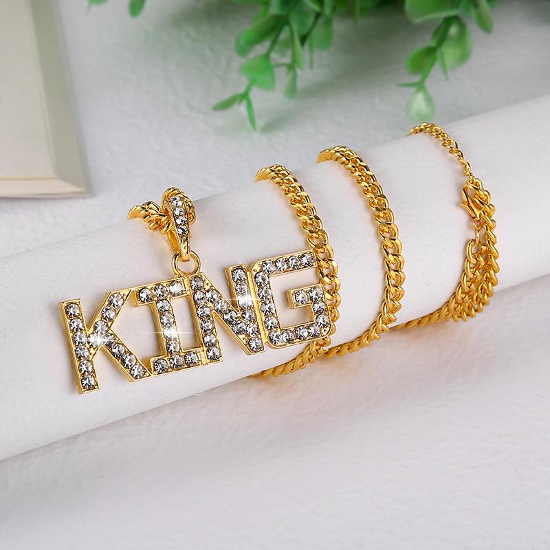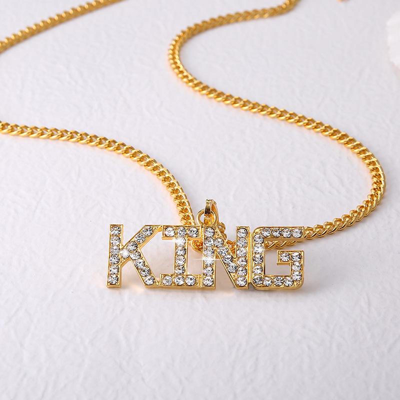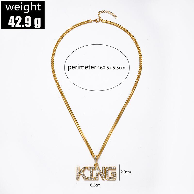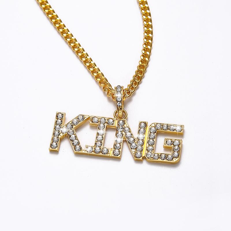 Collar transfronterizo con letras del rey del hip-hop europeo y americano para hombre, collar con colgante de diamantes de moda de Amazon.