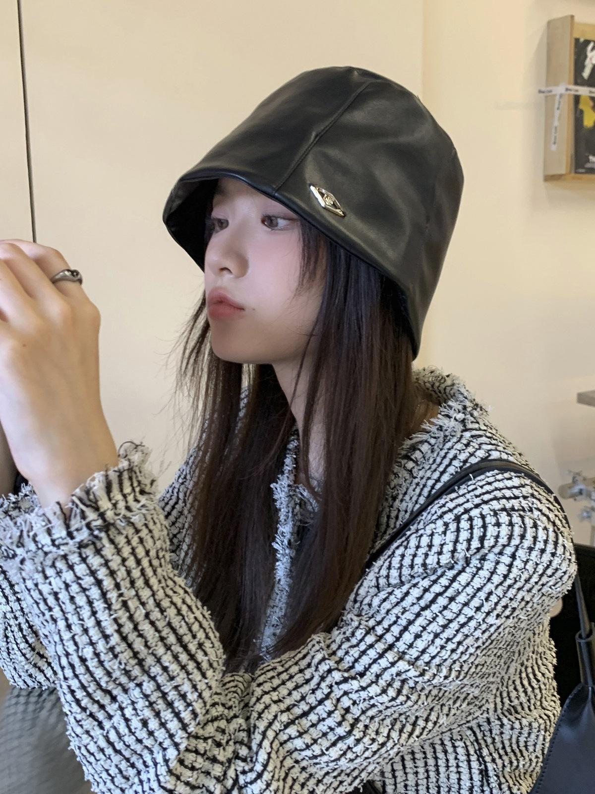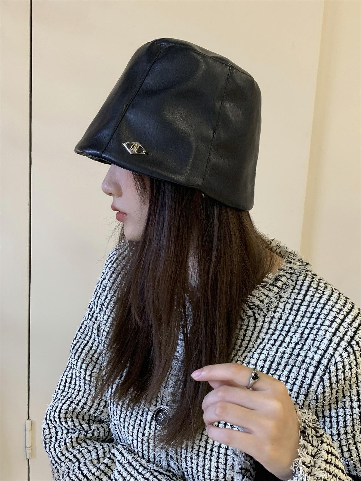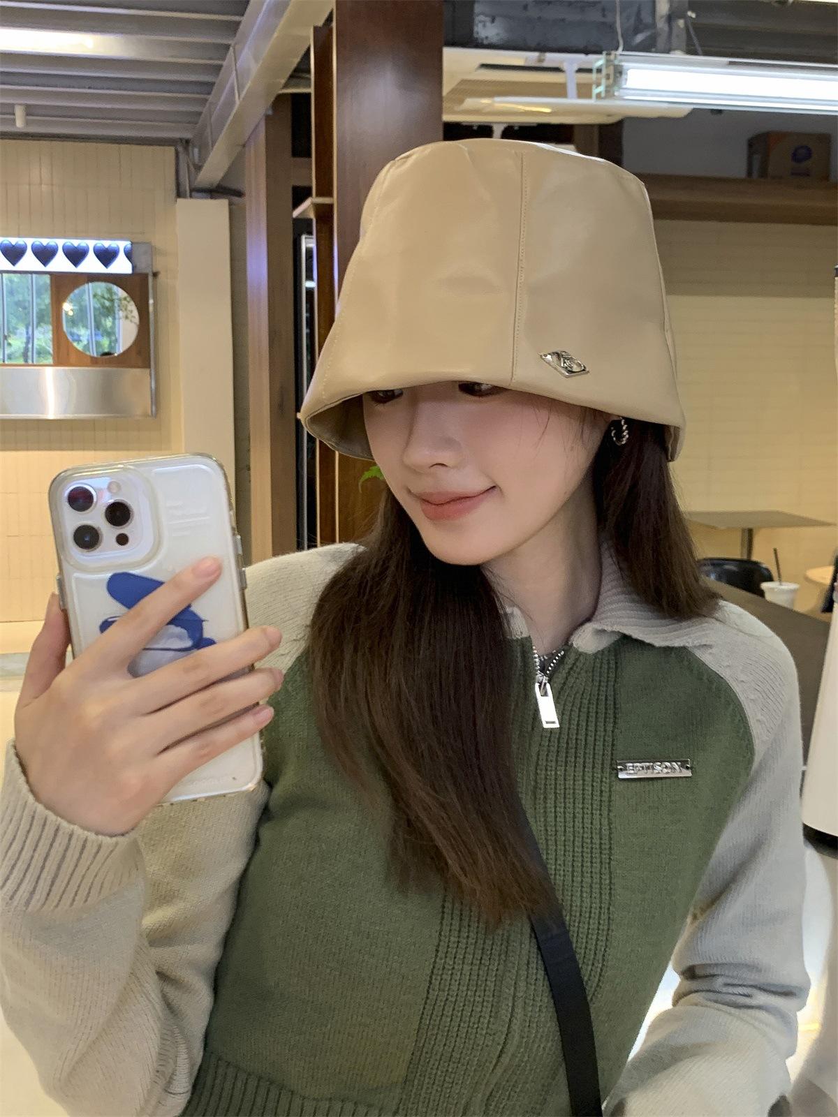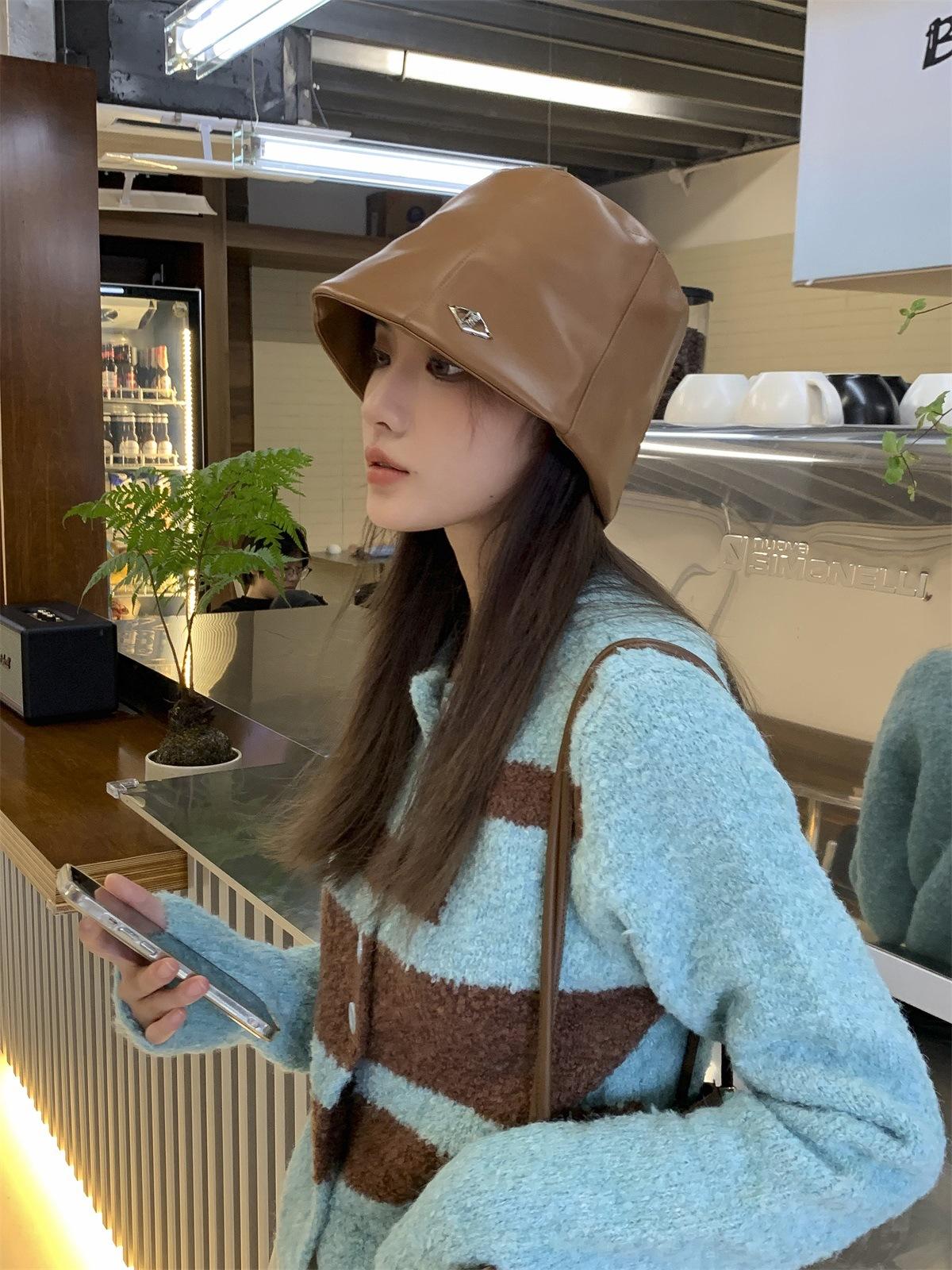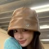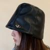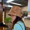 Sombrero de pescador de cuero retro estilo japonés para mujer, otoño e invierno, estilo coreano, sombrero de lavabo rojo de red de moda, sombrero de cubo de calle de moda