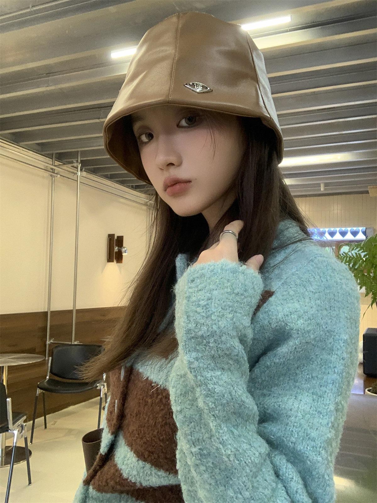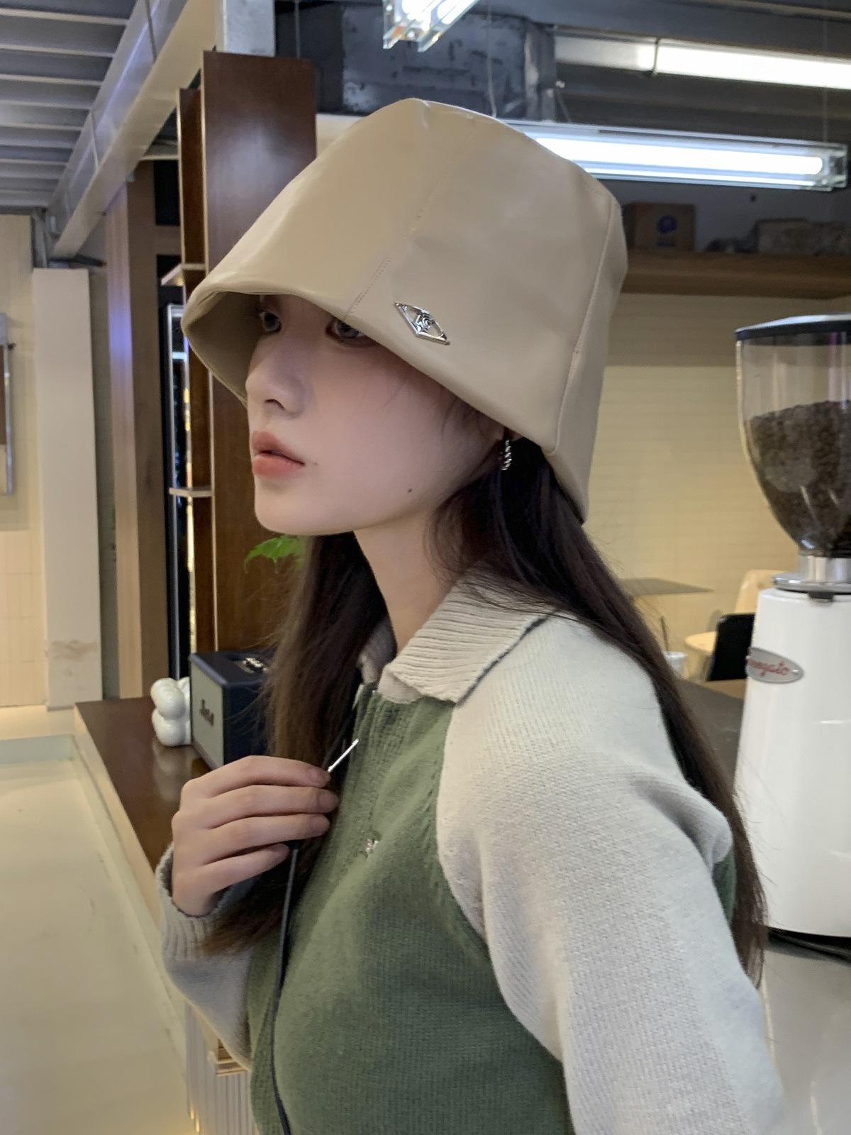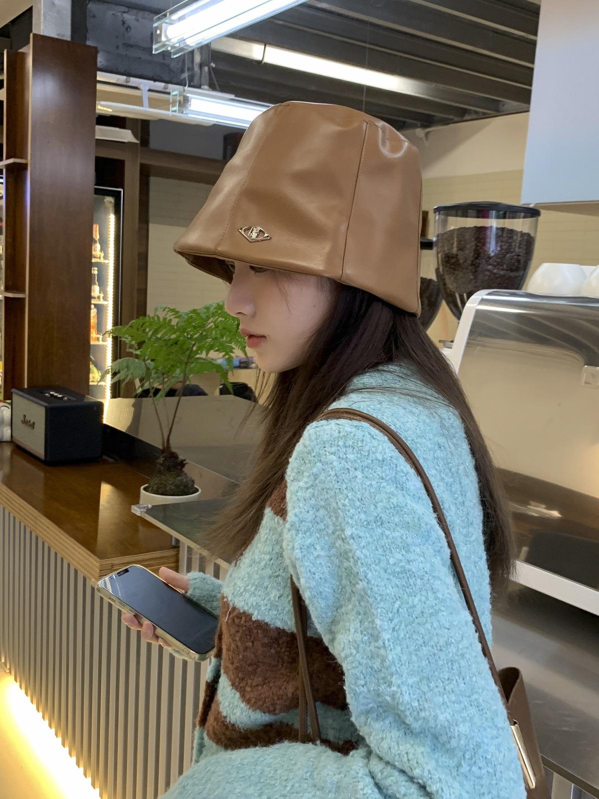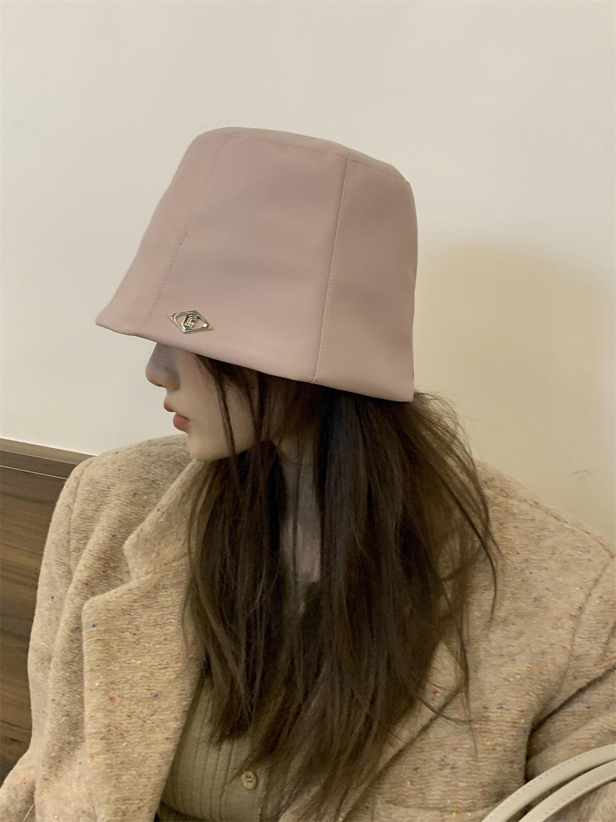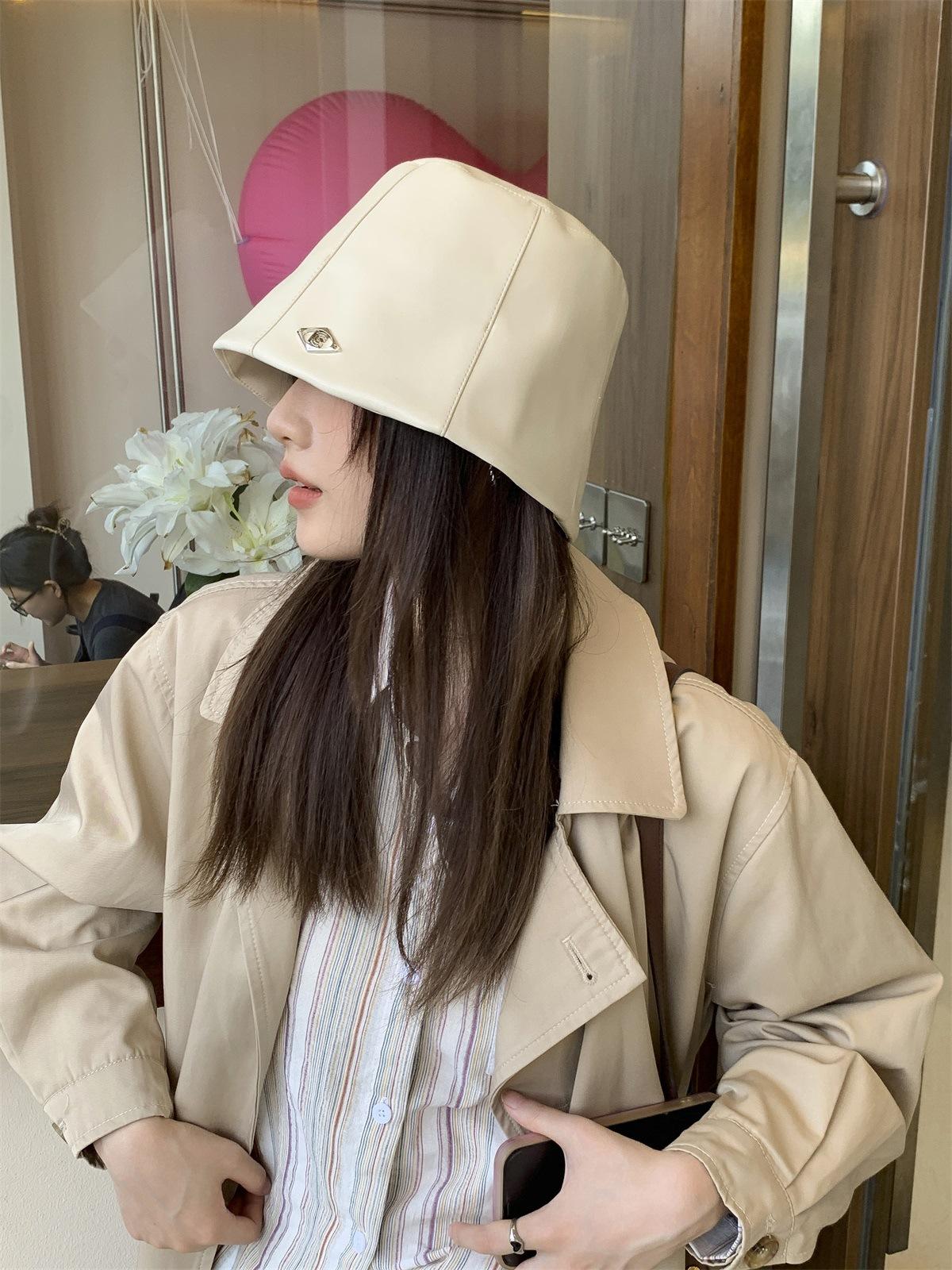 Sombrero de pescador de cuero retro estilo japonés para mujer, otoño e invierno, estilo coreano, sombrero de lavabo rojo de red de moda, sombrero de cubo de calle de moda