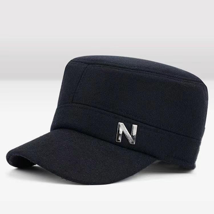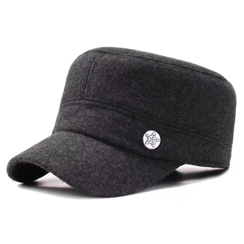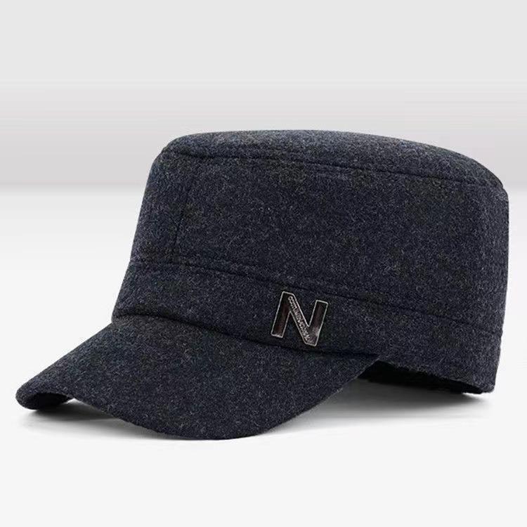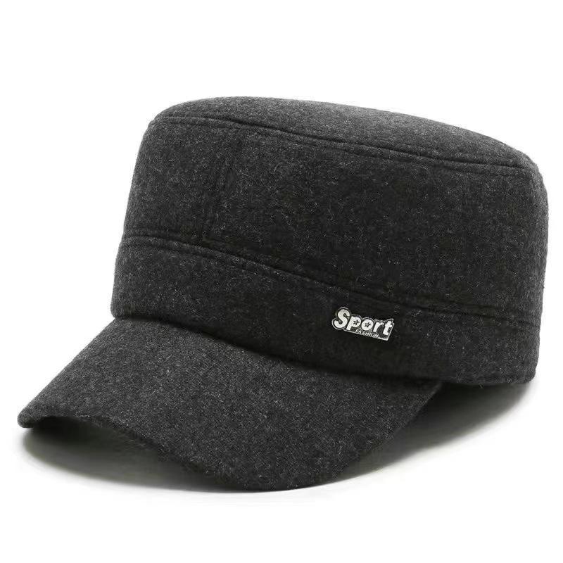 Sombrero de lana viejo de invierno para personas de mediana edad y ancianos, sombrero plano para hombre, grueso con forro polar, sombrero con orejeras, sombrero cálido para ancianos