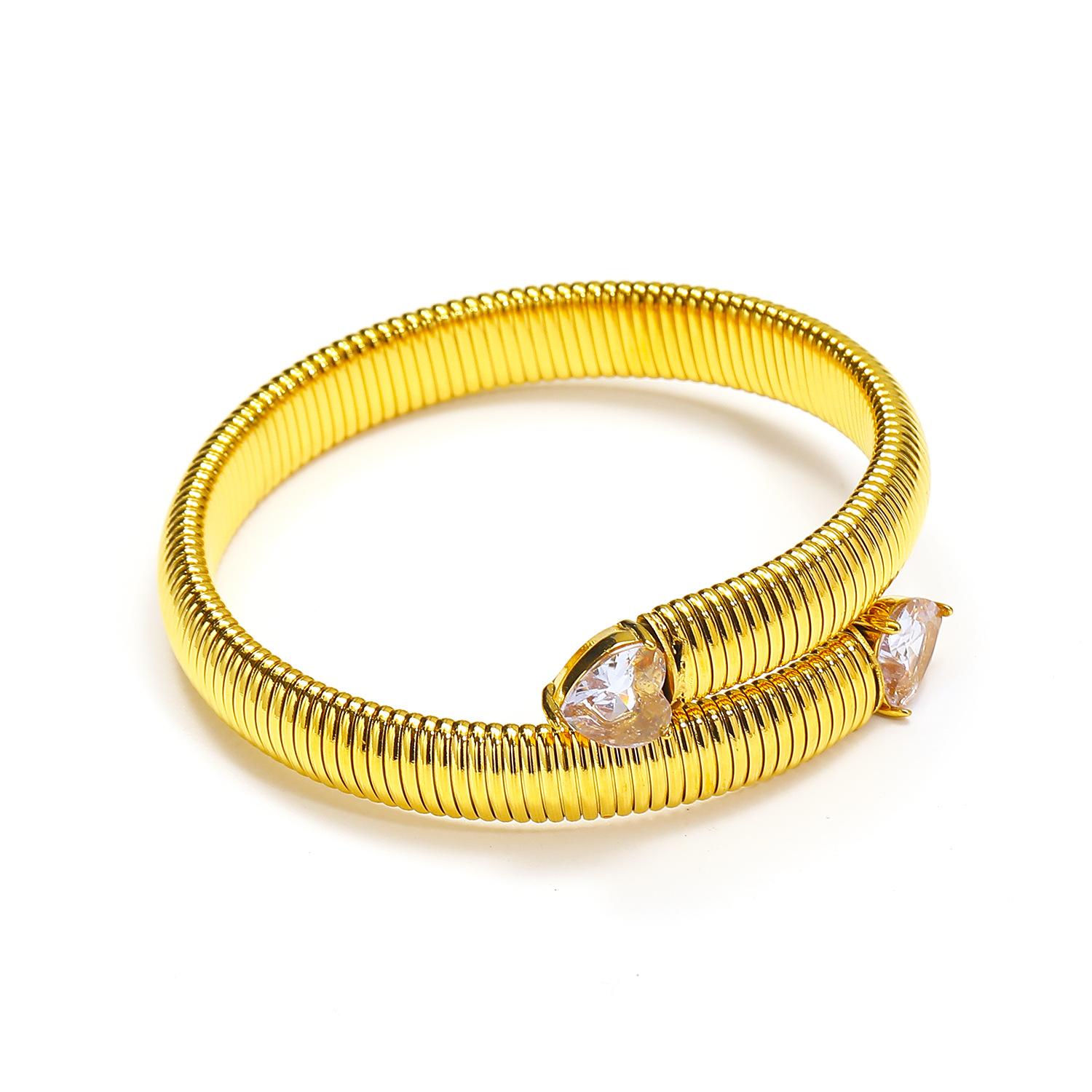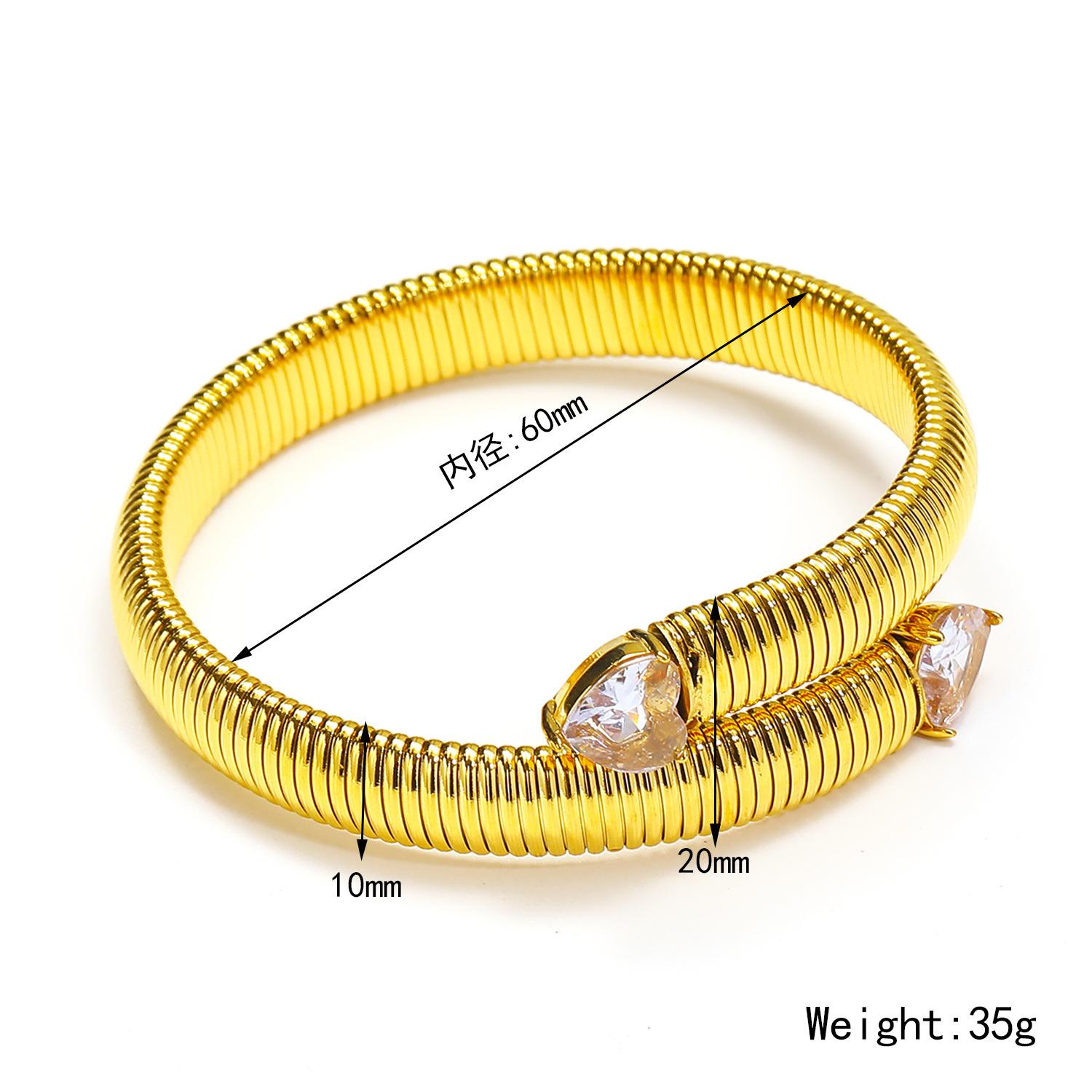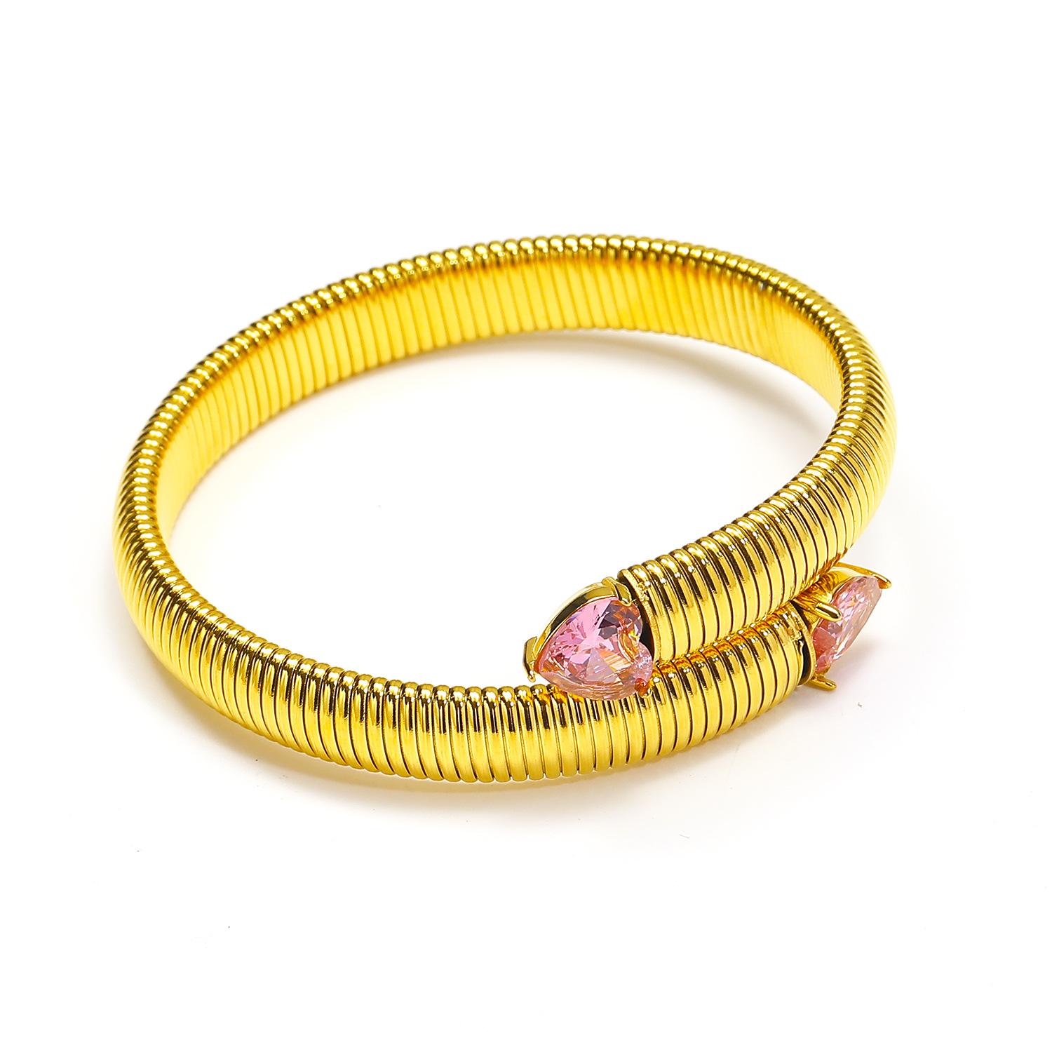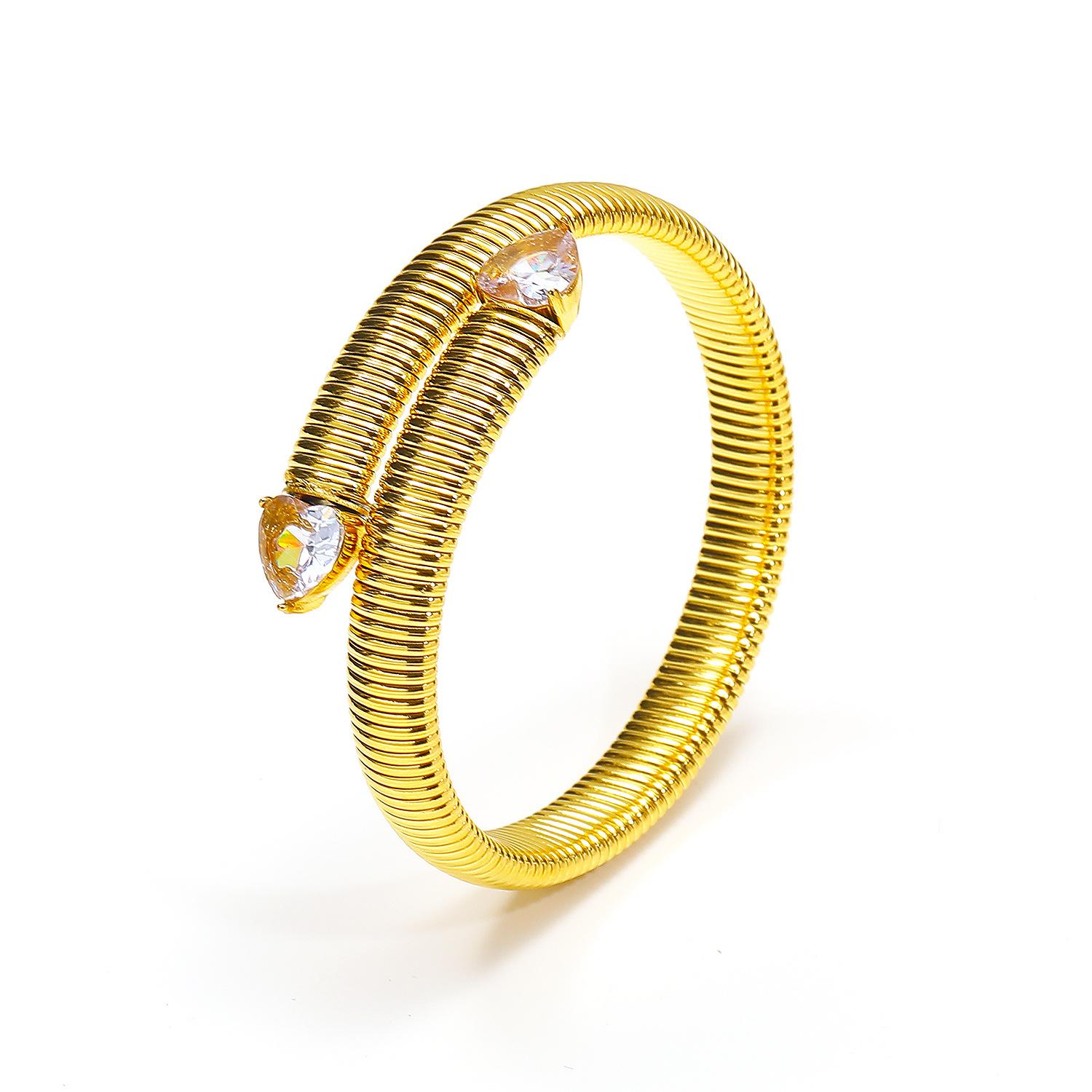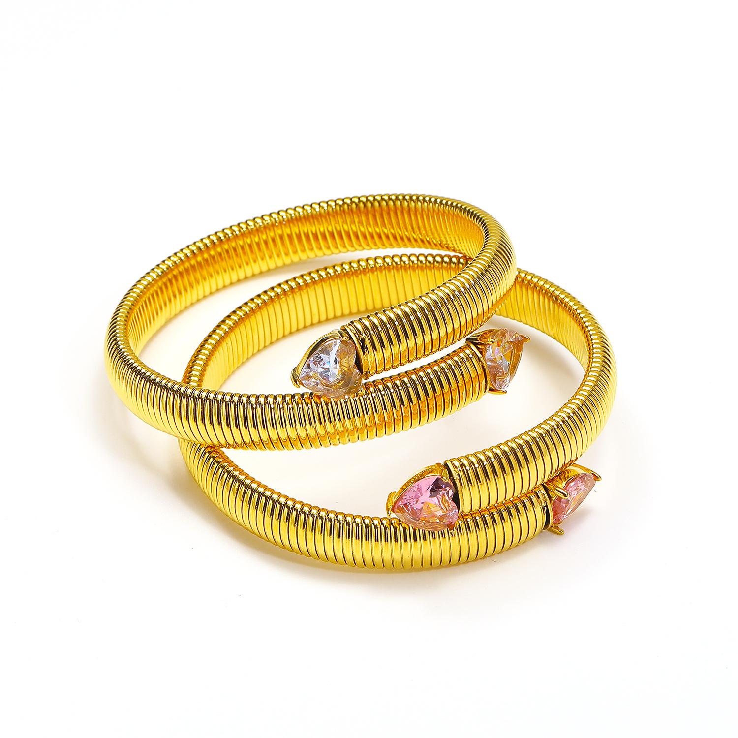 Pulsera Europea y Americana Transfronteriza de Venta Caliente de Lujo Ligero de Doble Cabeza con Circonita en Forma de Corazón y Raya para Mujer Acero Inoxidable Chapado en Oro de 18K Venta al por Mayor