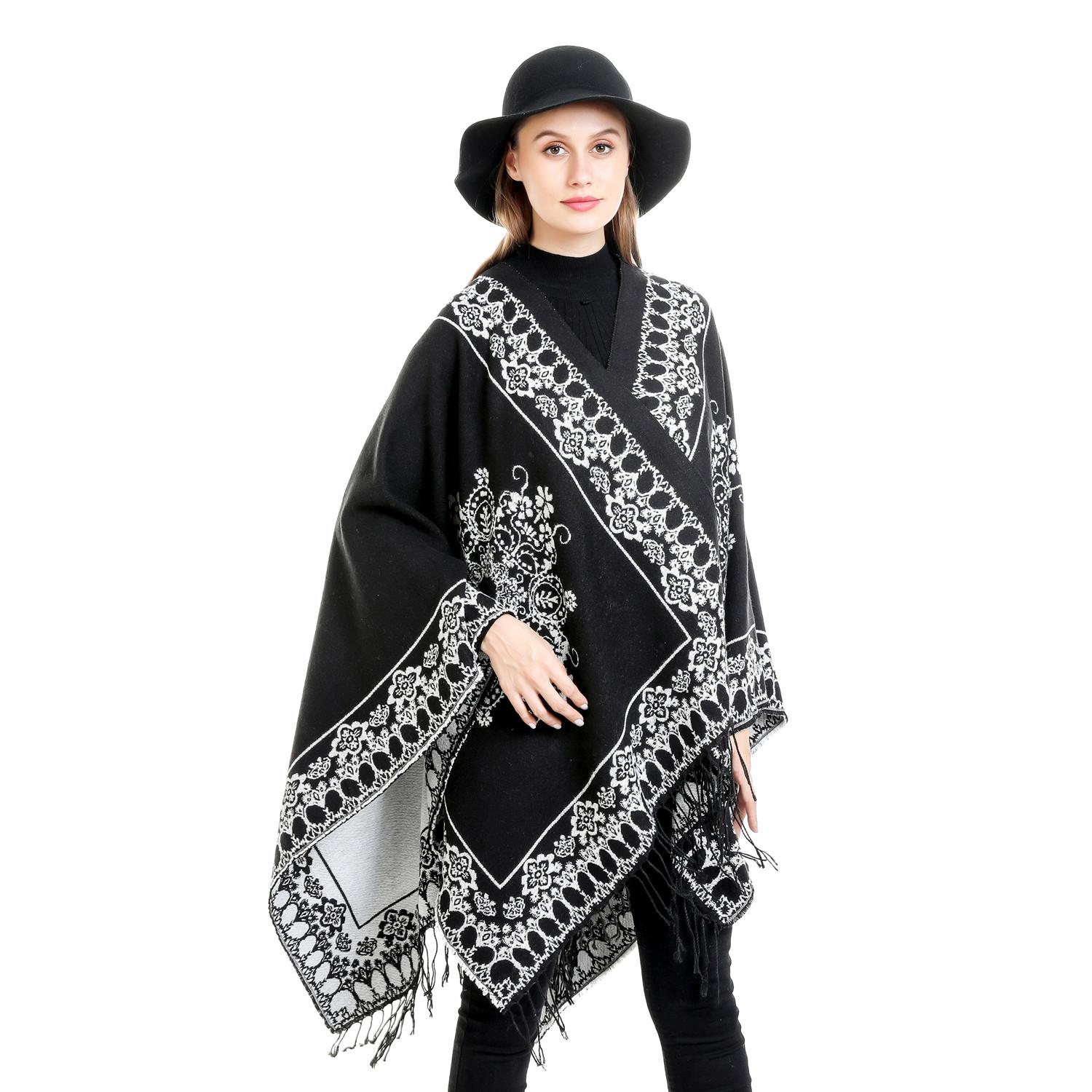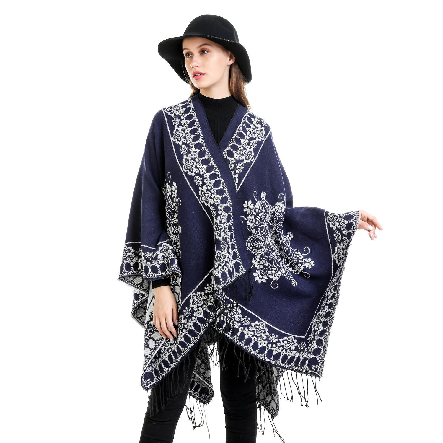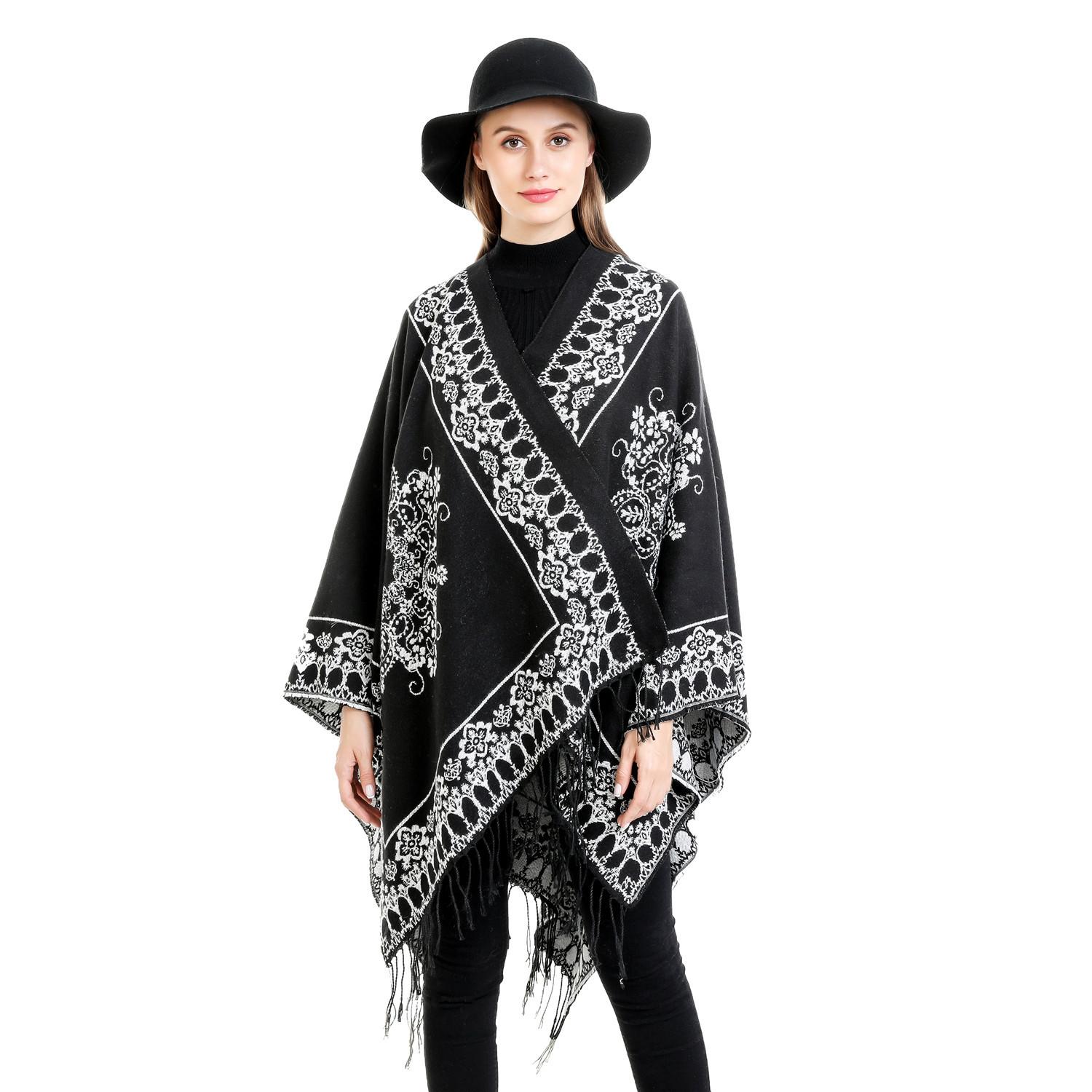 • Nuevo chal dividido cálido de moda de estilo étnico europeo y americano de otoño e invierno, capa de cachemira de imitación, bufanda floral, chal femenino