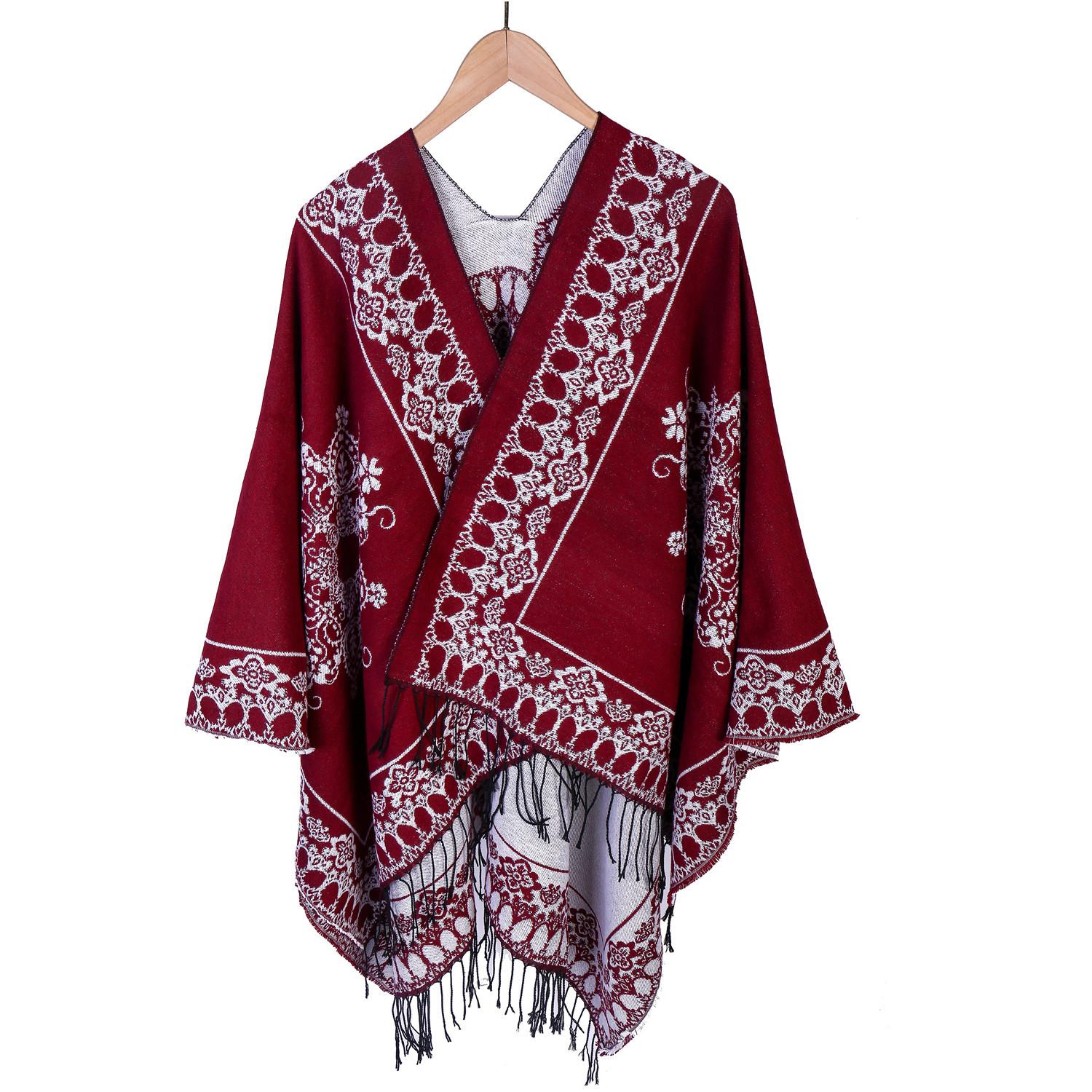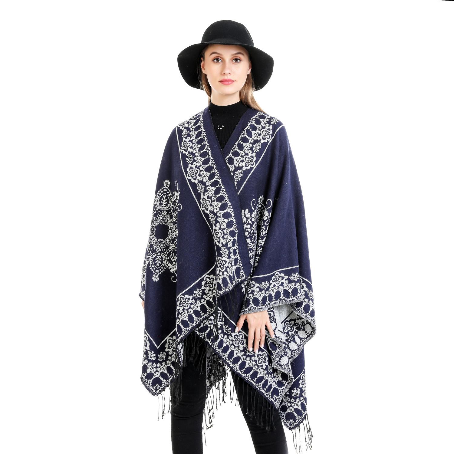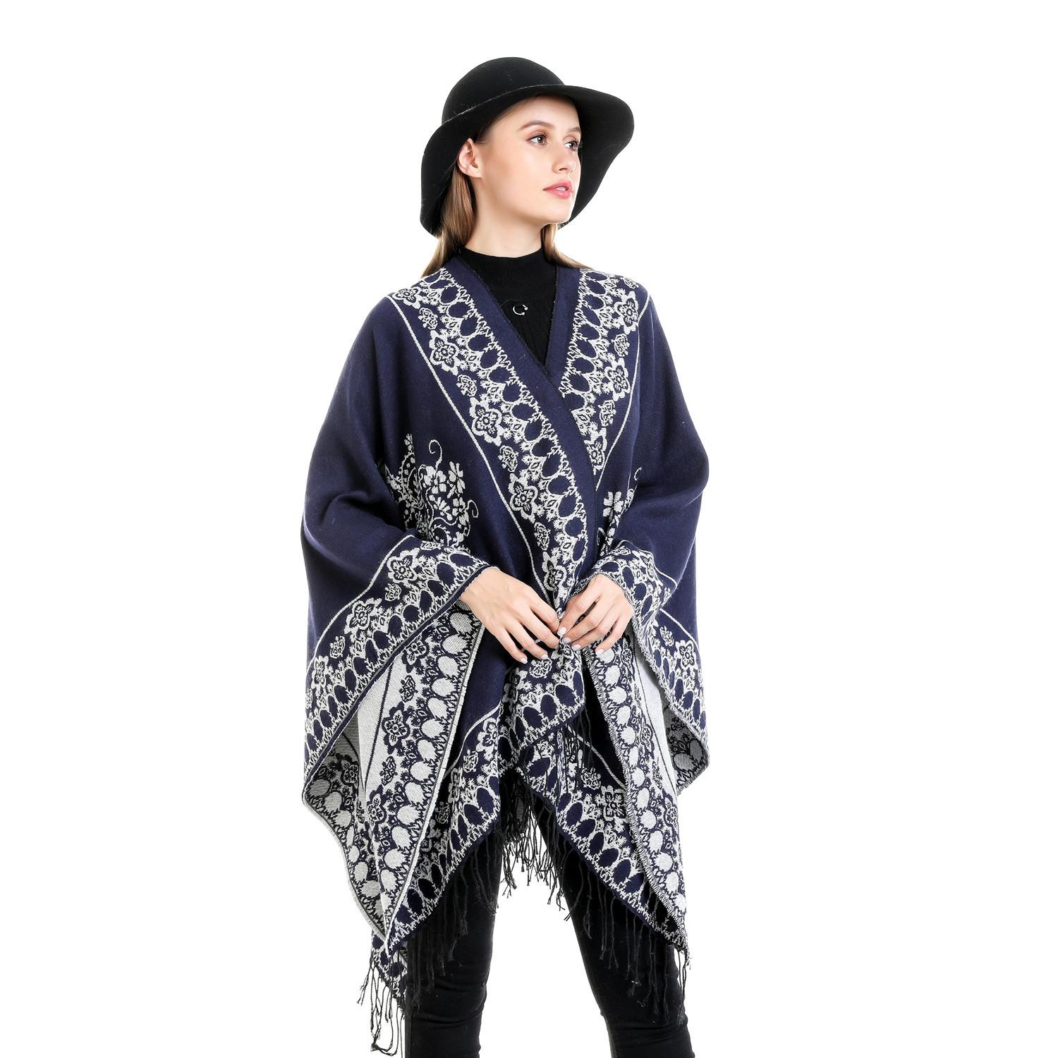 • Nuevo chal dividido cálido de moda de estilo étnico europeo y americano de otoño e invierno, capa de cachemira de imitación, bufanda floral, chal femenino