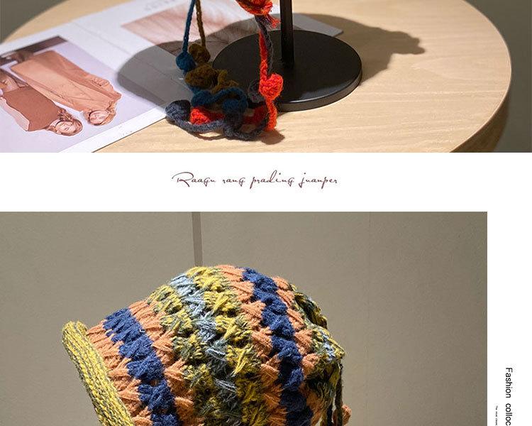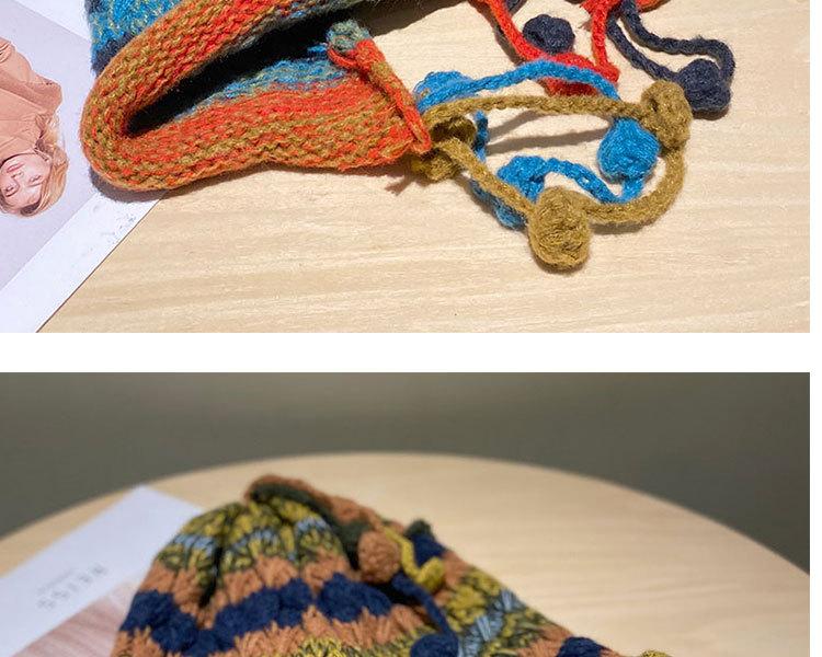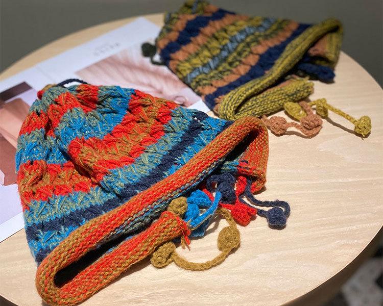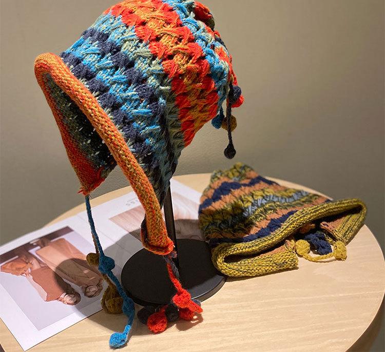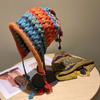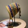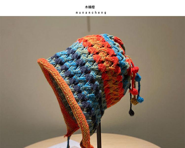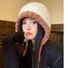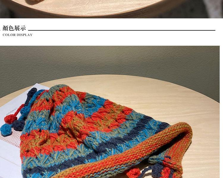Sombrero estilo étnico retro sombrero de lana protección para las orejas sombrero Lei Feng para mujer otoño e invierno color de contraste versátil cálido de punto