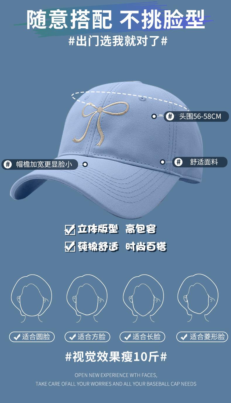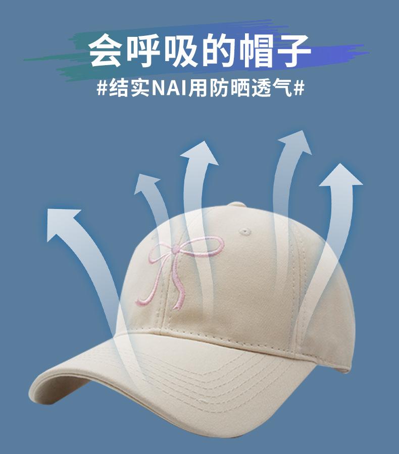 Gorra Estilo Coreano Nueva Llegada Bordada con Lazo para Mujer Verano Parasol Protector Solar Gorra de Béisbol de Copa Suave que Muestra el Rostro Sombrero Pequeño Moderno