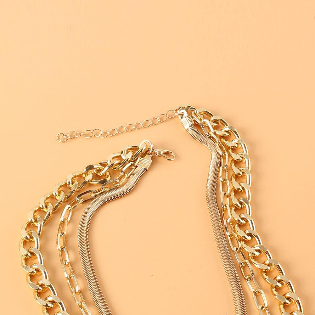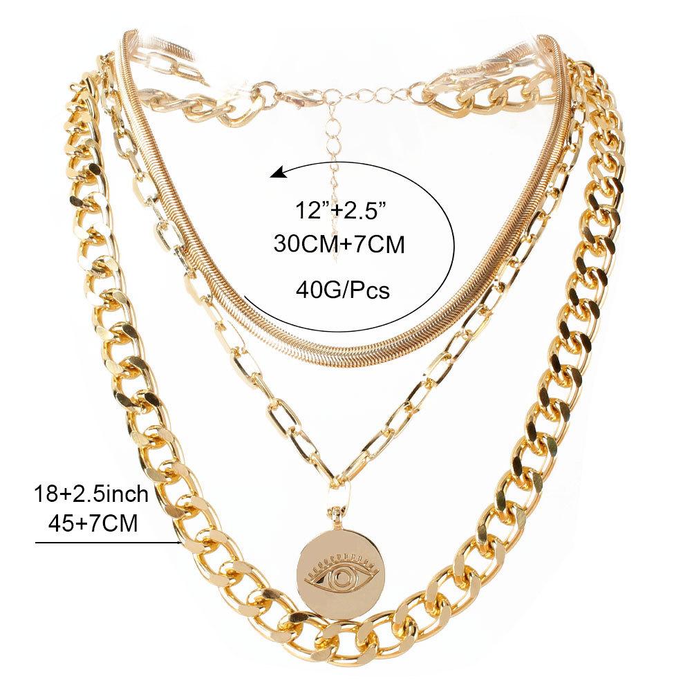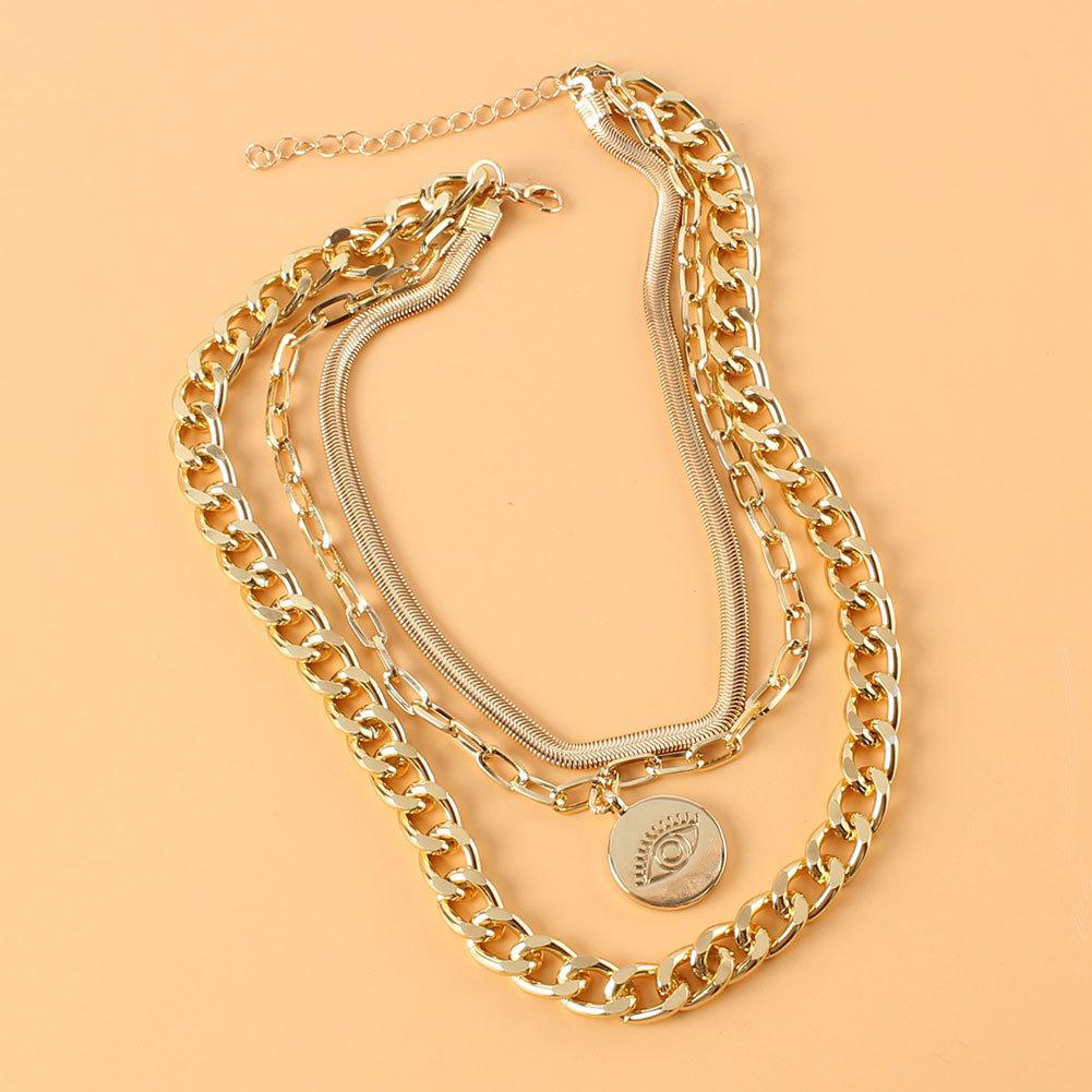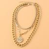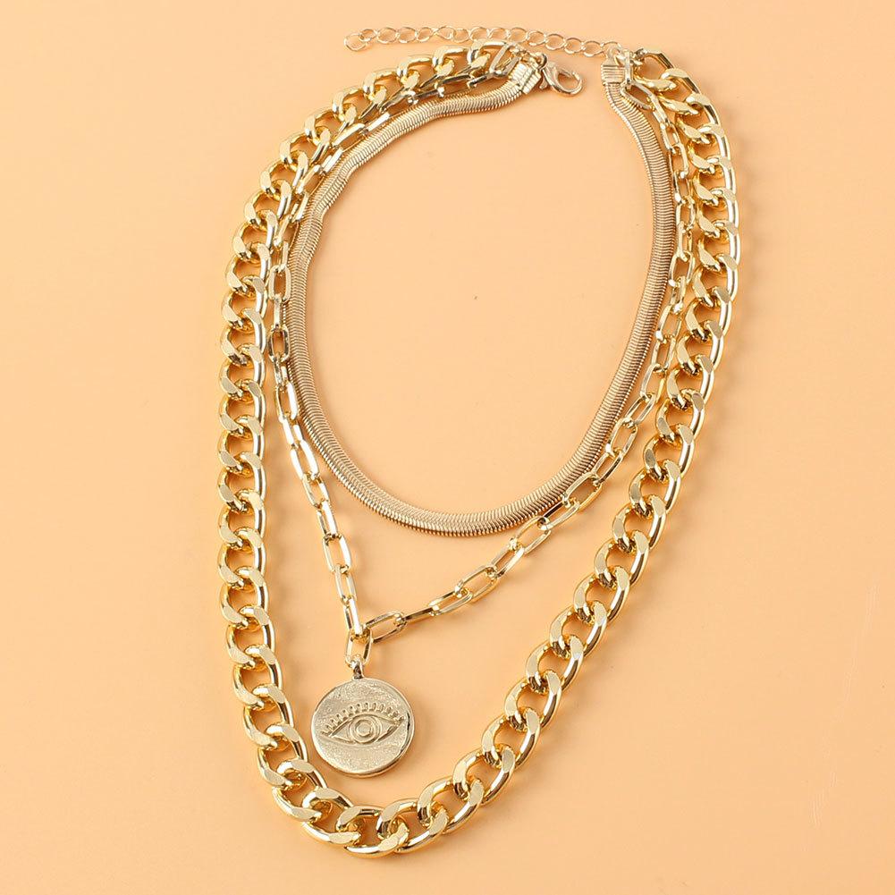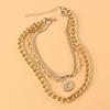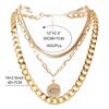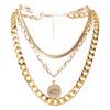 Collar transfronterizo europeo y americano con cadena de hueso de serpiente dorado, aleación, moneda redonda, collar multicapa, joyería femenina 17520