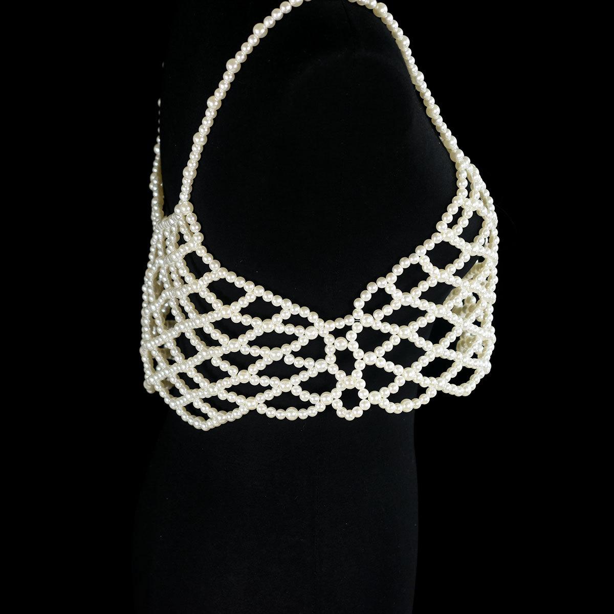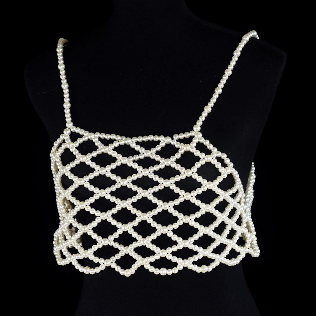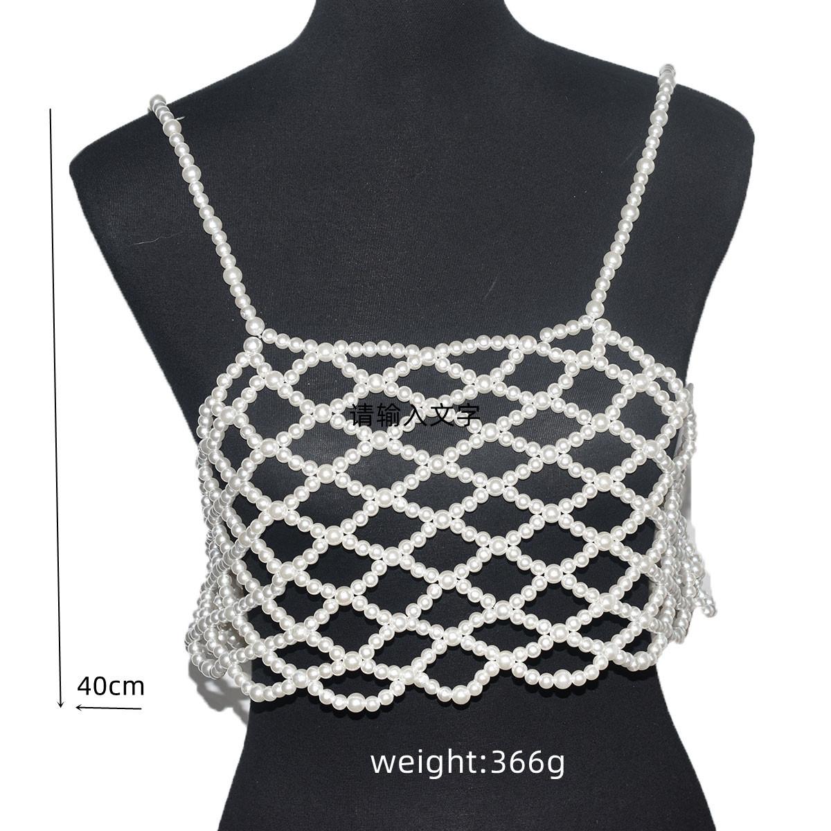 Cadena para el cuerpo tejida a mano hueca perla camisola accesorios de ropa de actuación sujetador Cadena para el cuerpo transfronteriza