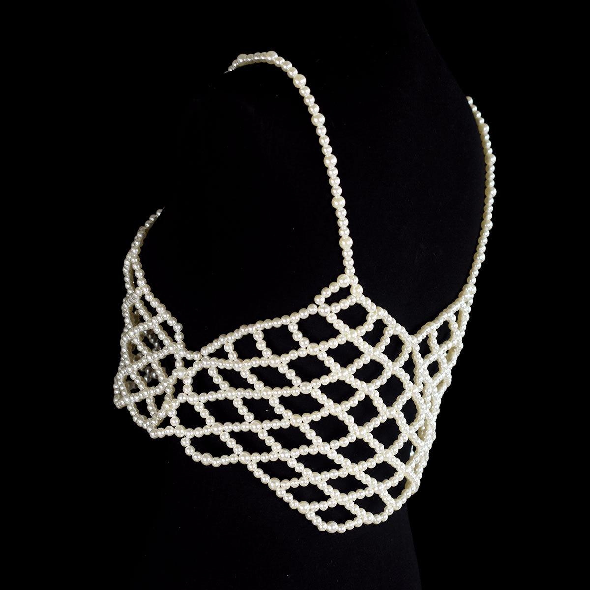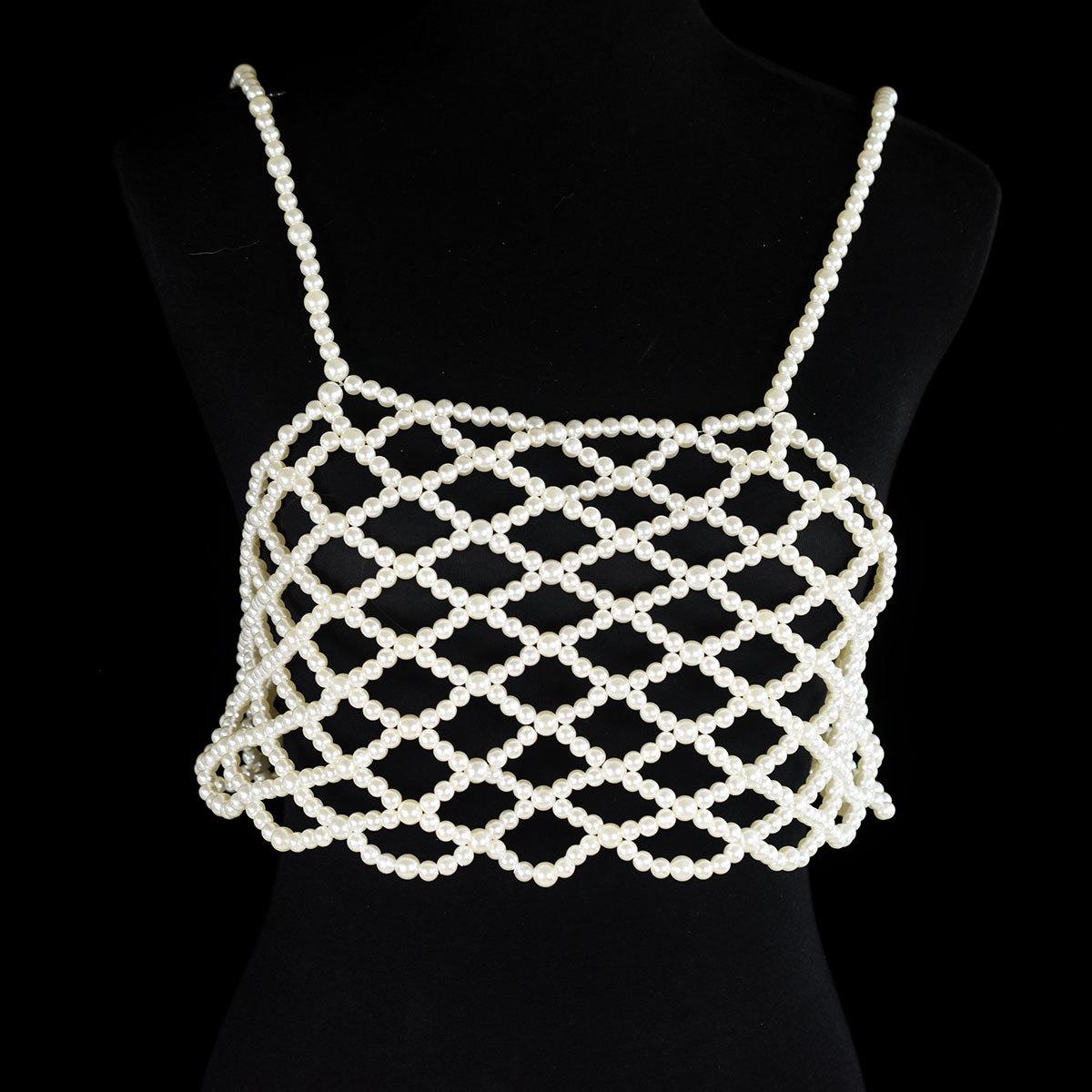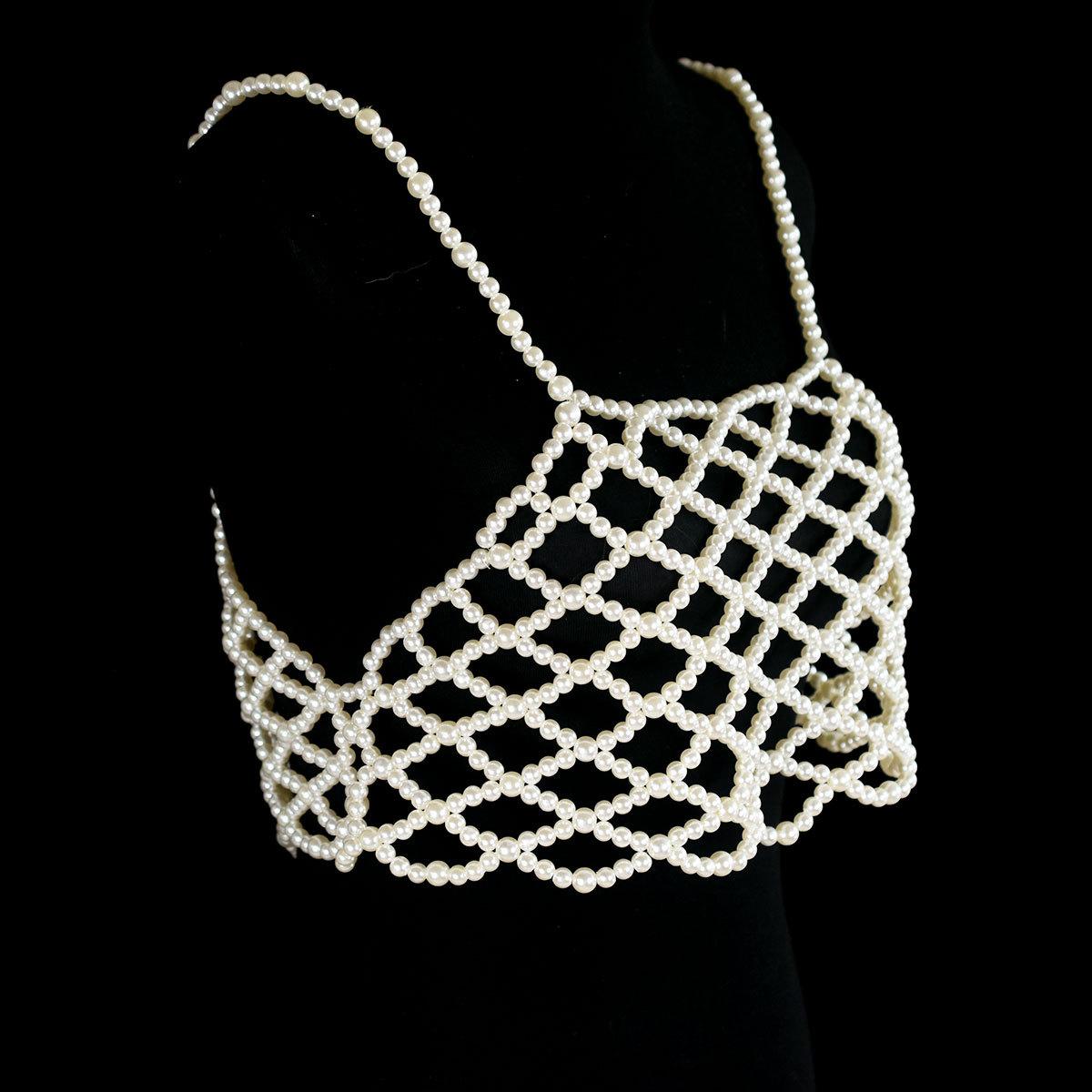Cadena para el cuerpo tejida a mano hueca perla camisola accesorios de ropa de actuación sujetador Cadena para el cuerpo transfronteriza