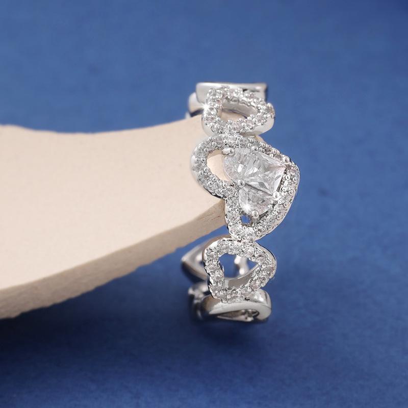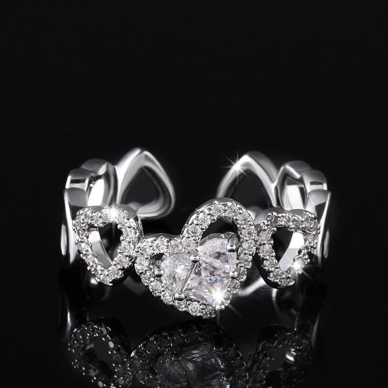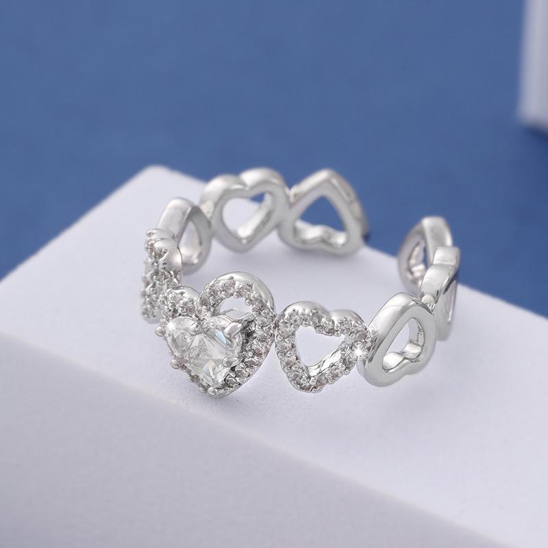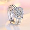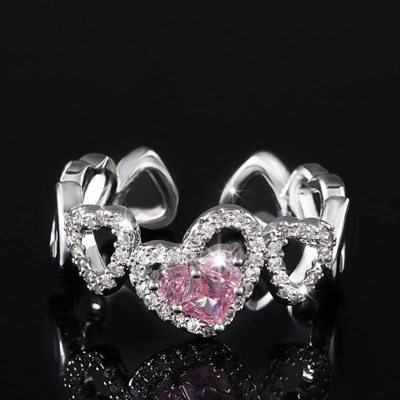 Estilo japonés y coreano temperamento dulce fresco textura corazón de durazno anillo abierto femenino micro-incrustado diamante completo Súper brillante para todo amor anillo