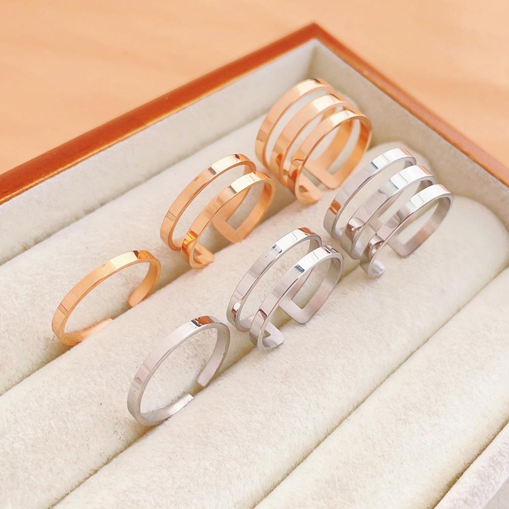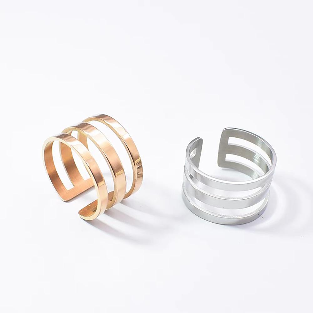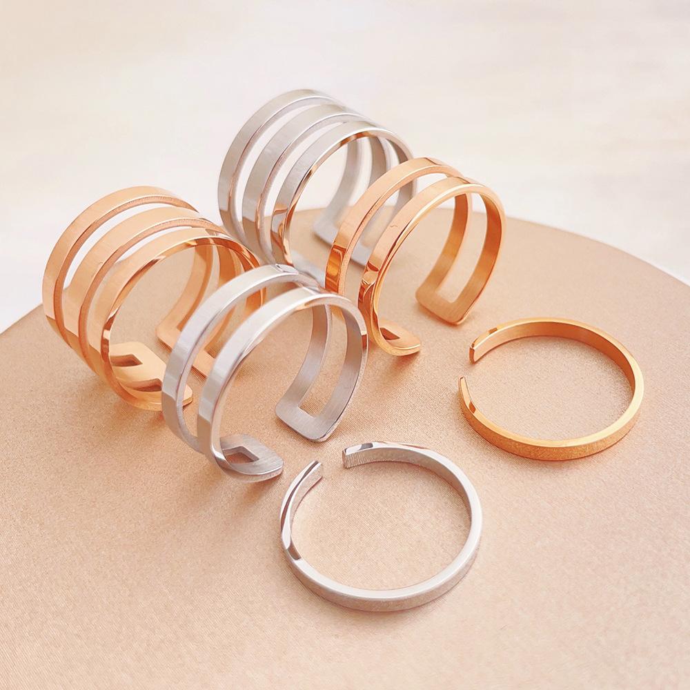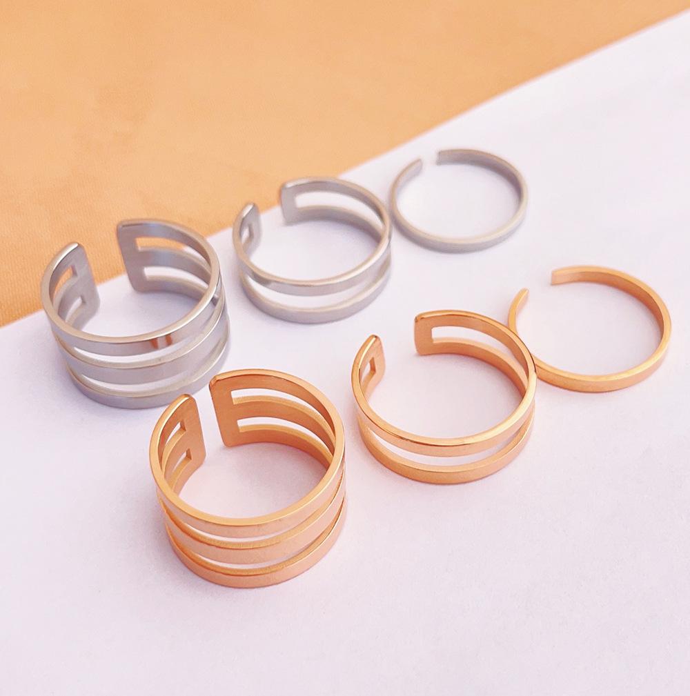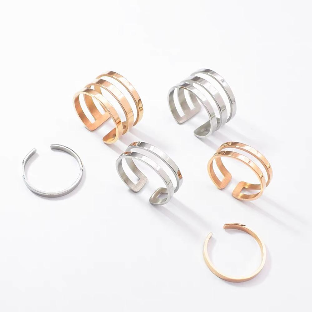 Three-layer opening ring rose gold J158, Three-layer opening ring steel color J158, Double-layer opening ring ...