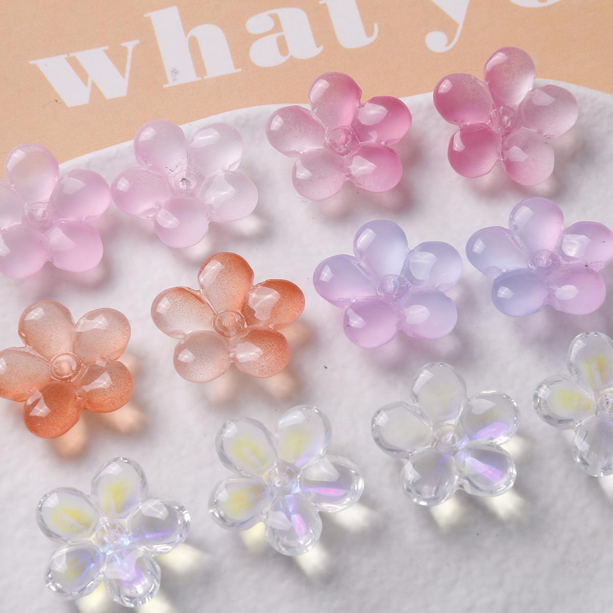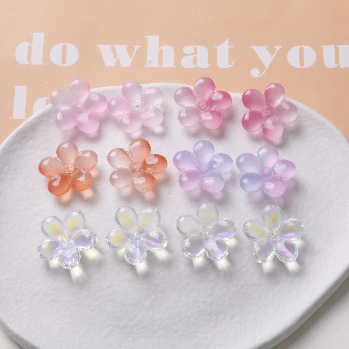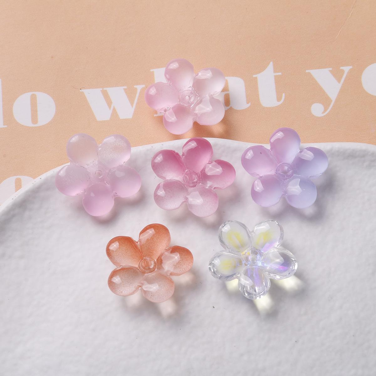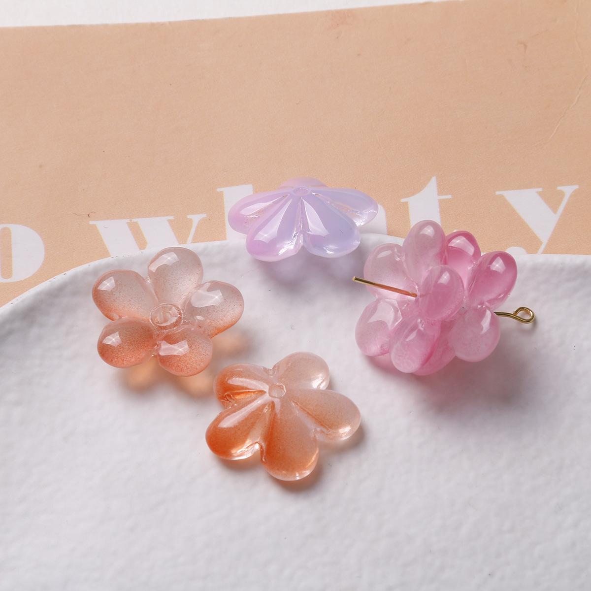 Pendientes de material de accesorios de flor de cinco pétalos de vidrio de color degradado AB fresco, perforado, tejido a mano con cuentas, soporte para flores