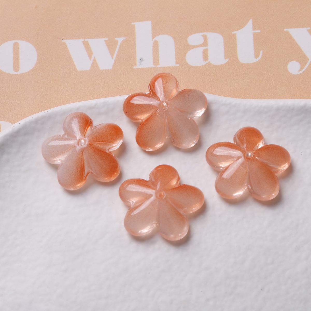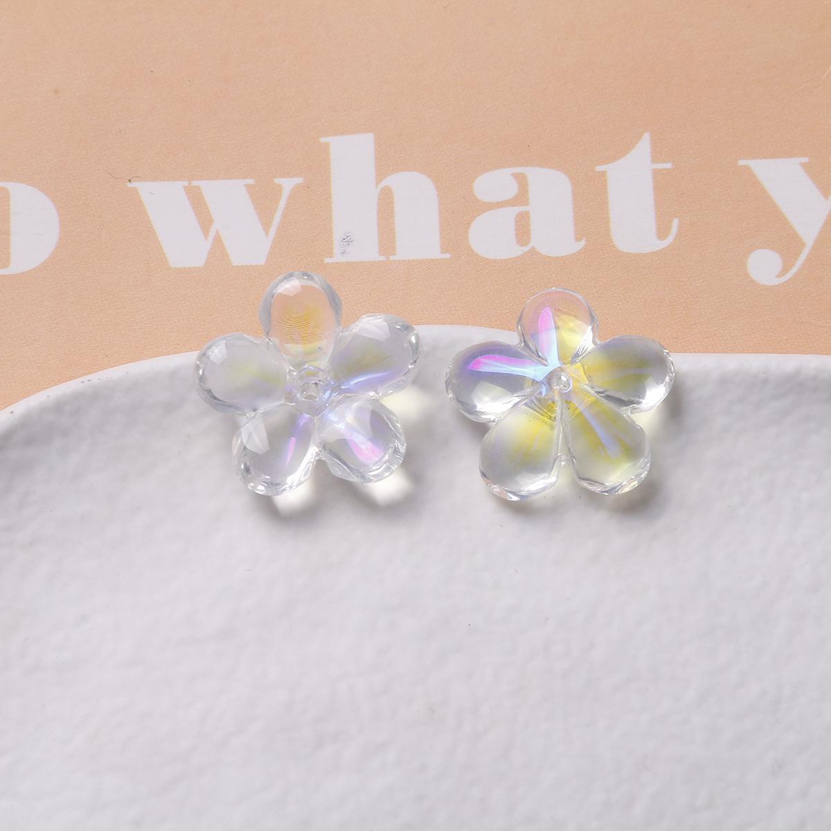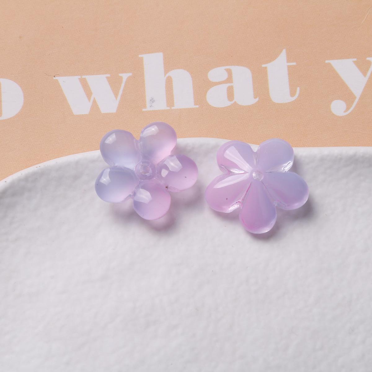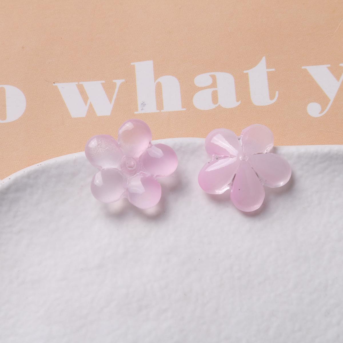 Pendientes de material de accesorios de flor de cinco pétalos de vidrio de color degradado AB fresco, perforado, tejido a mano con cuentas, soporte para flores