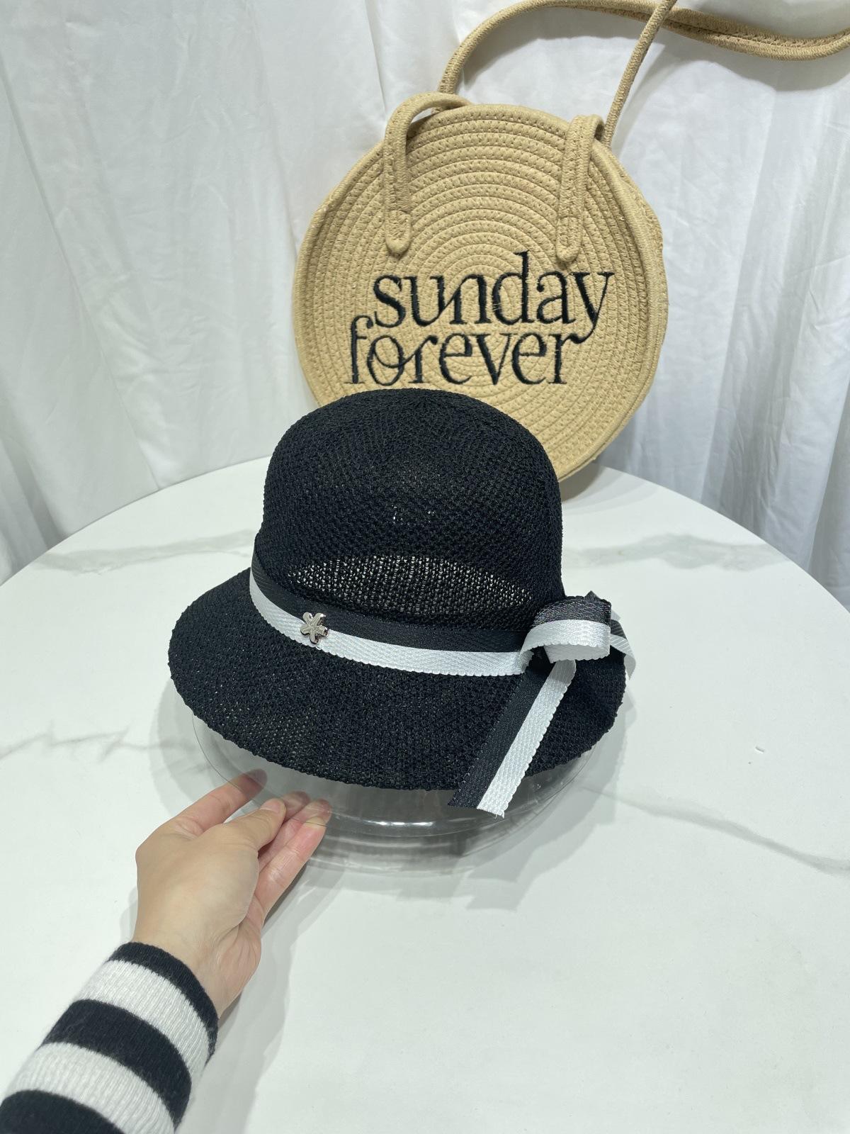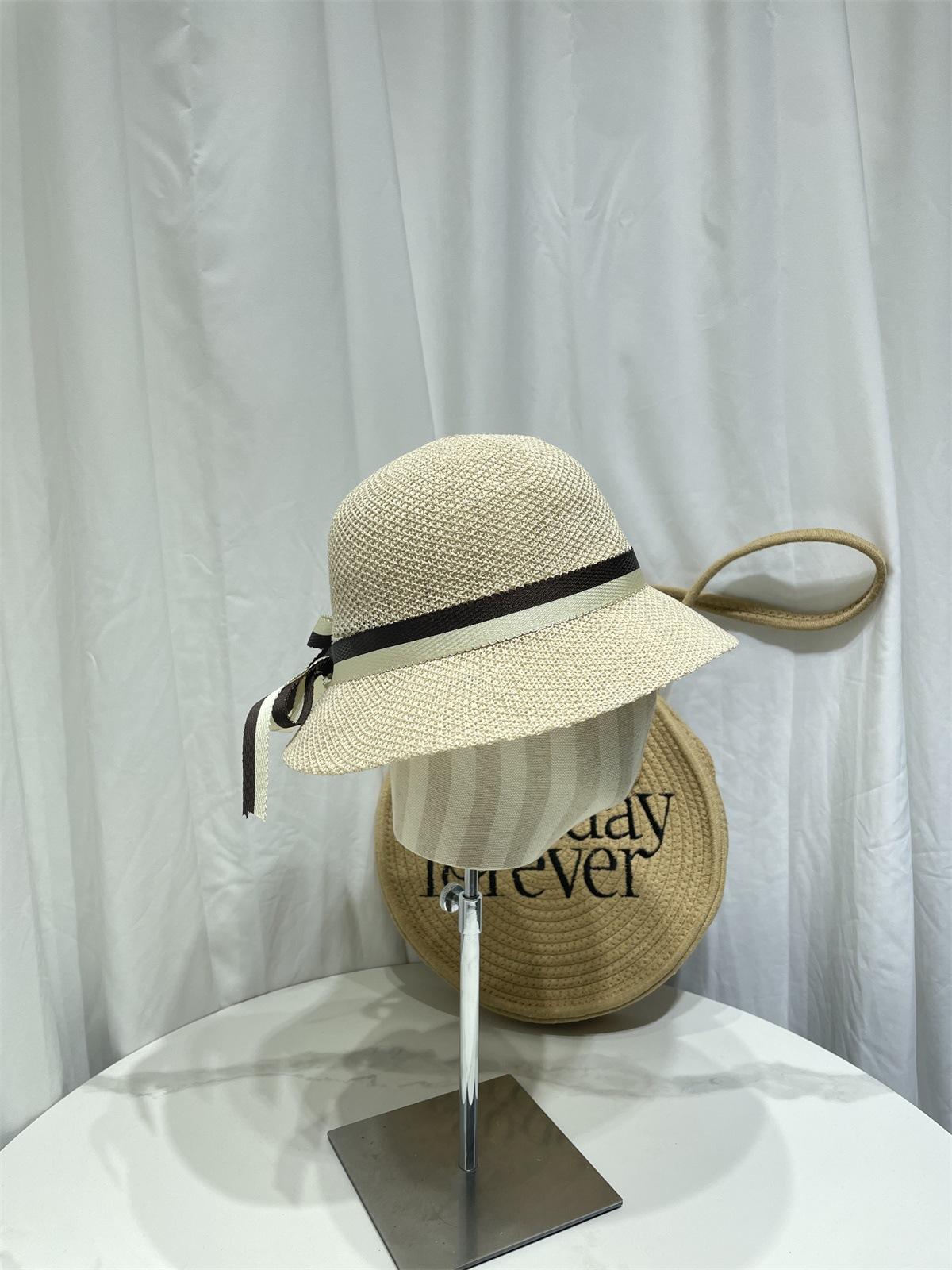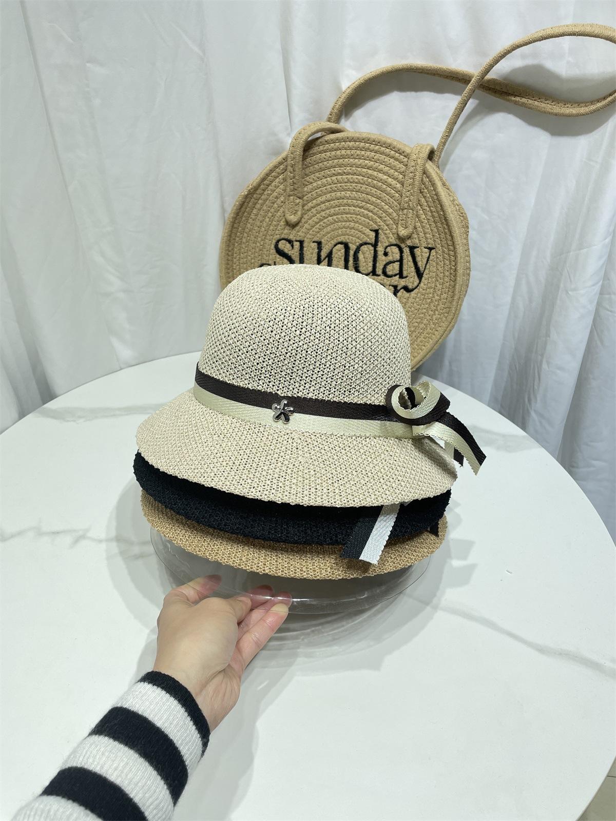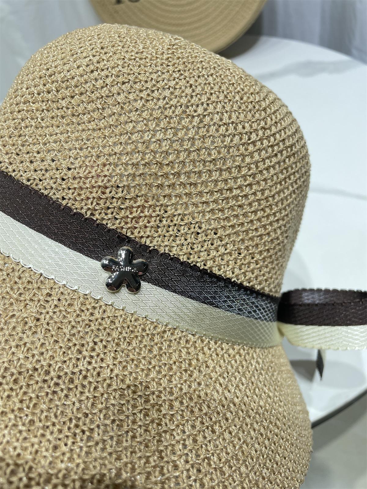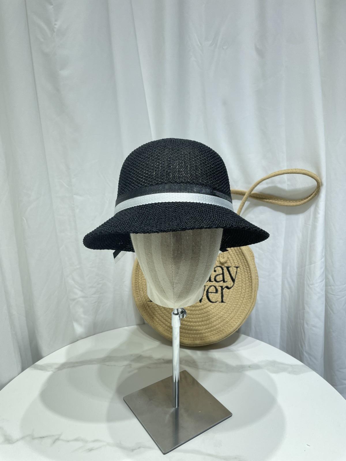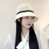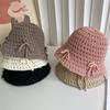 Moda Coreana Combinación de Colores Lazo Sombrero de Pescador para Mujer Primavera y Verano Casual Combinable Sombrero de Cubo de Punto Viaje Sombrero Parasol Moda