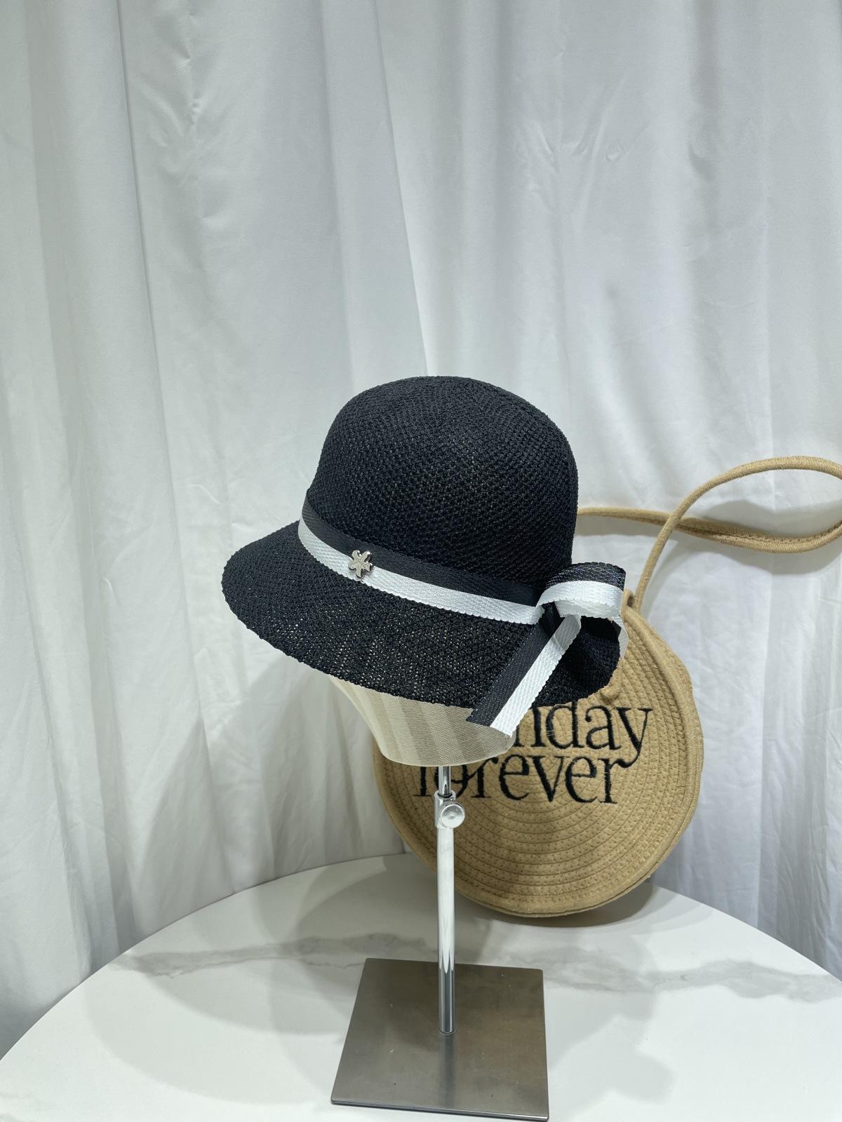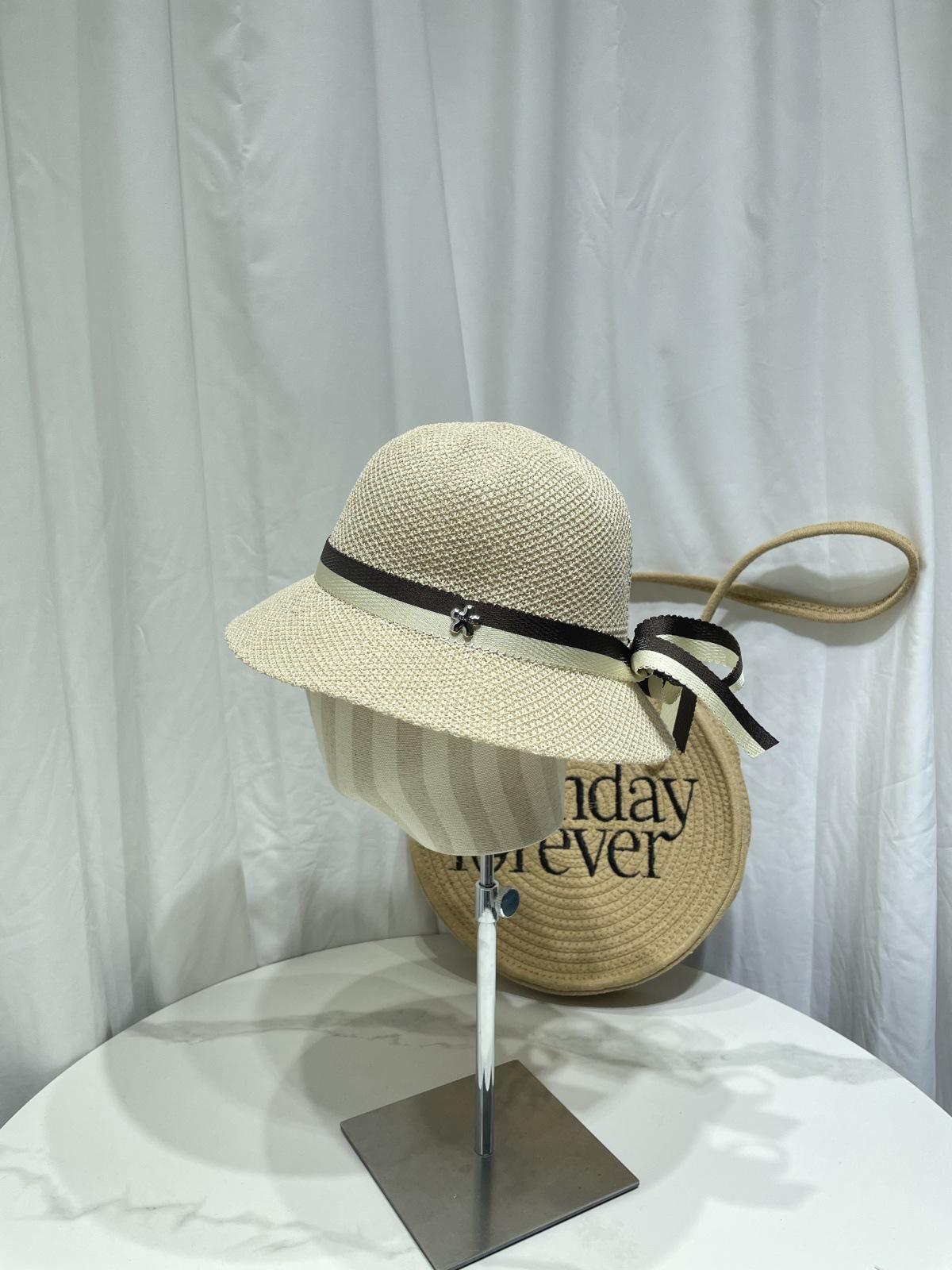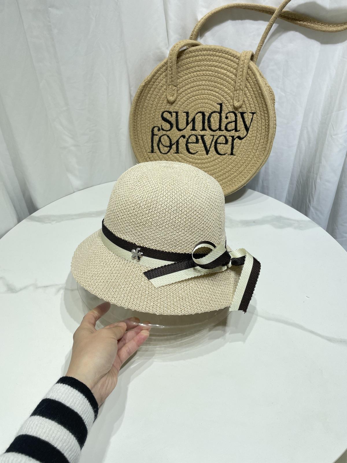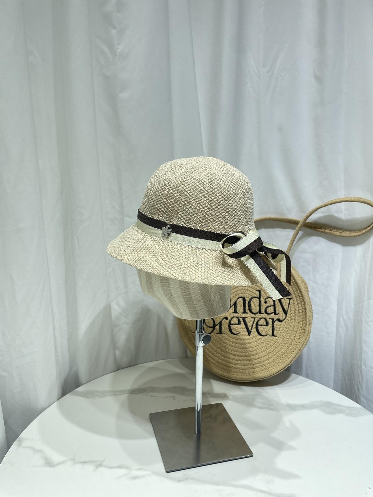 Moda Coreana Combinación de Colores Lazo Sombrero de Pescador para Mujer Primavera y Verano Casual Combinable Sombrero de Cubo de Punto Viaje Sombrero Parasol Moda