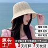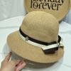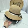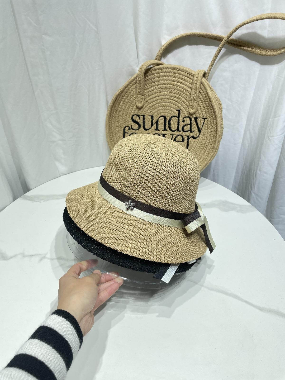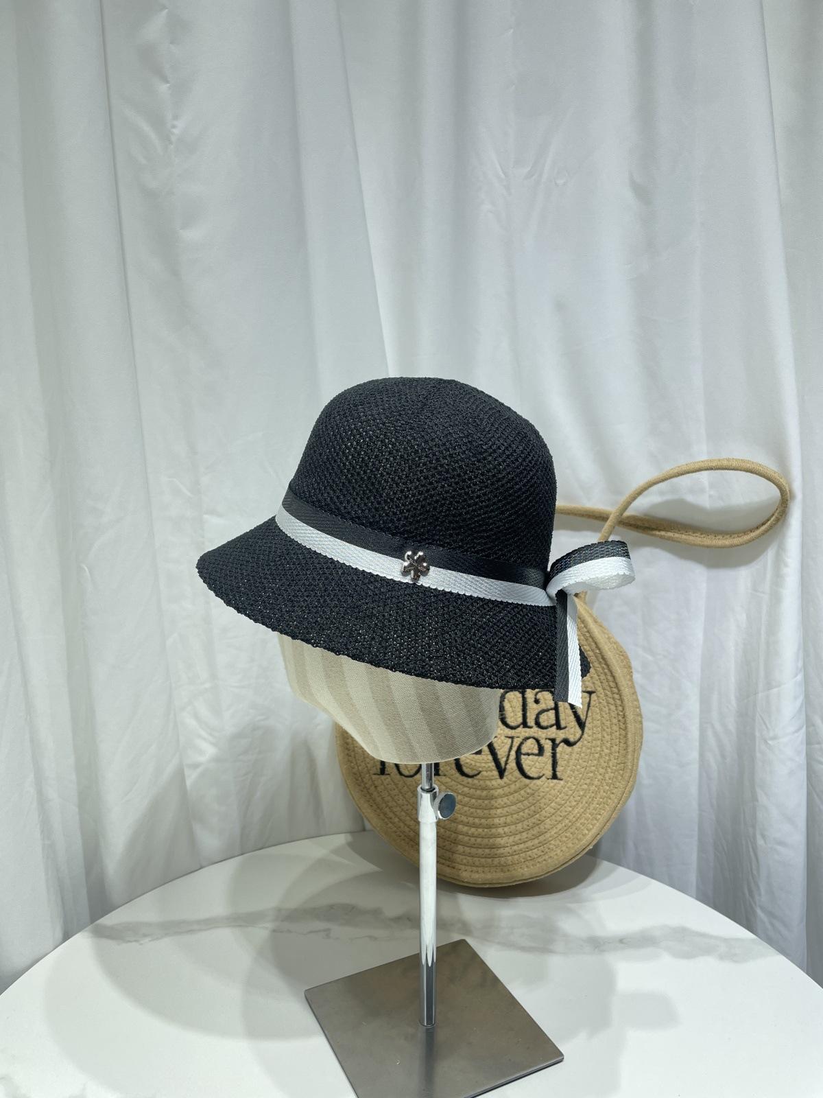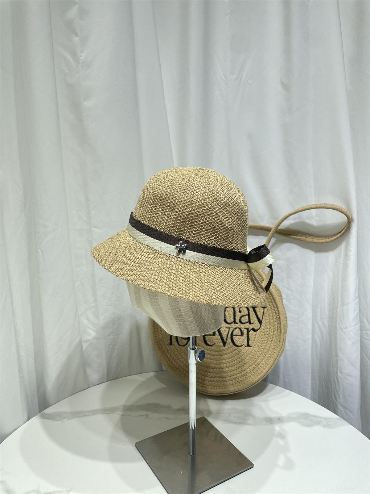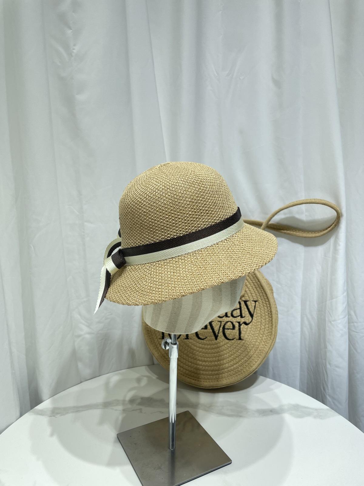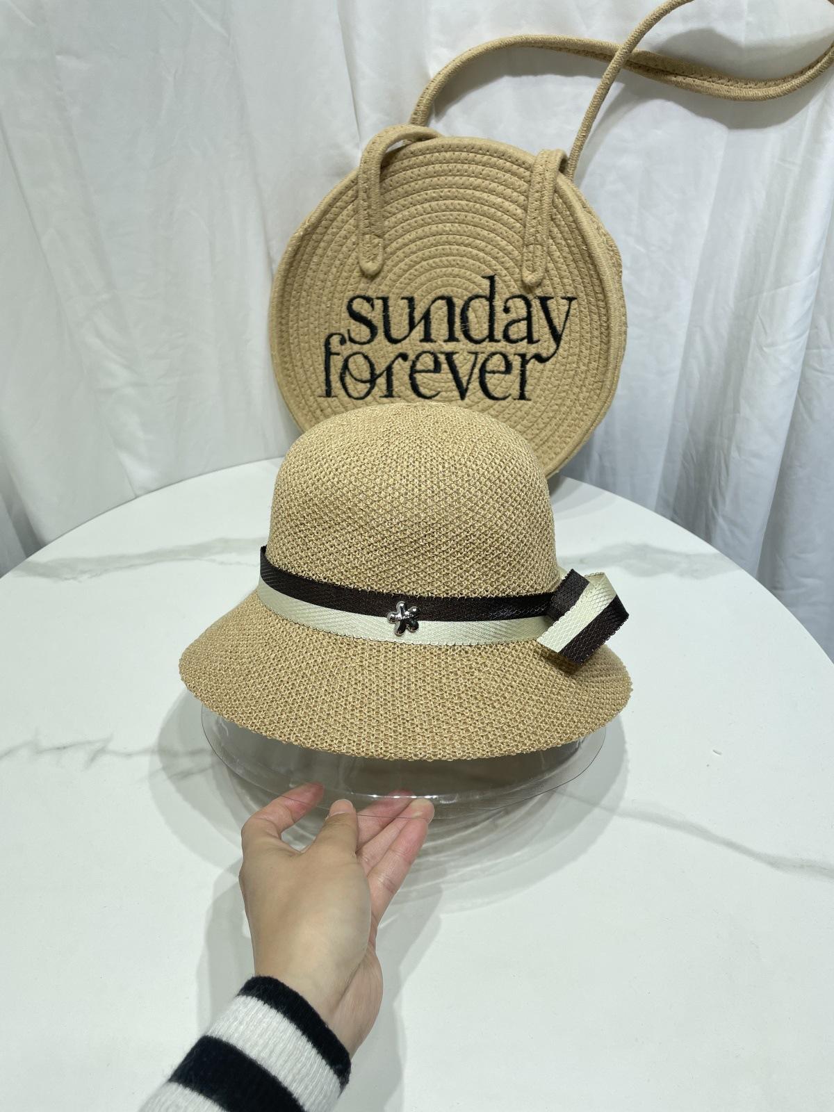 Moda Coreana Combinación de Colores Lazo Sombrero de Pescador para Mujer Primavera y Verano Casual Combinable Sombrero de Cubo de Punto Viaje Sombrero Parasol Moda