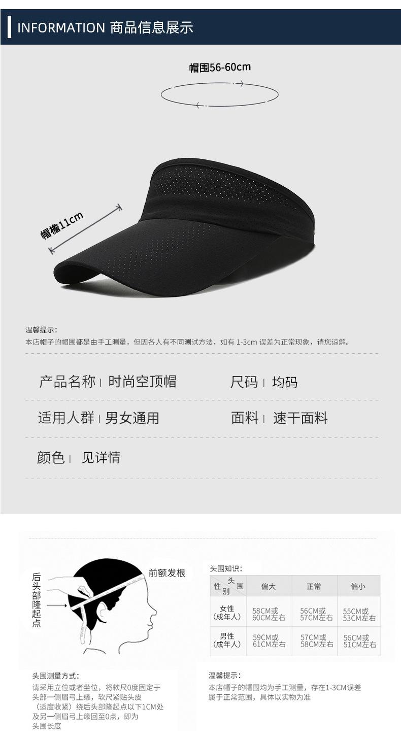 Sombrero de copa vacío, transpirable, de verano, con protección solar, para hombre y mujer, gorra sin espacio, gorra deportiva, de secado rápido, para correr.