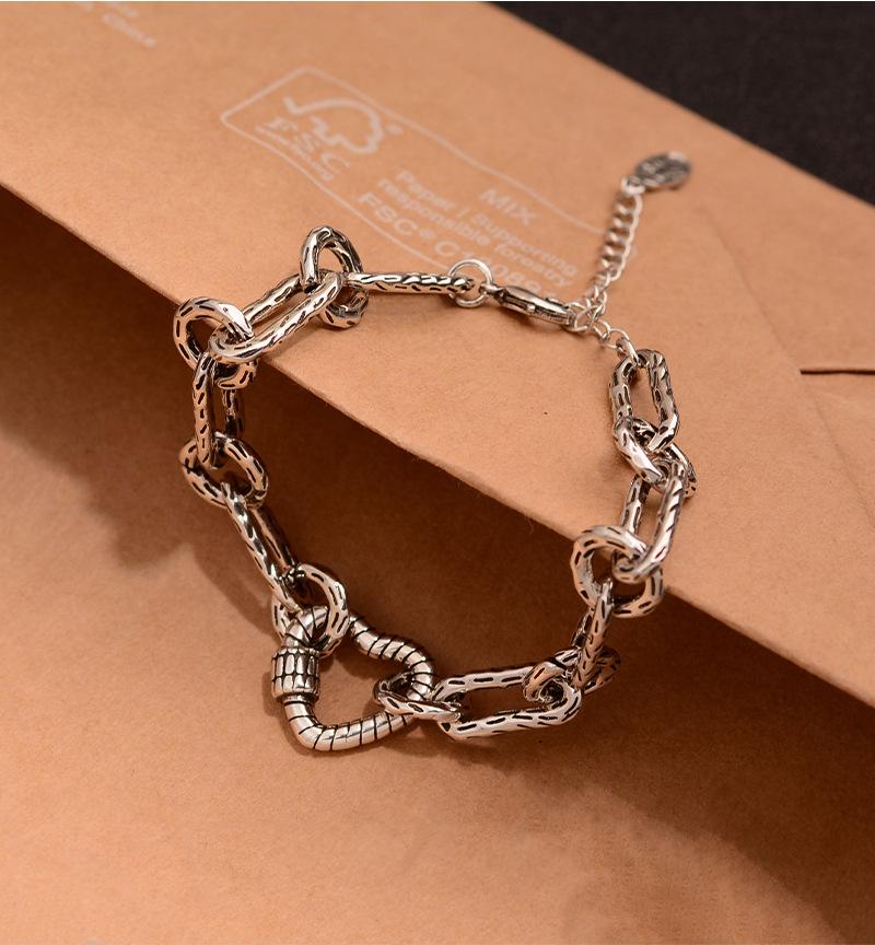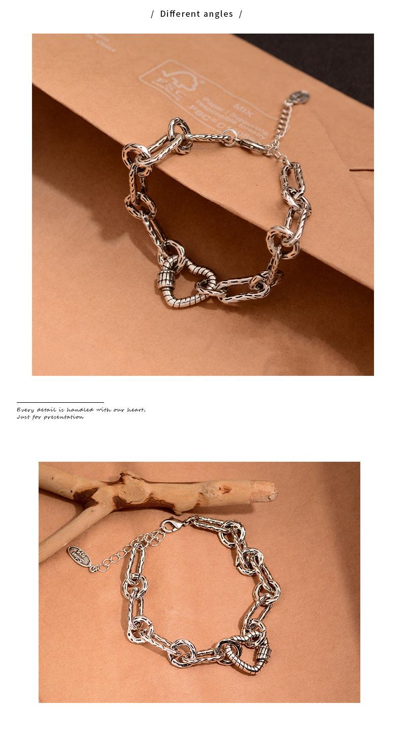 Pulsera encantadora de cadena gruesa con giro de estilo coreano nicho para mujer Estilo retro frío temperamento de alta gama pulsera en forma de corazón al por mayor